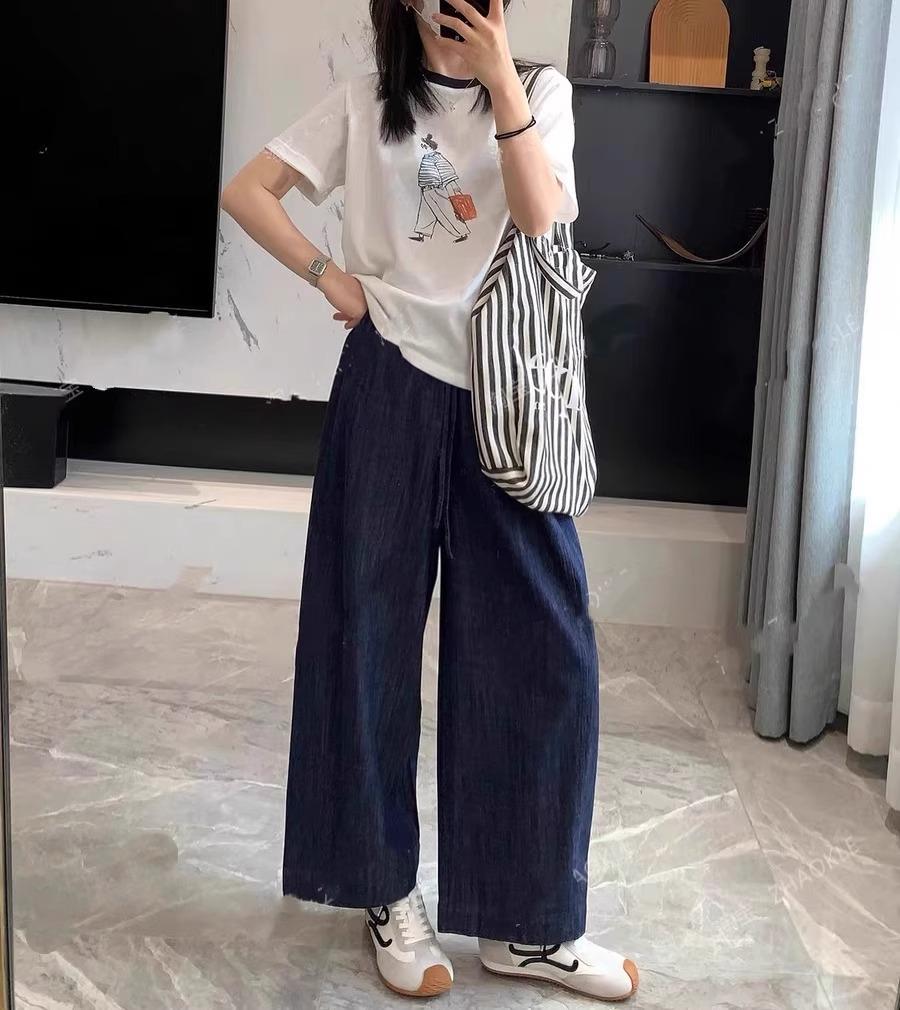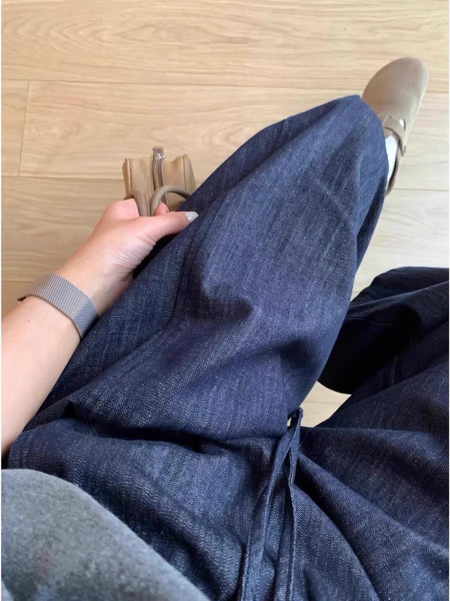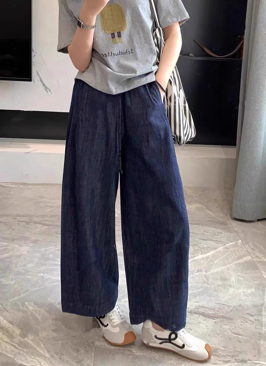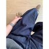 Jeans Retro Azul Oscuro Talla Grande Mujer Verano Delgados Gordos MM Sueltos Cintura Alta Adelgazantes Pierna Recta Pierna Ancha Pantalones Recortados
