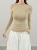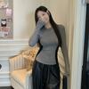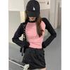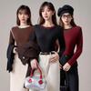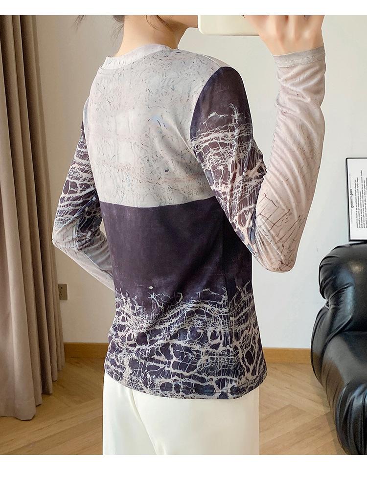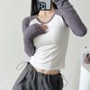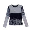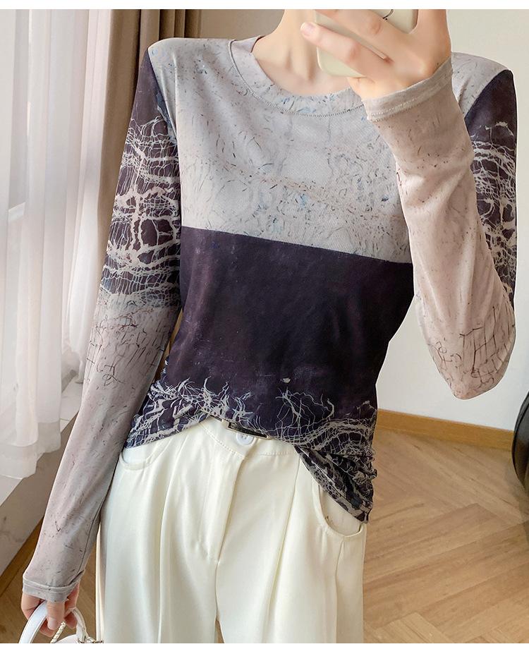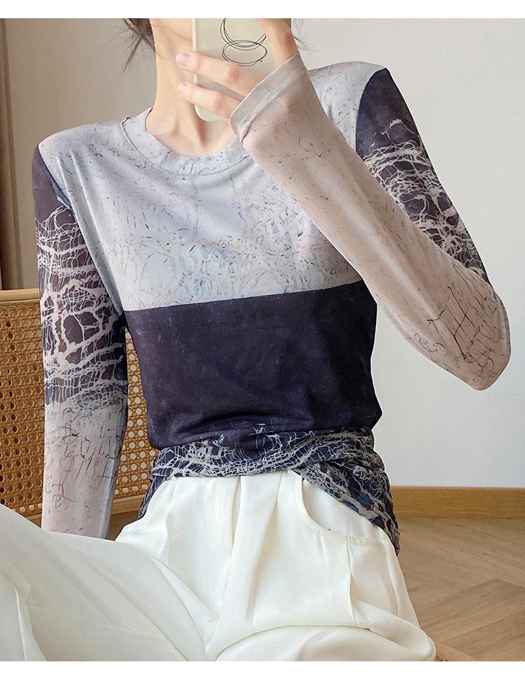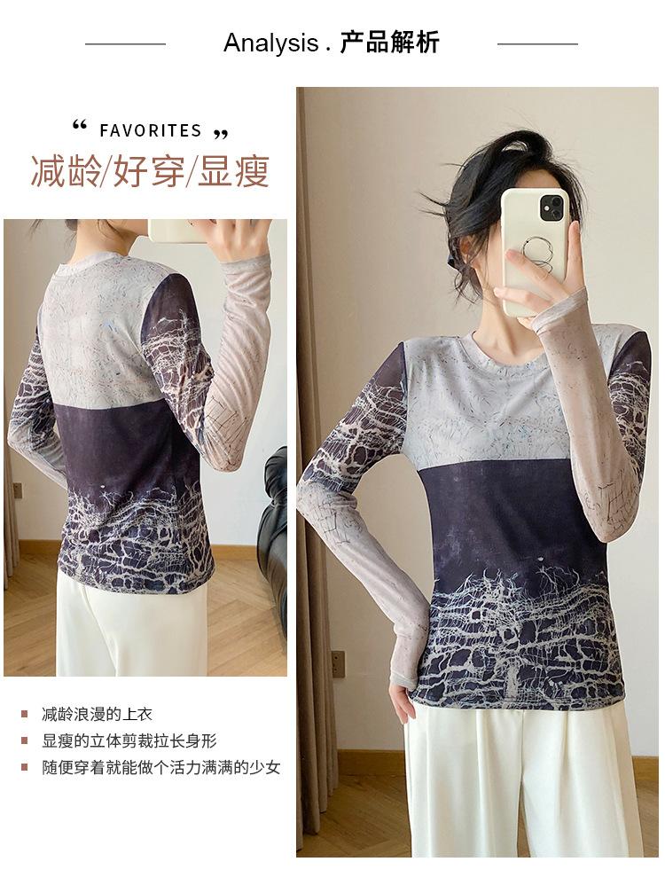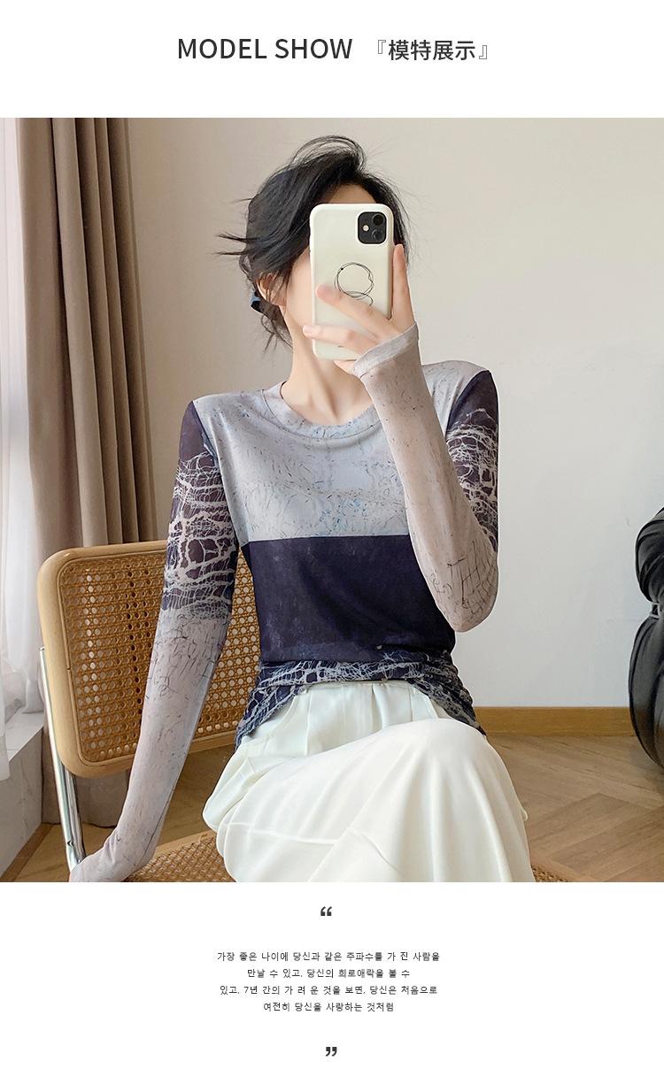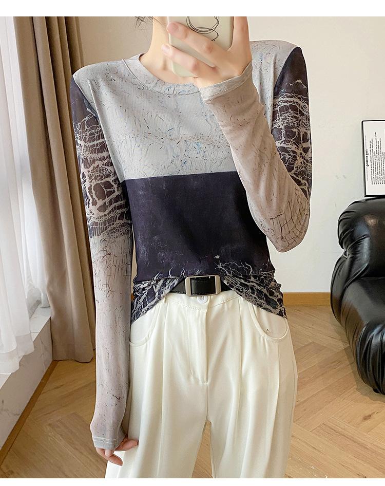 Camiseta Base de Bloques de Color a la Moda para Mujer Manga Larga Otoño Nueva Llegada Estilo Europeo Cuello Redondo Manga Larga Camiseta Ajustada Capa Interior Top de Malla