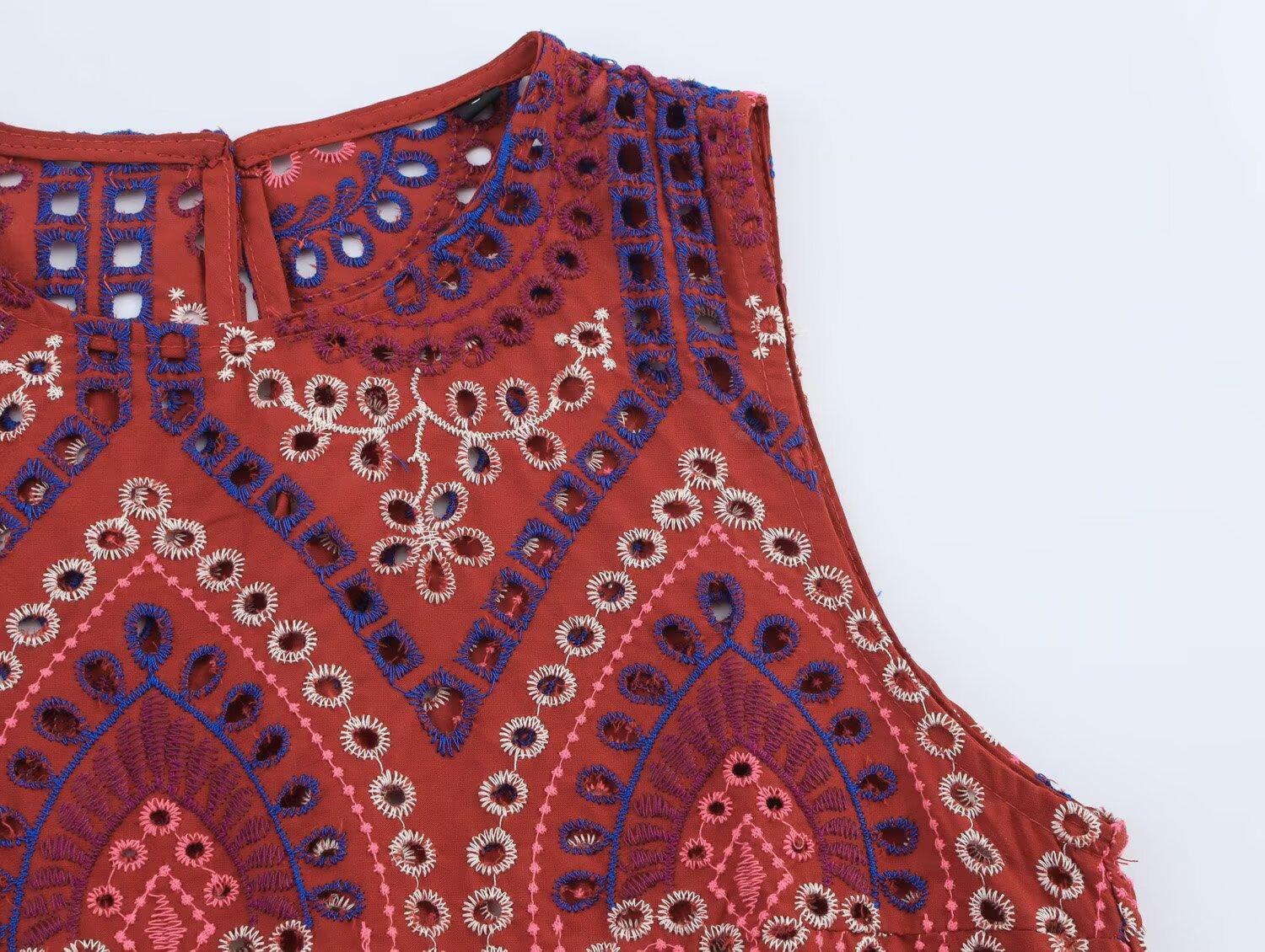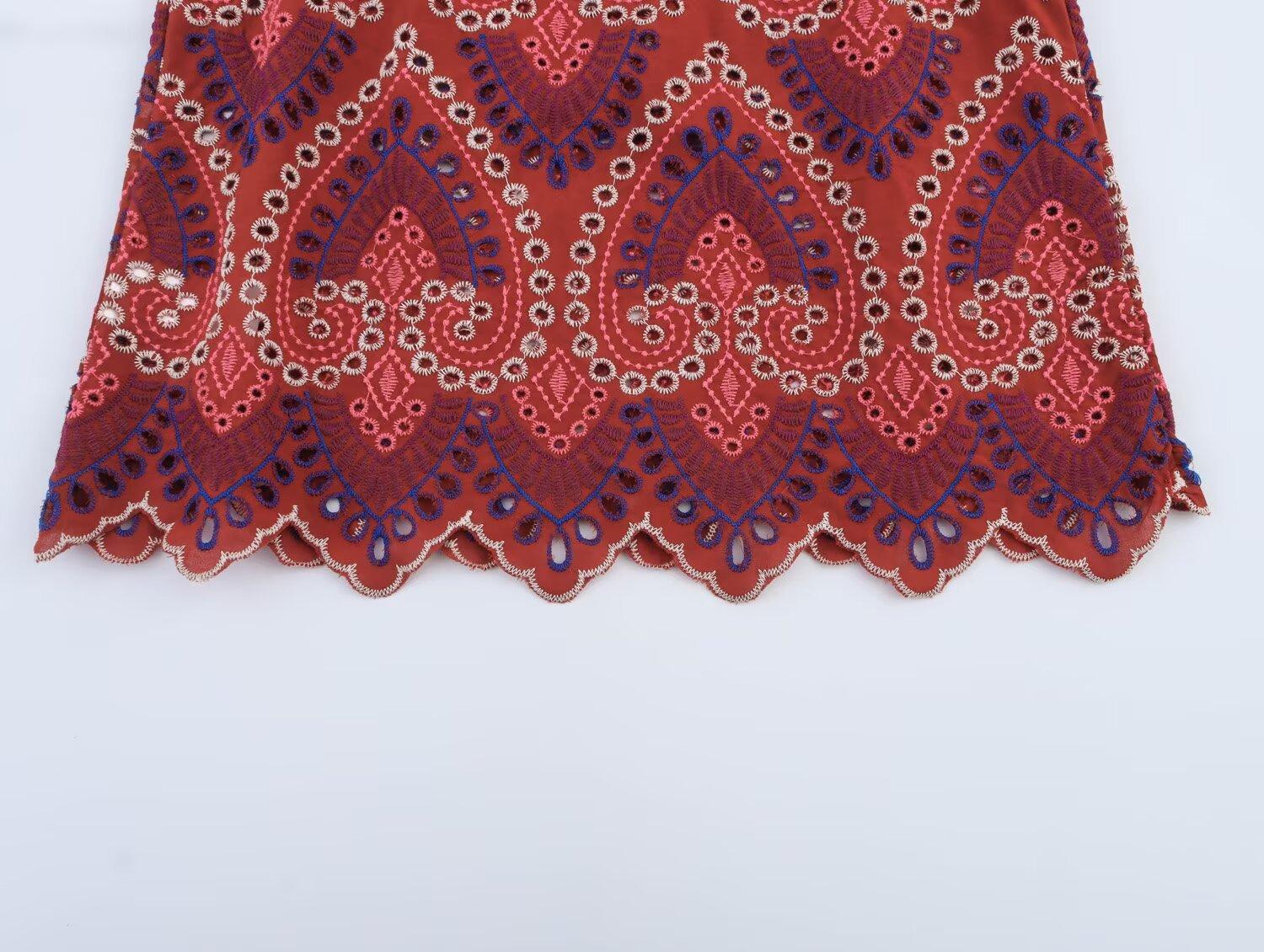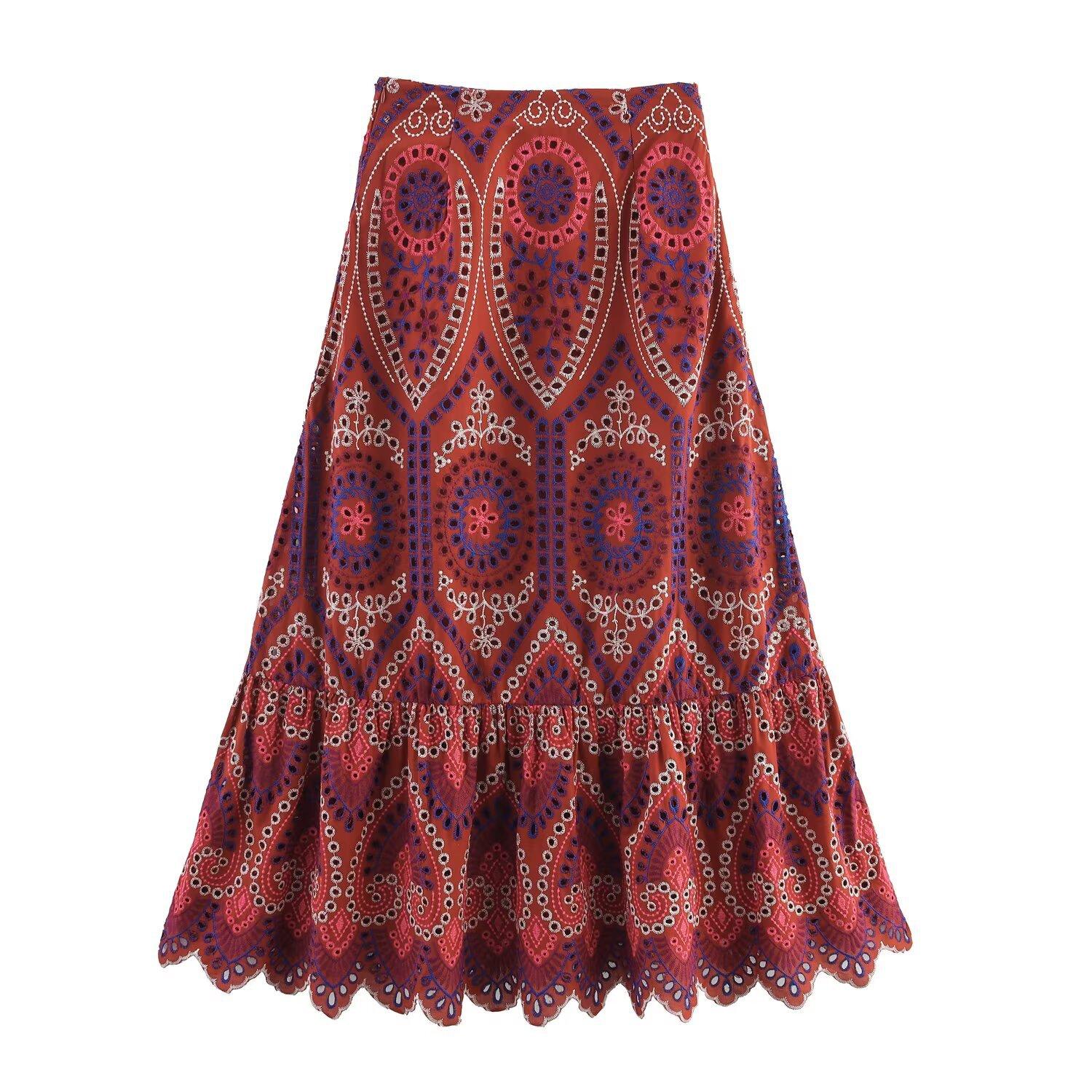 Venta al por mayor de exportación transfronteriza Estilo europeo y americano Moda Recorte Bordado Top Chaleco Falda Midi Traje 2939834