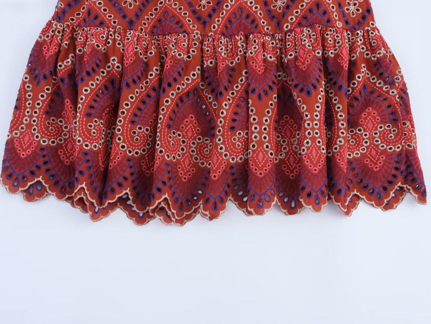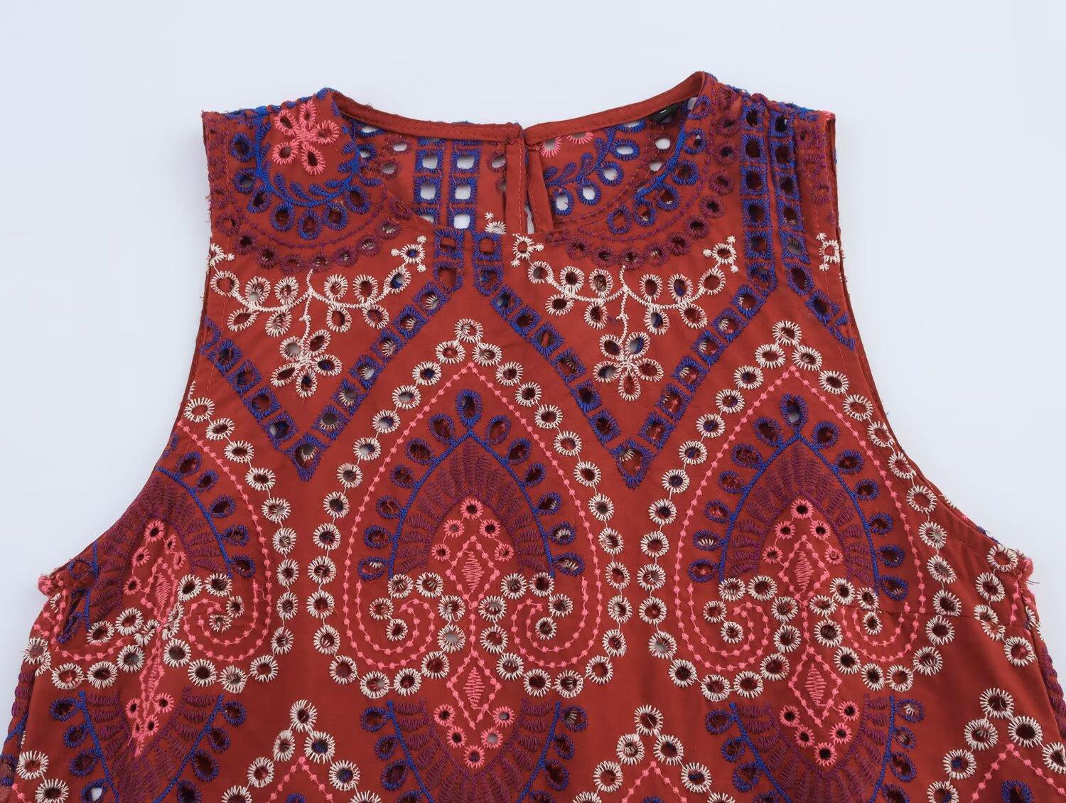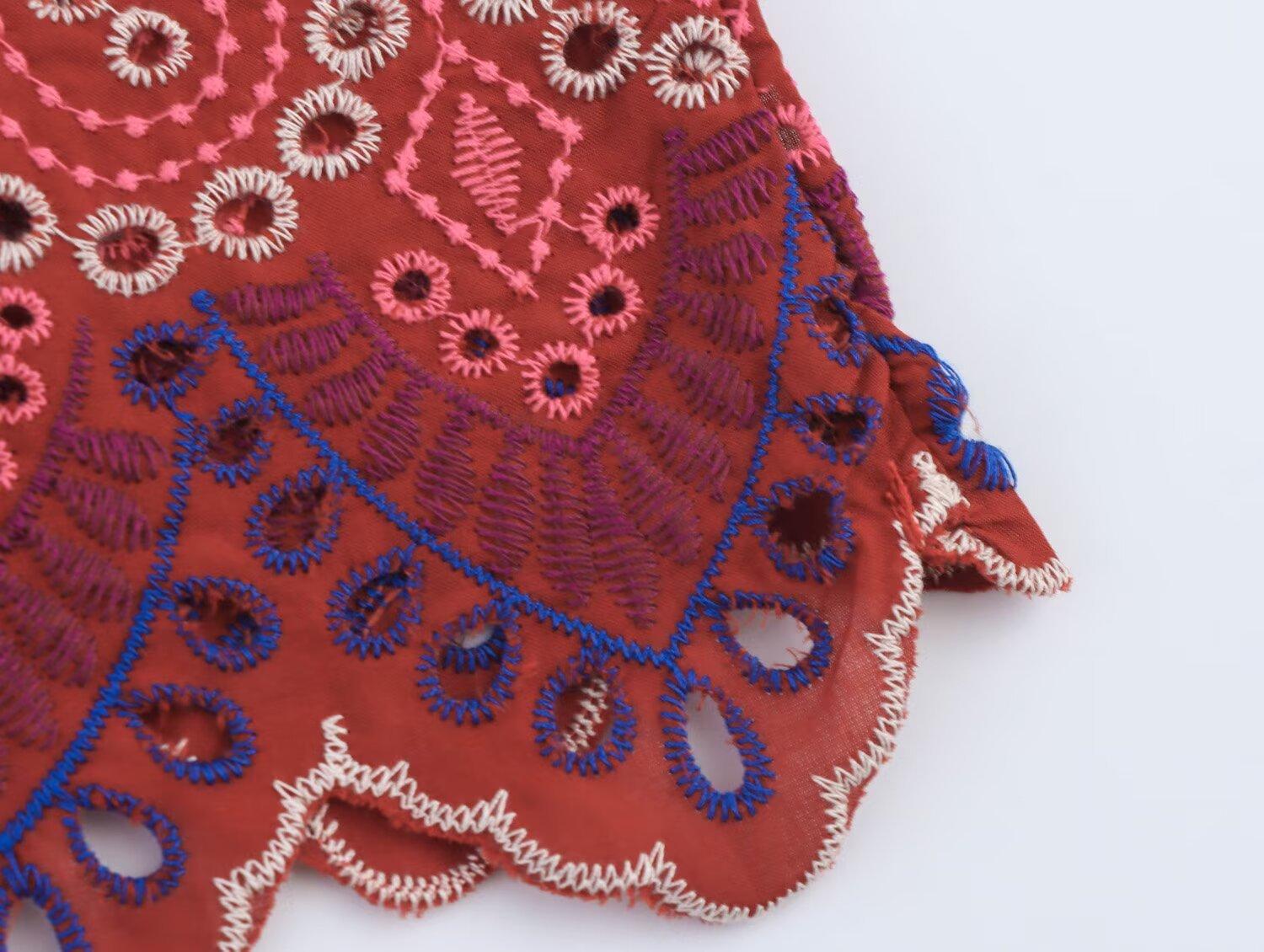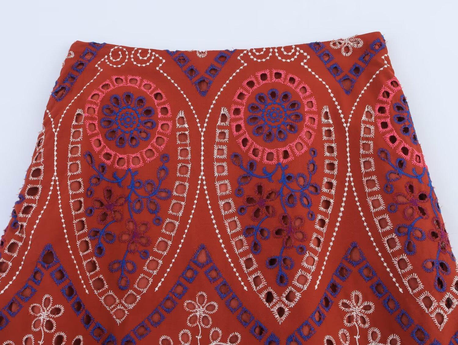 Venta al por mayor de exportación transfronteriza Estilo europeo y americano Moda Recorte Bordado Top Chaleco Falda Midi Traje 2939834