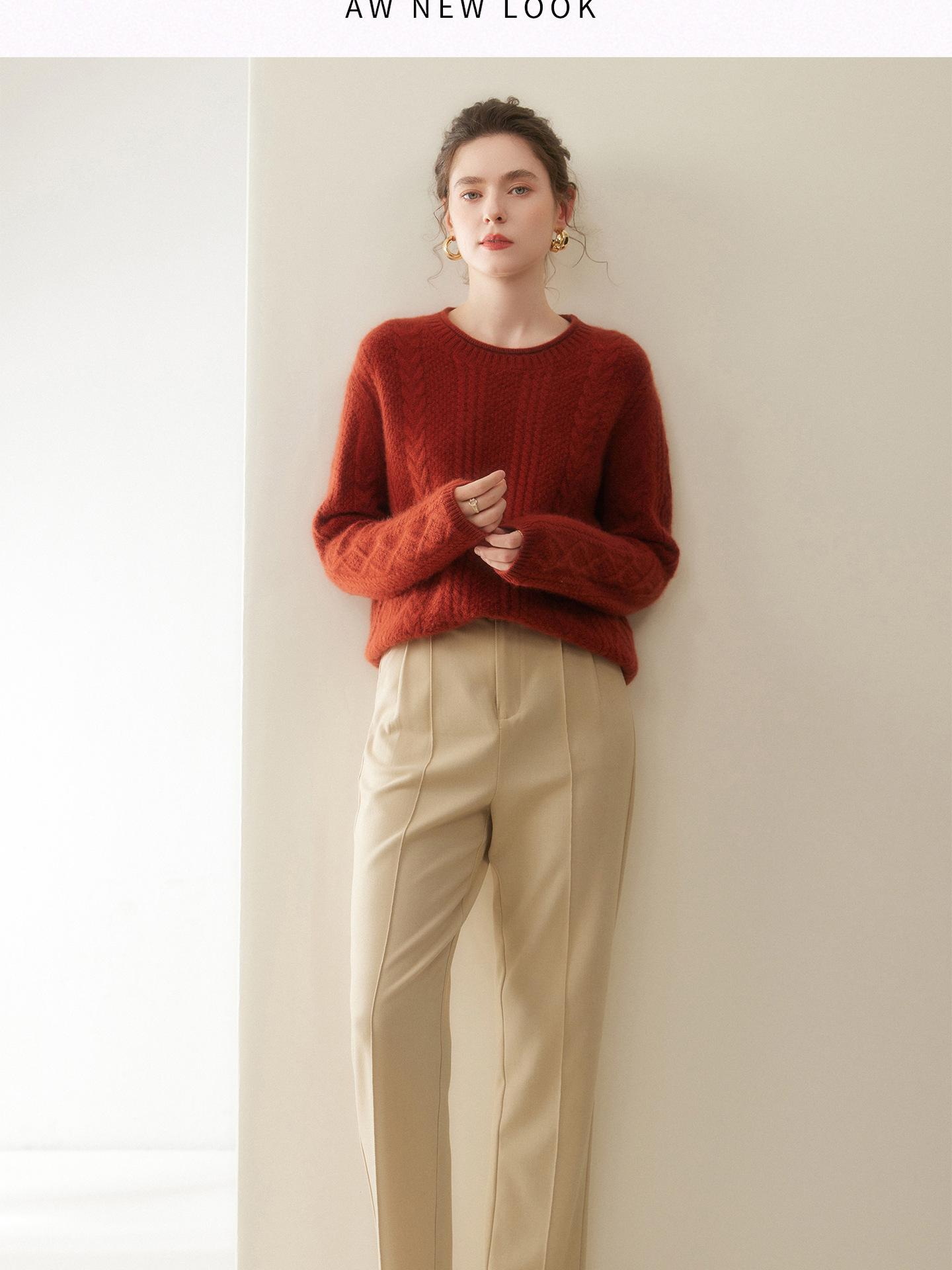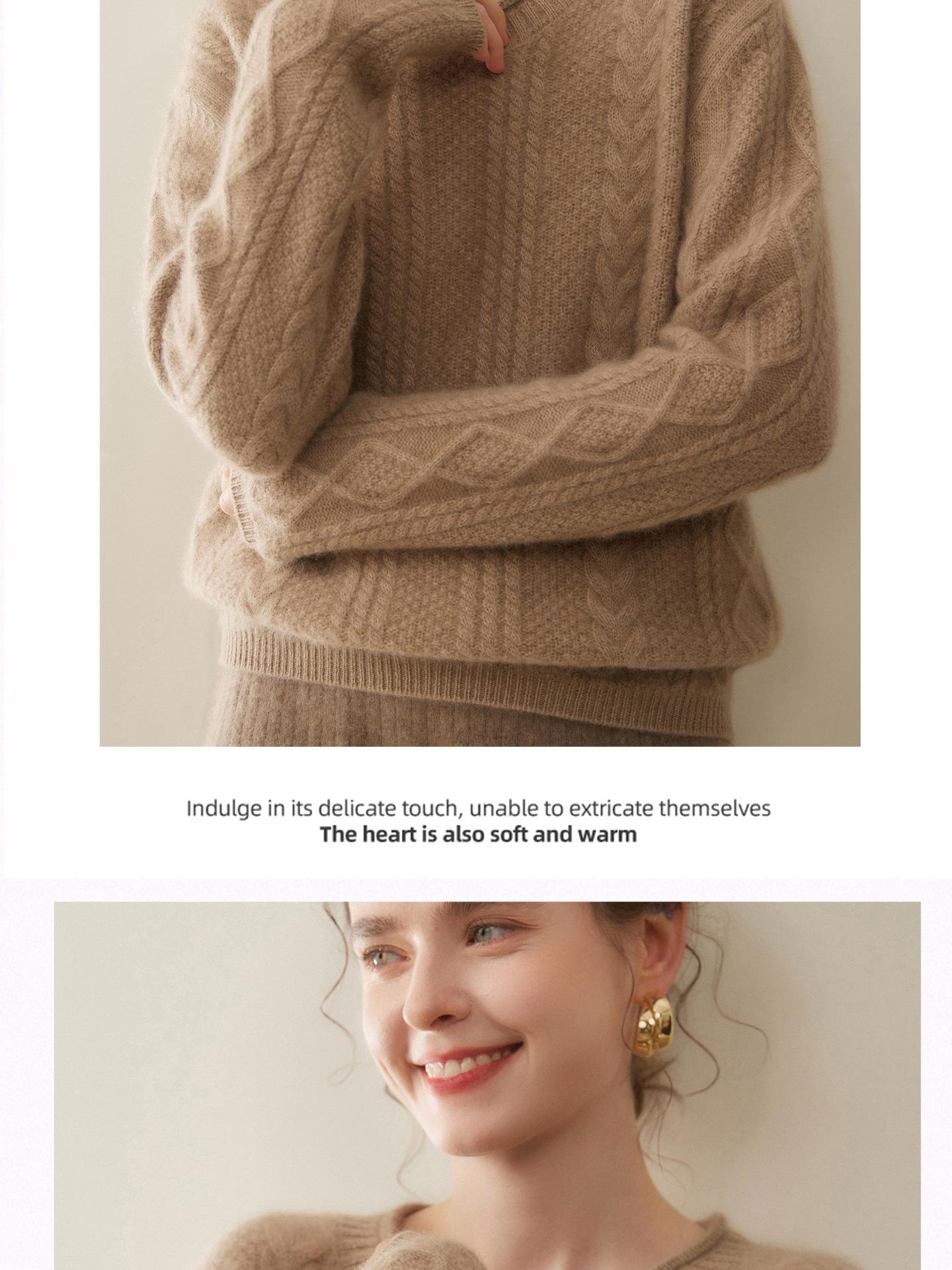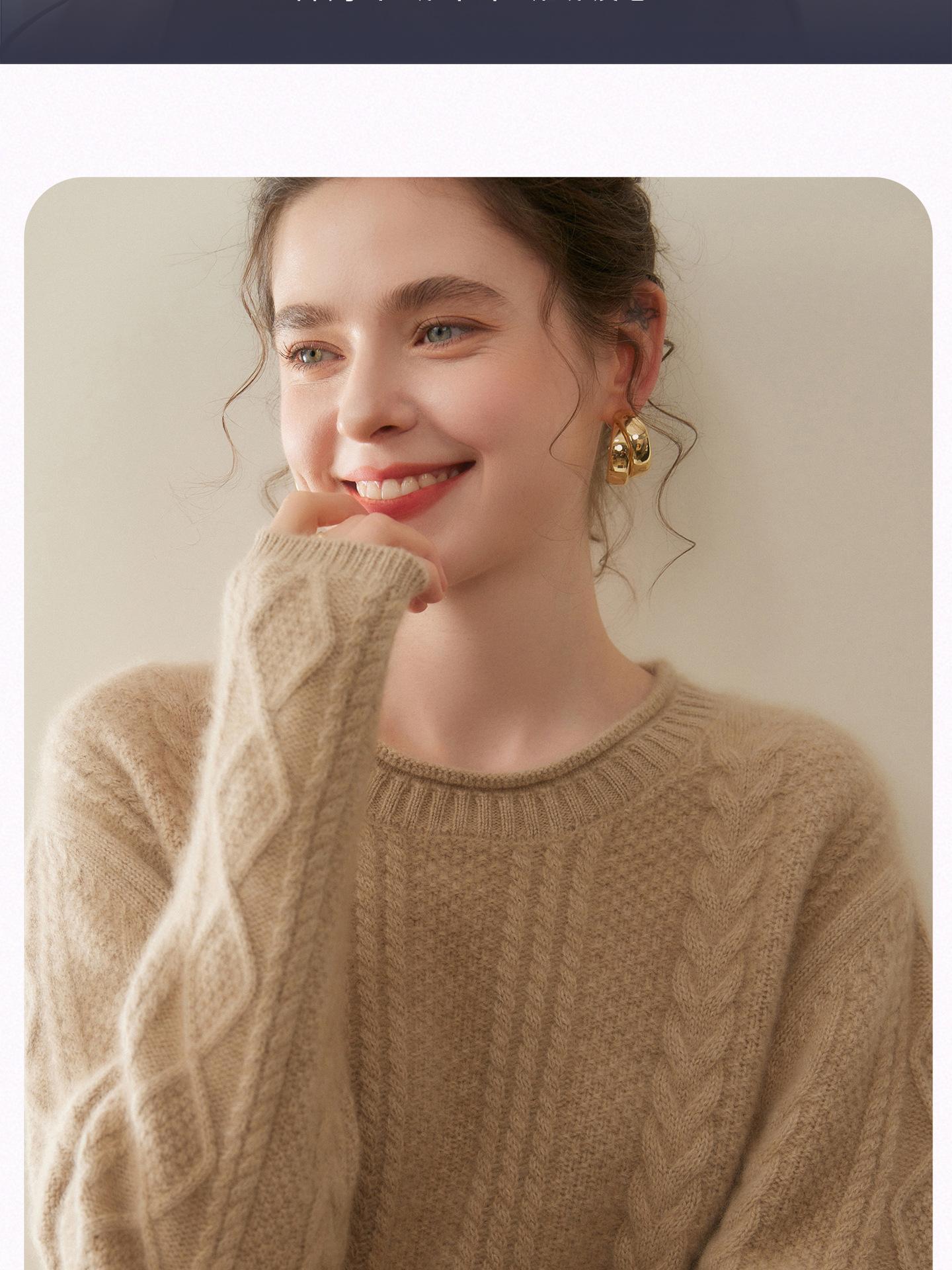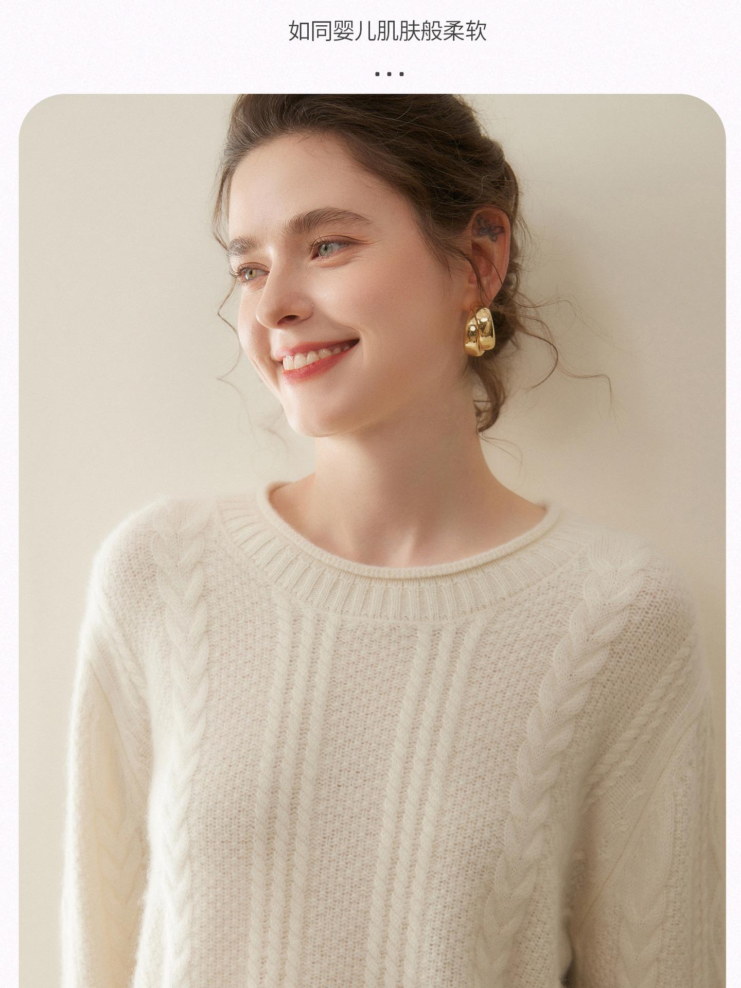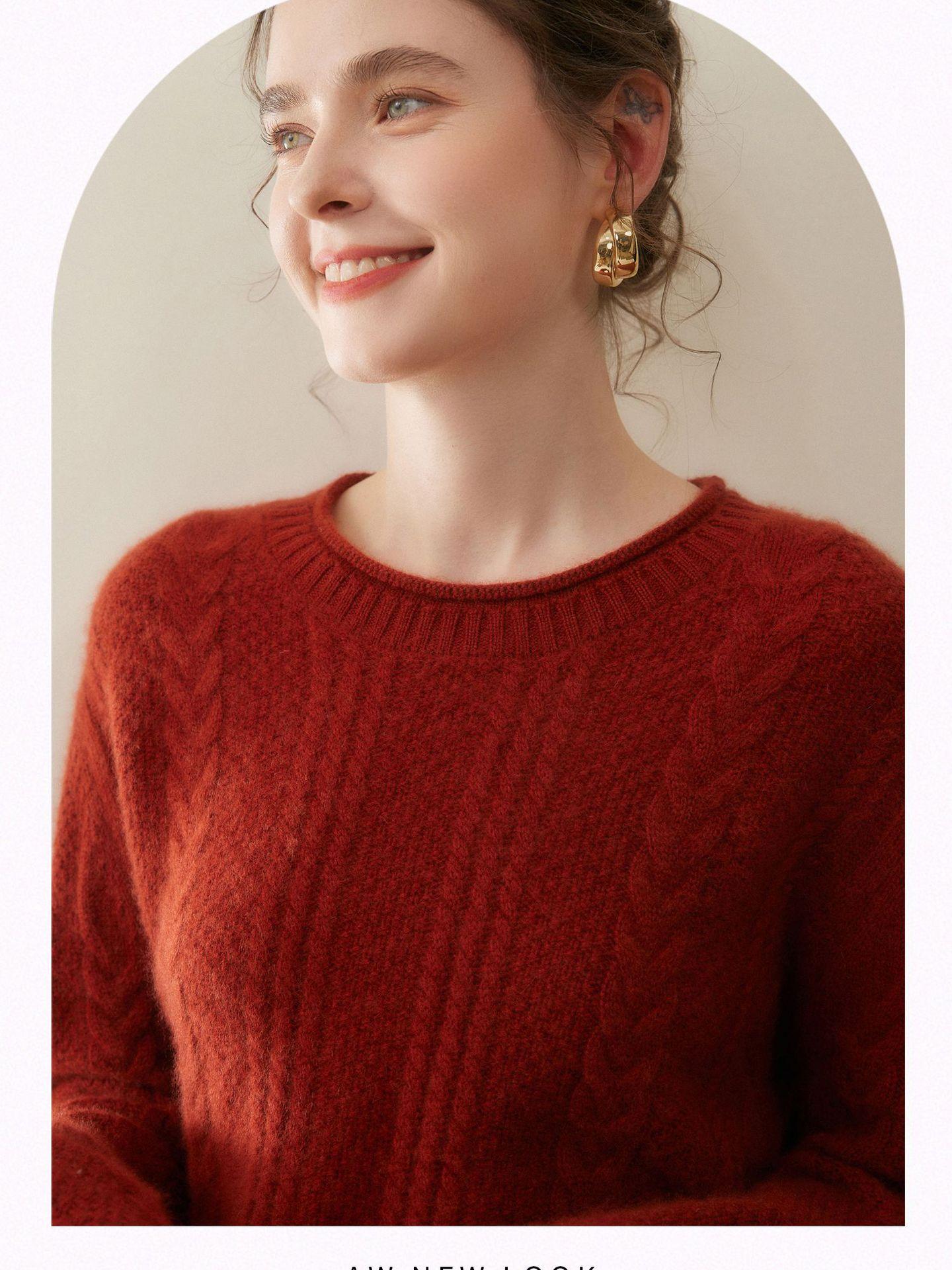 Nuevo Otoño/Invierno Clásico Suéter de Cachemira de Punto Cable con Cuello Redondo de Tres Hebras y Borde Enrollado para Mujer, Moda, Jersey de Punto Extra Grueso de Manga Larga