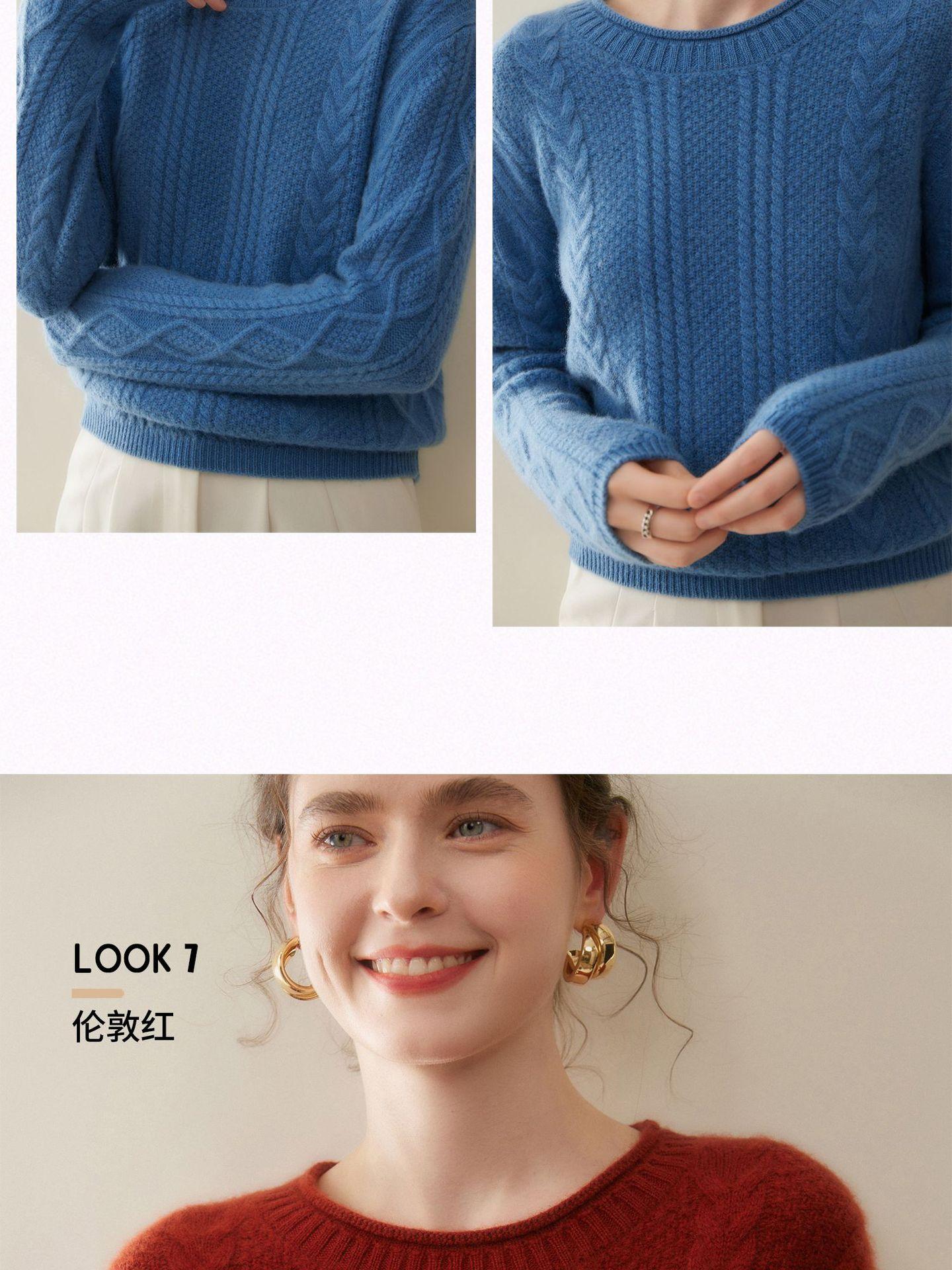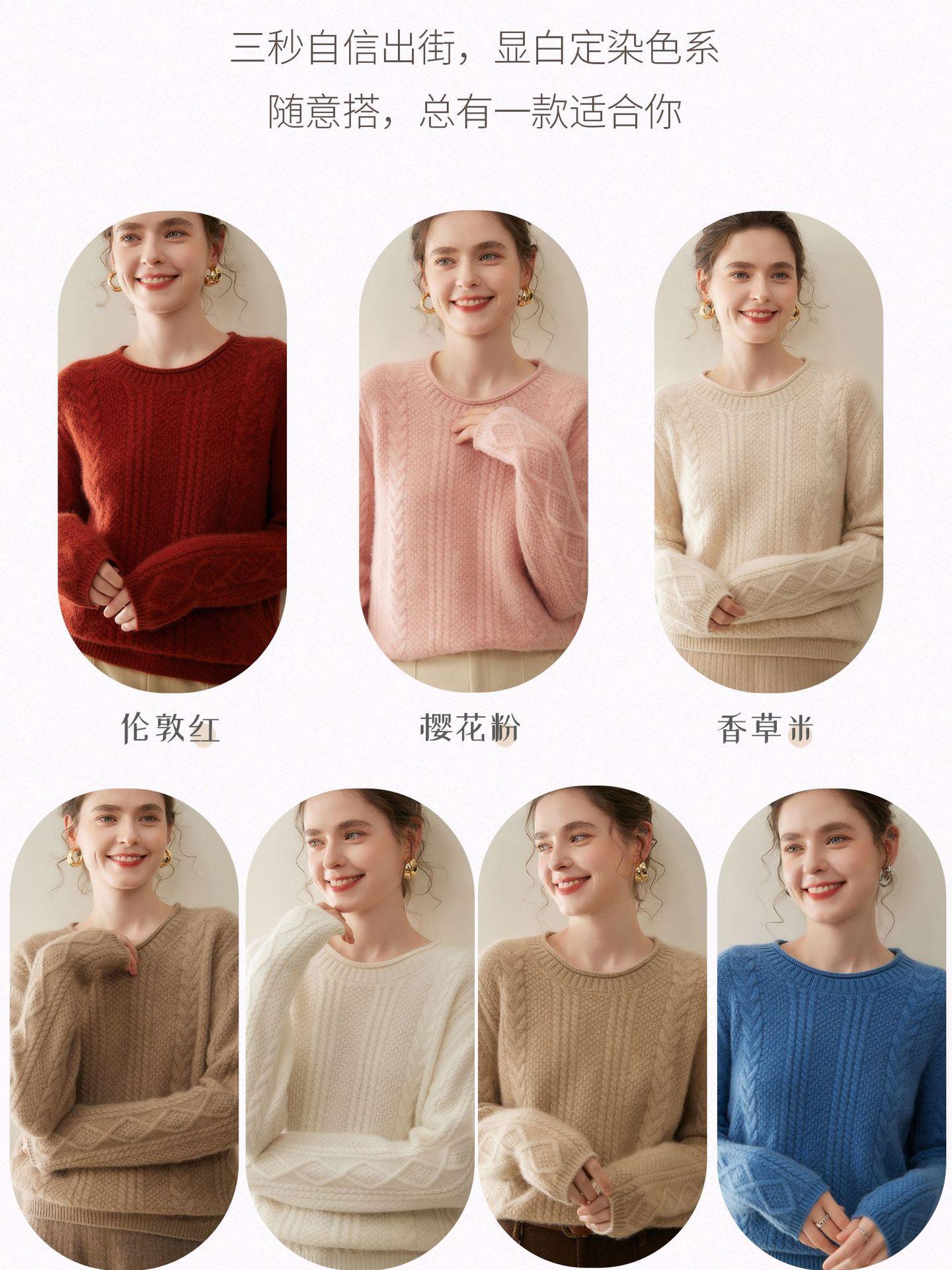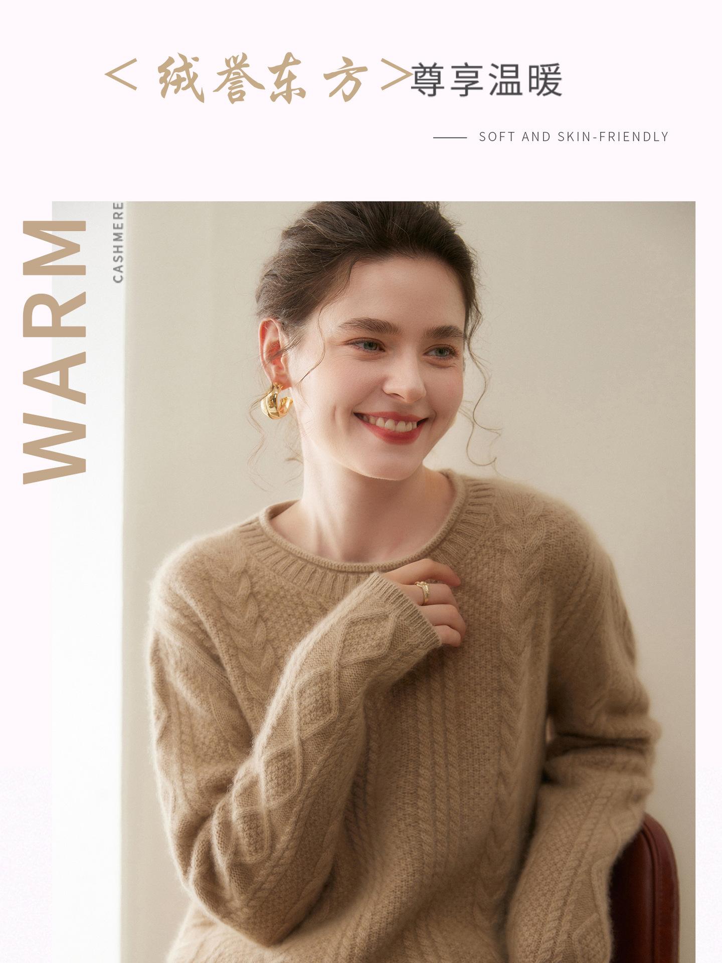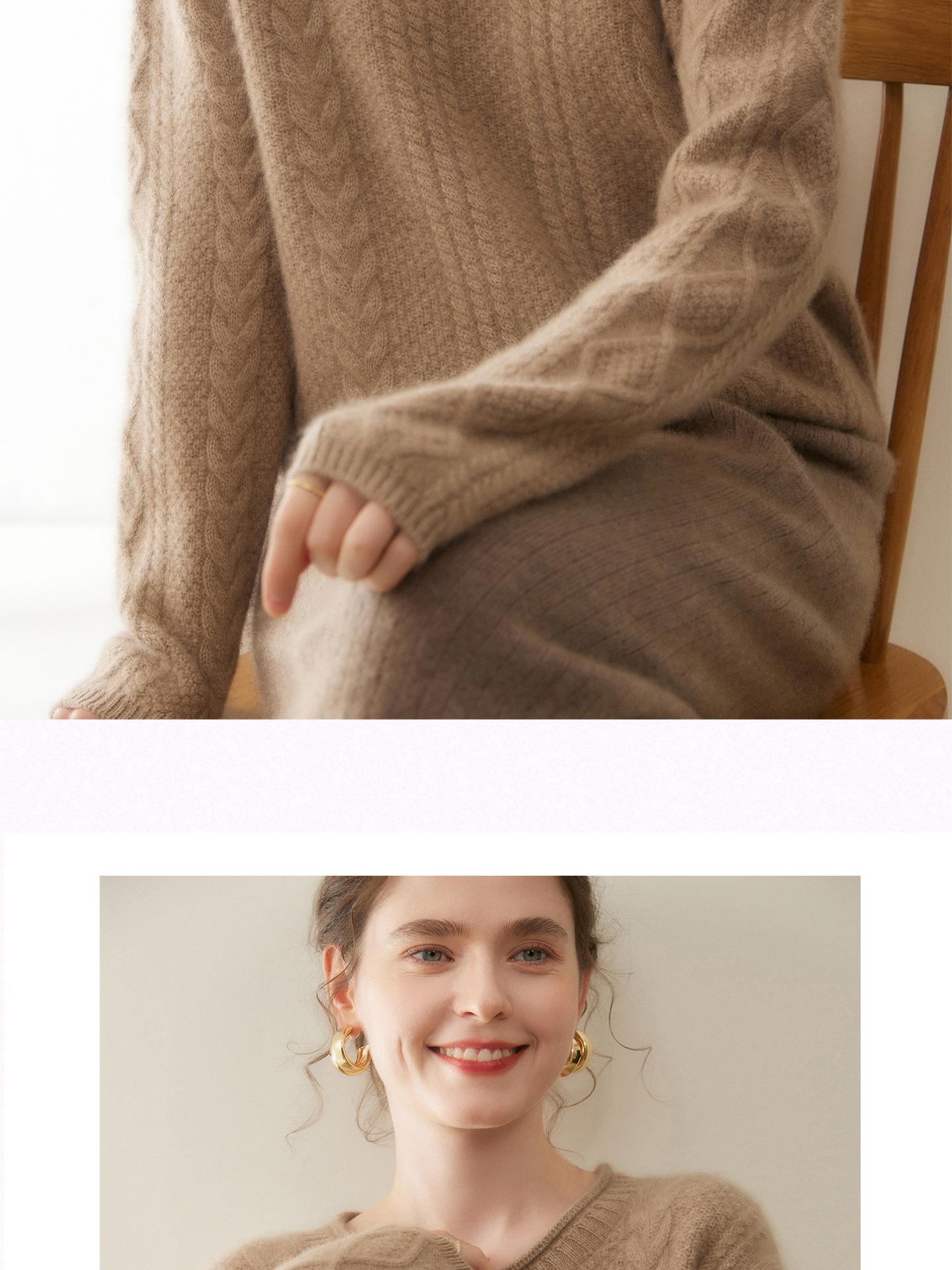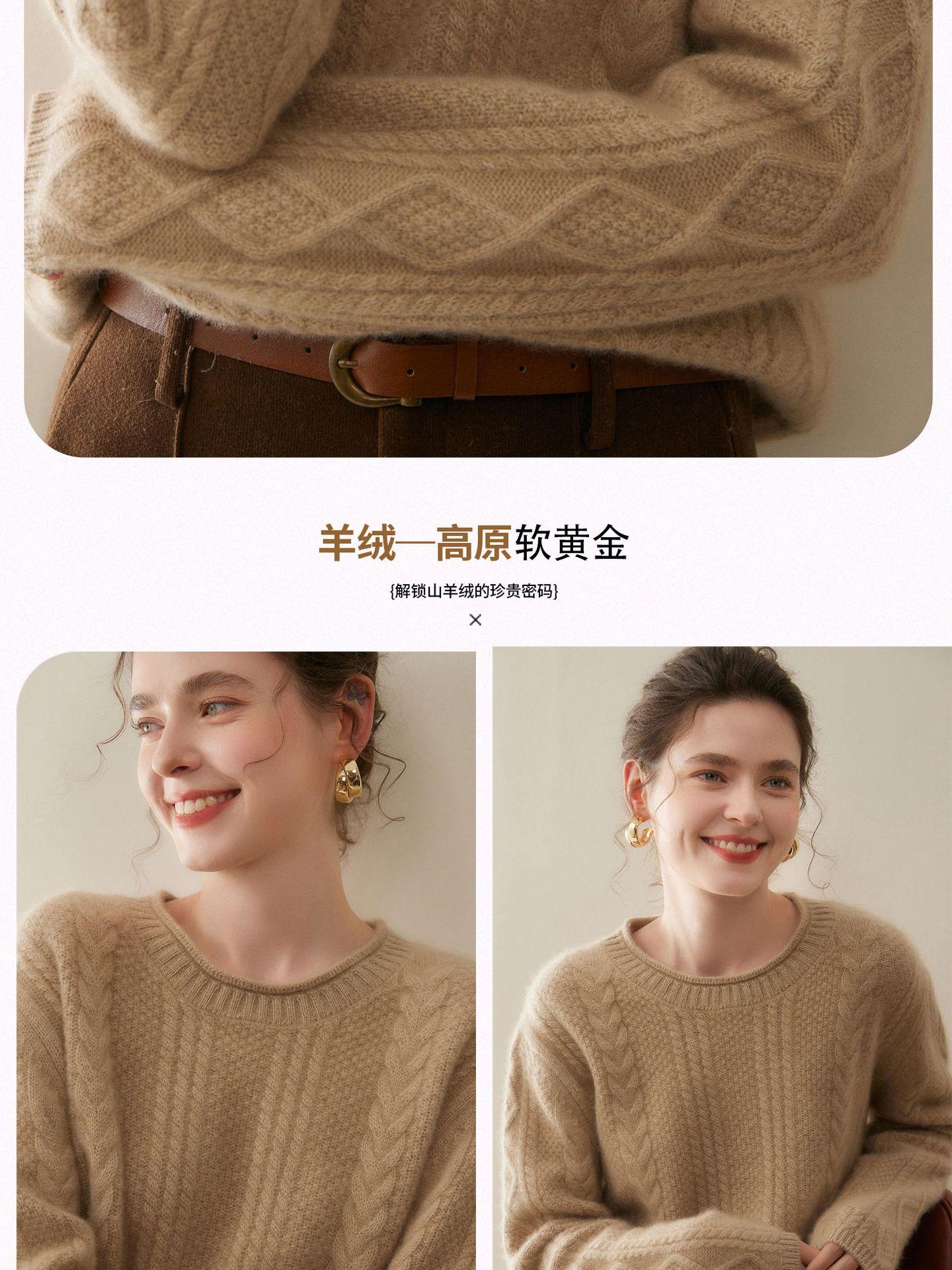 Nuevo Otoño/Invierno Clásico Suéter de Cachemira de Punto Cable con Cuello Redondo de Tres Hebras y Borde Enrollado para Mujer, Moda, Jersey de Punto Extra Grueso de Manga Larga