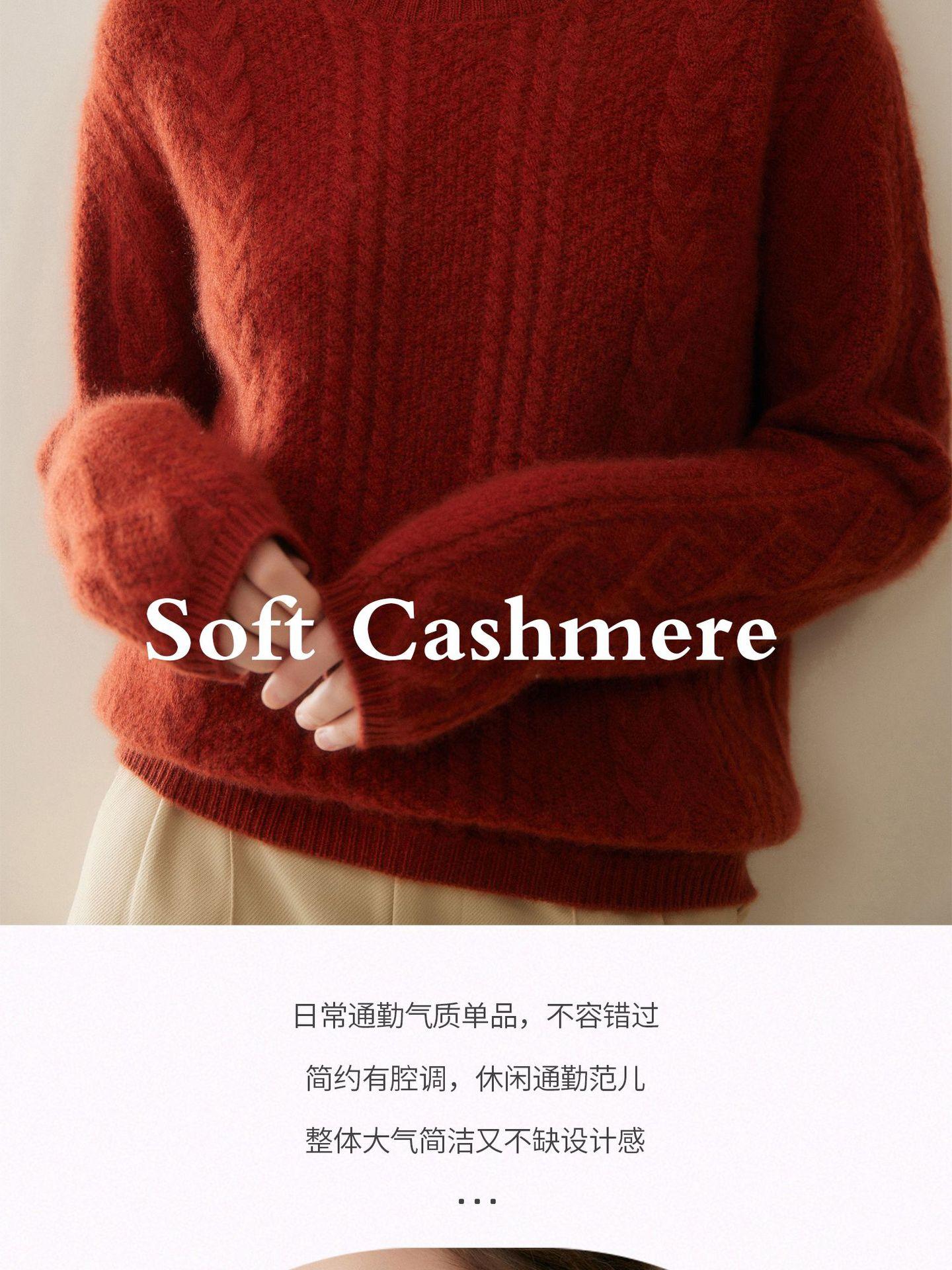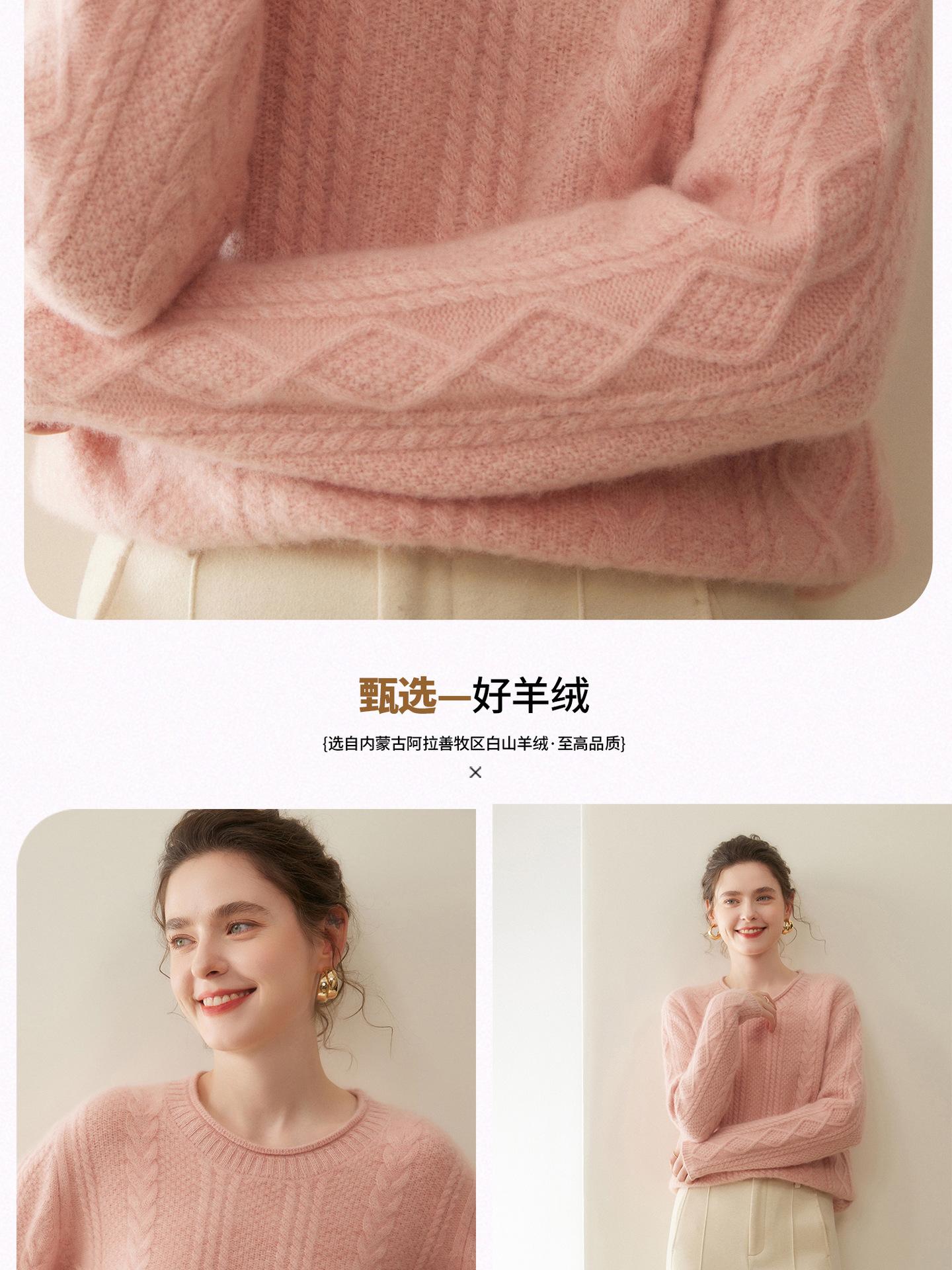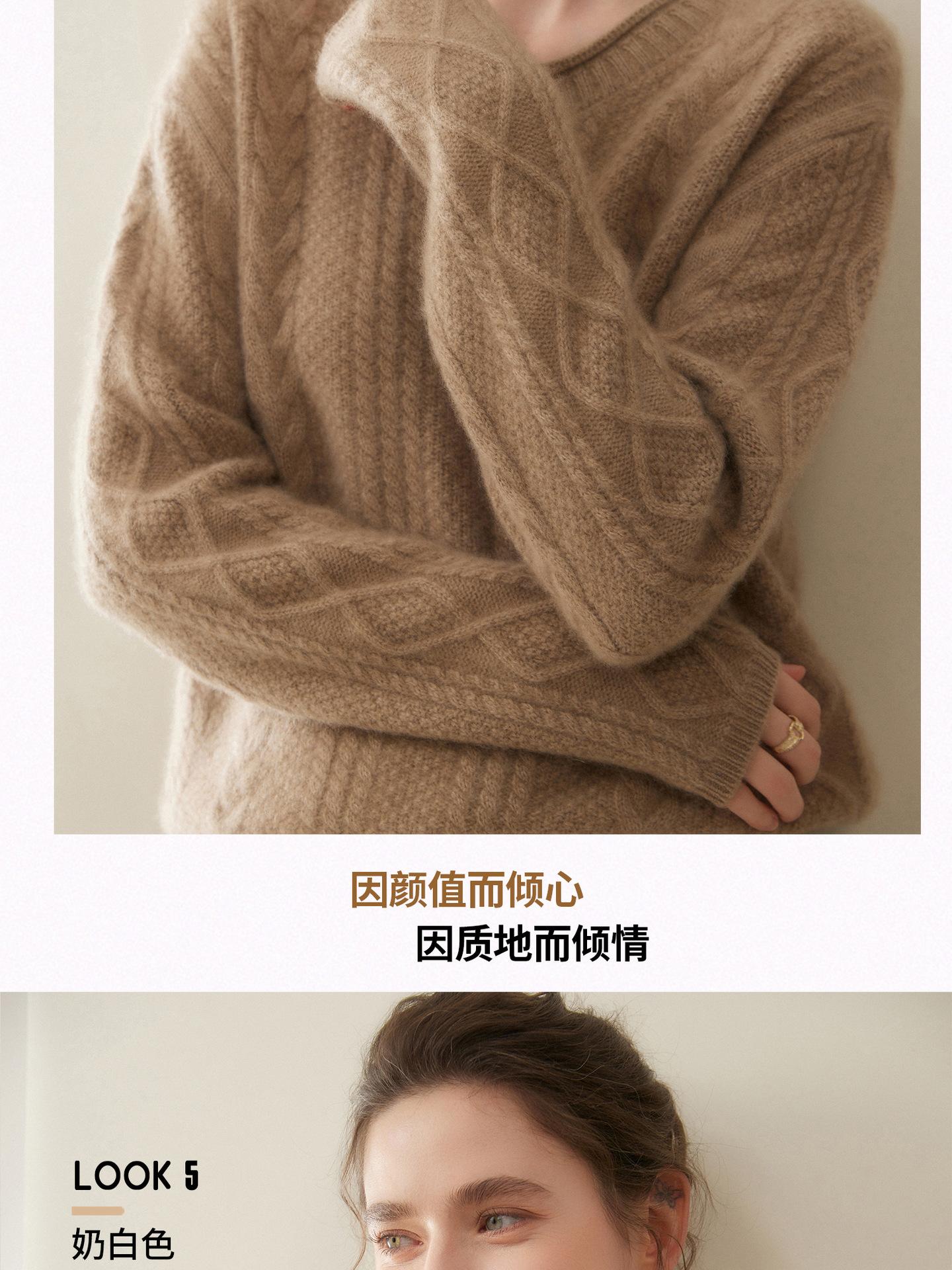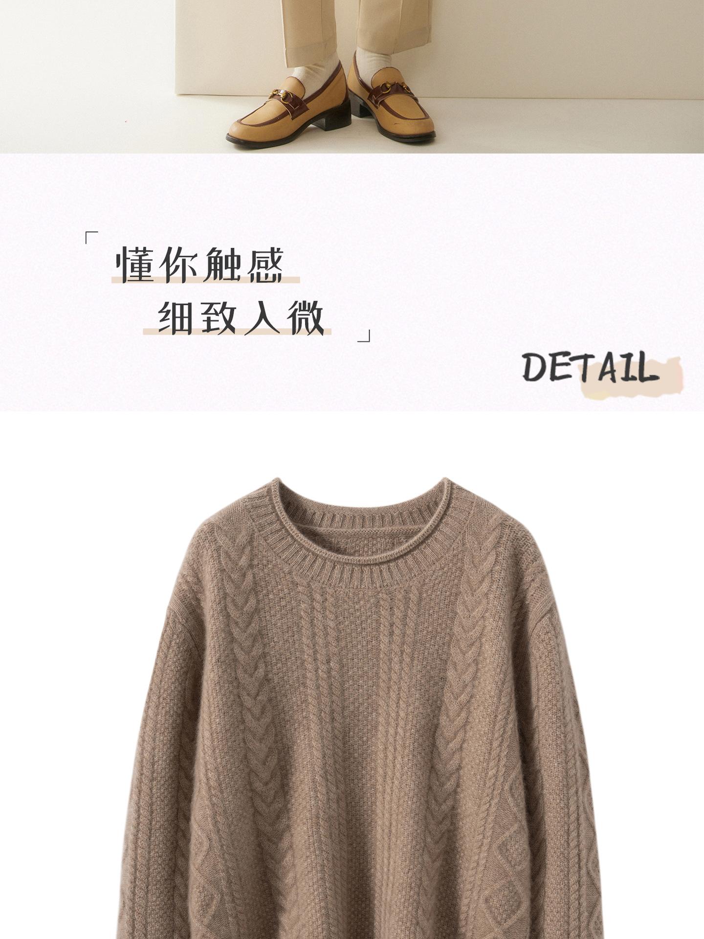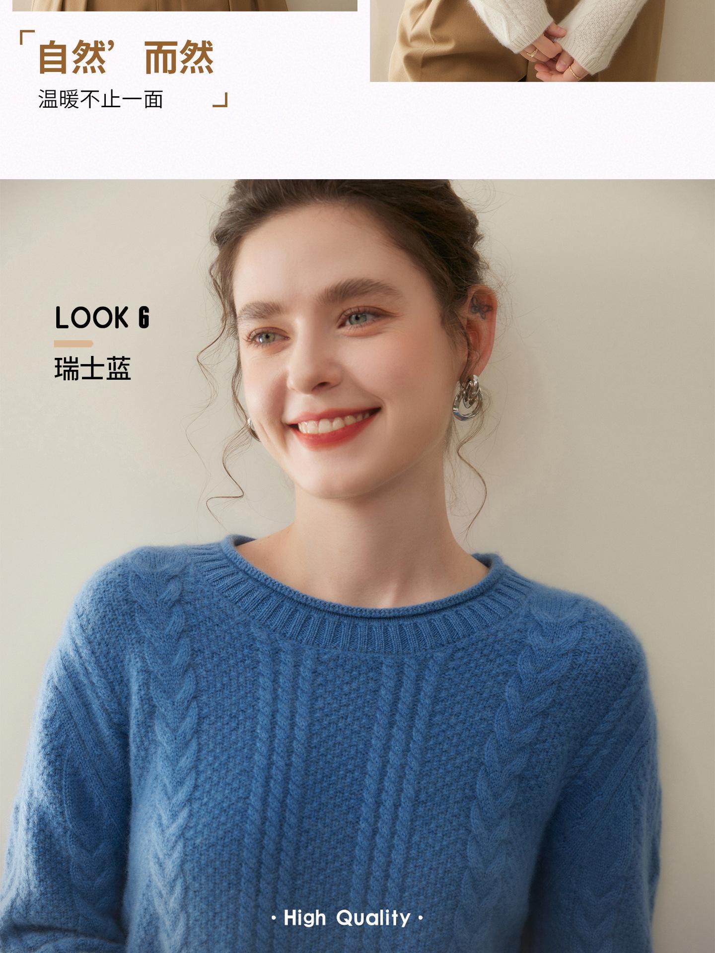 Nuevo Otoño/Invierno Clásico Suéter de Cachemira de Punto Cable con Cuello Redondo de Tres Hebras y Borde Enrollado para Mujer, Moda, Jersey de Punto Extra Grueso de Manga Larga