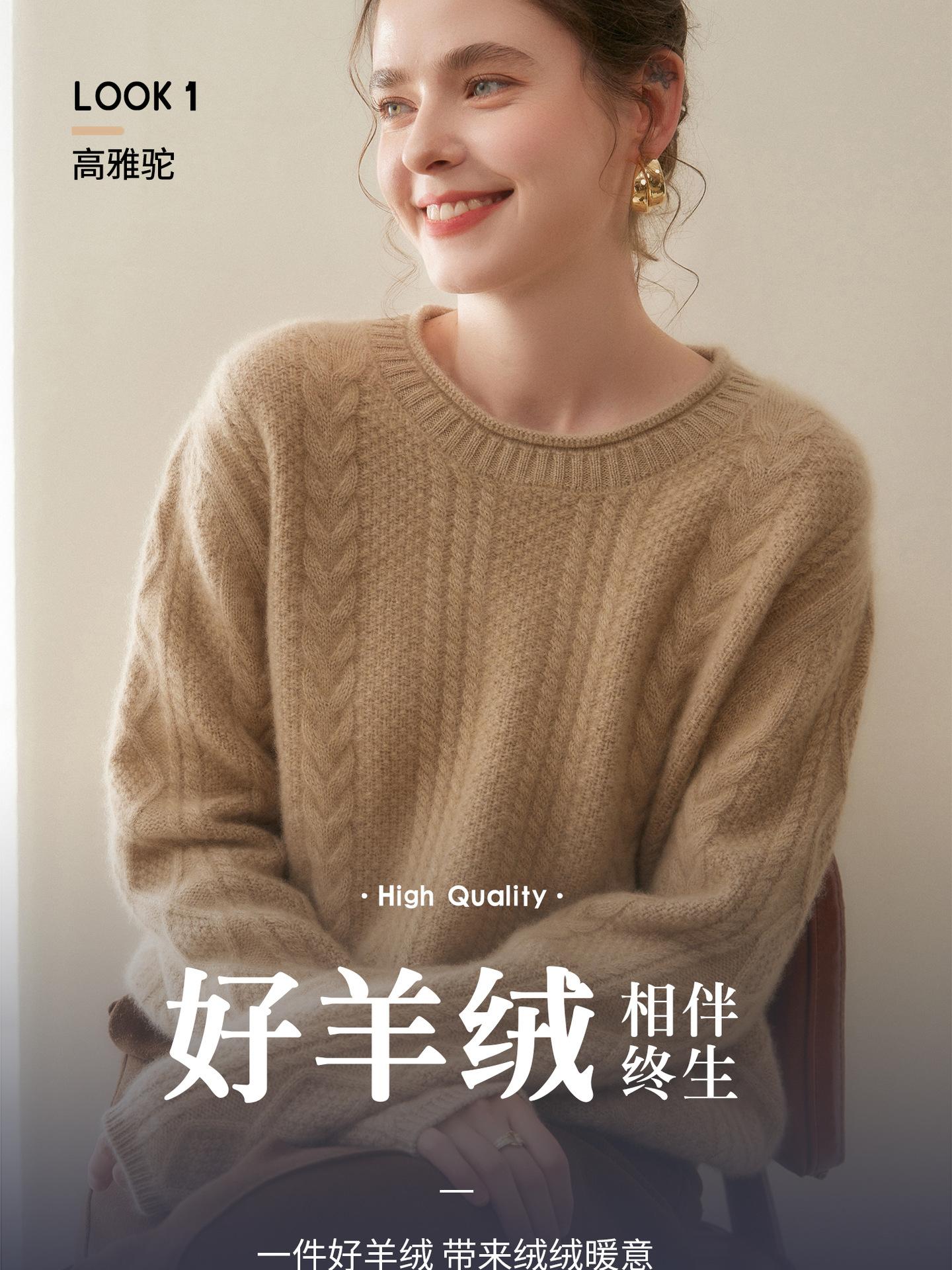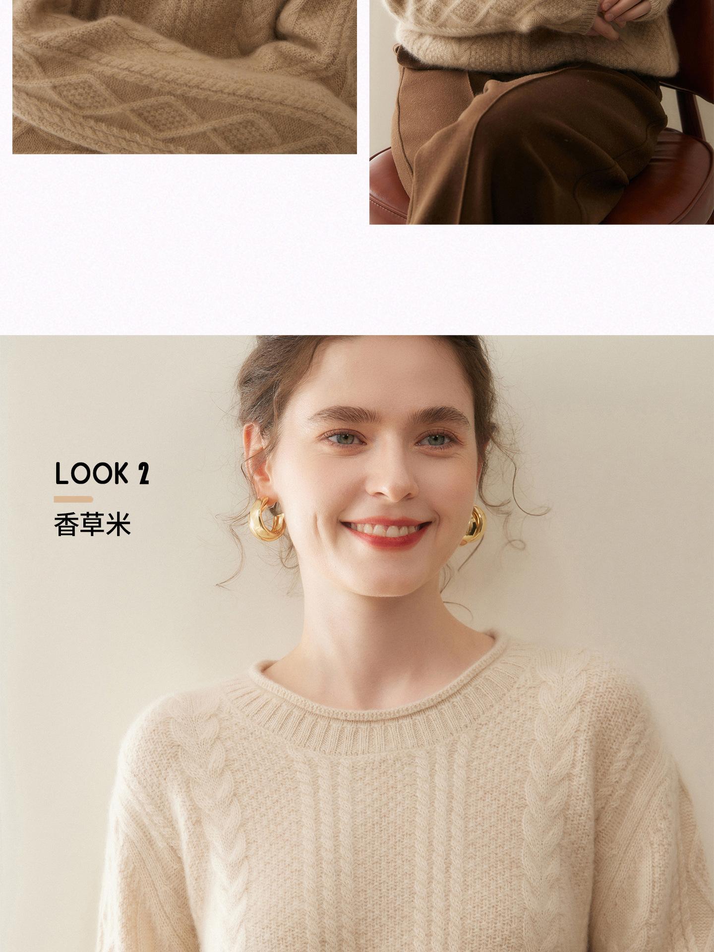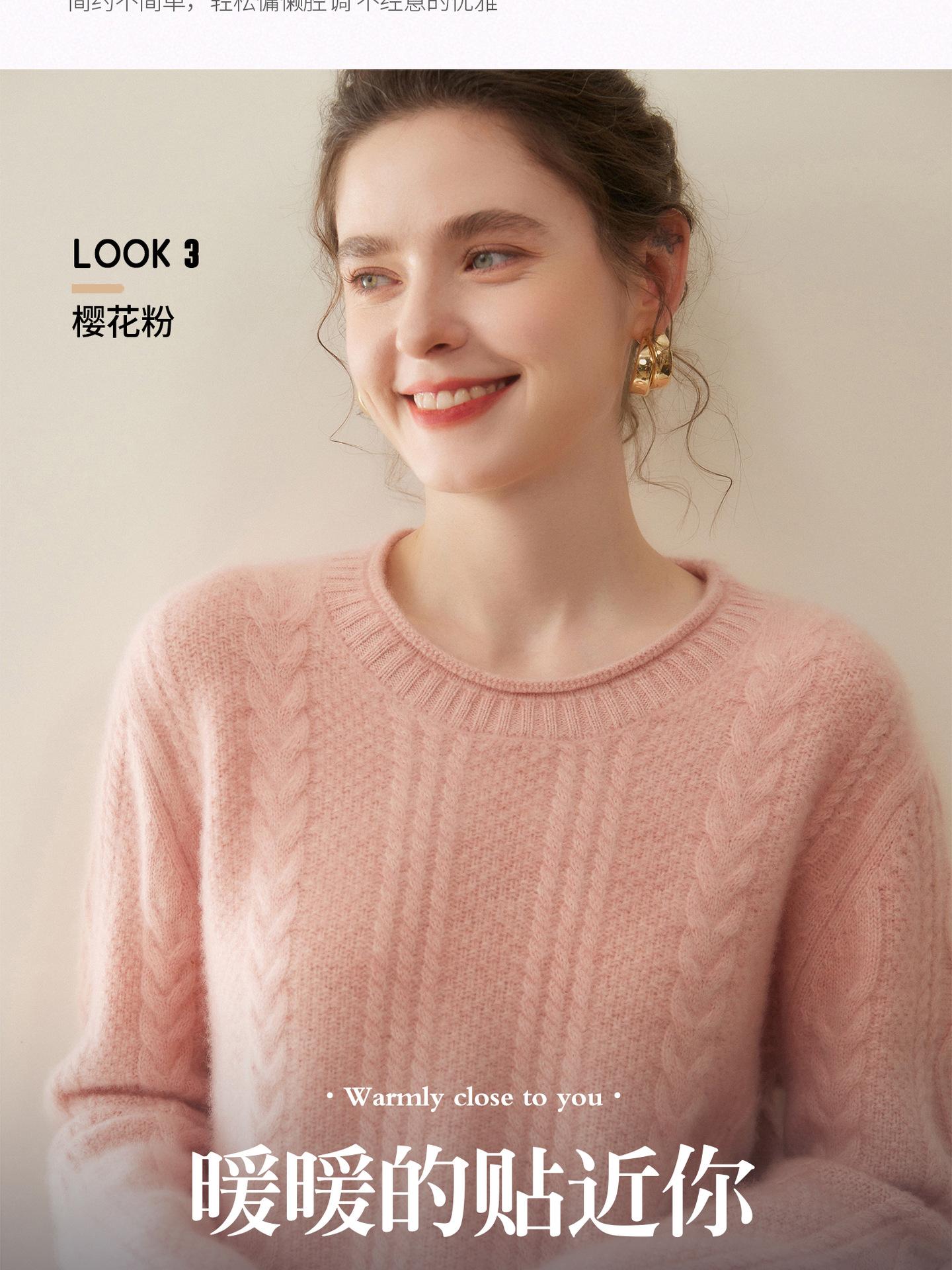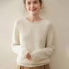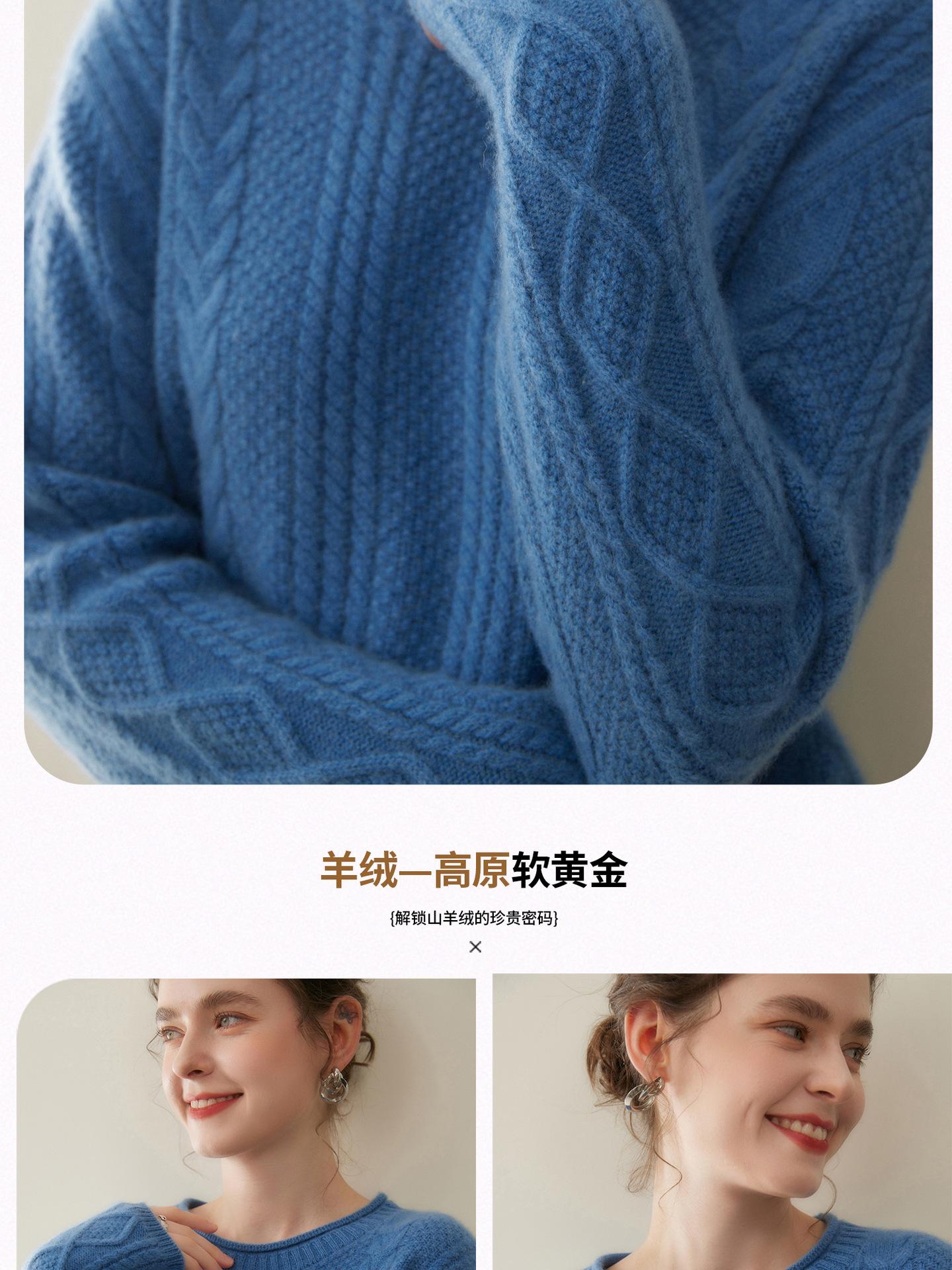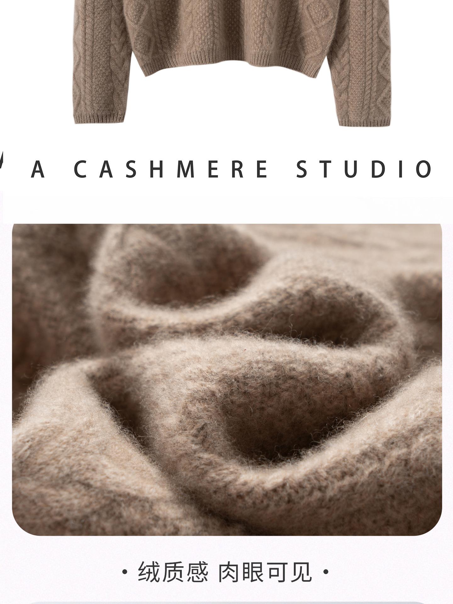 Nuevo Otoño/Invierno Clásico Suéter de Cachemira de Punto Cable con Cuello Redondo de Tres Hebras y Borde Enrollado para Mujer, Moda, Jersey de Punto Extra Grueso de Manga Larga
