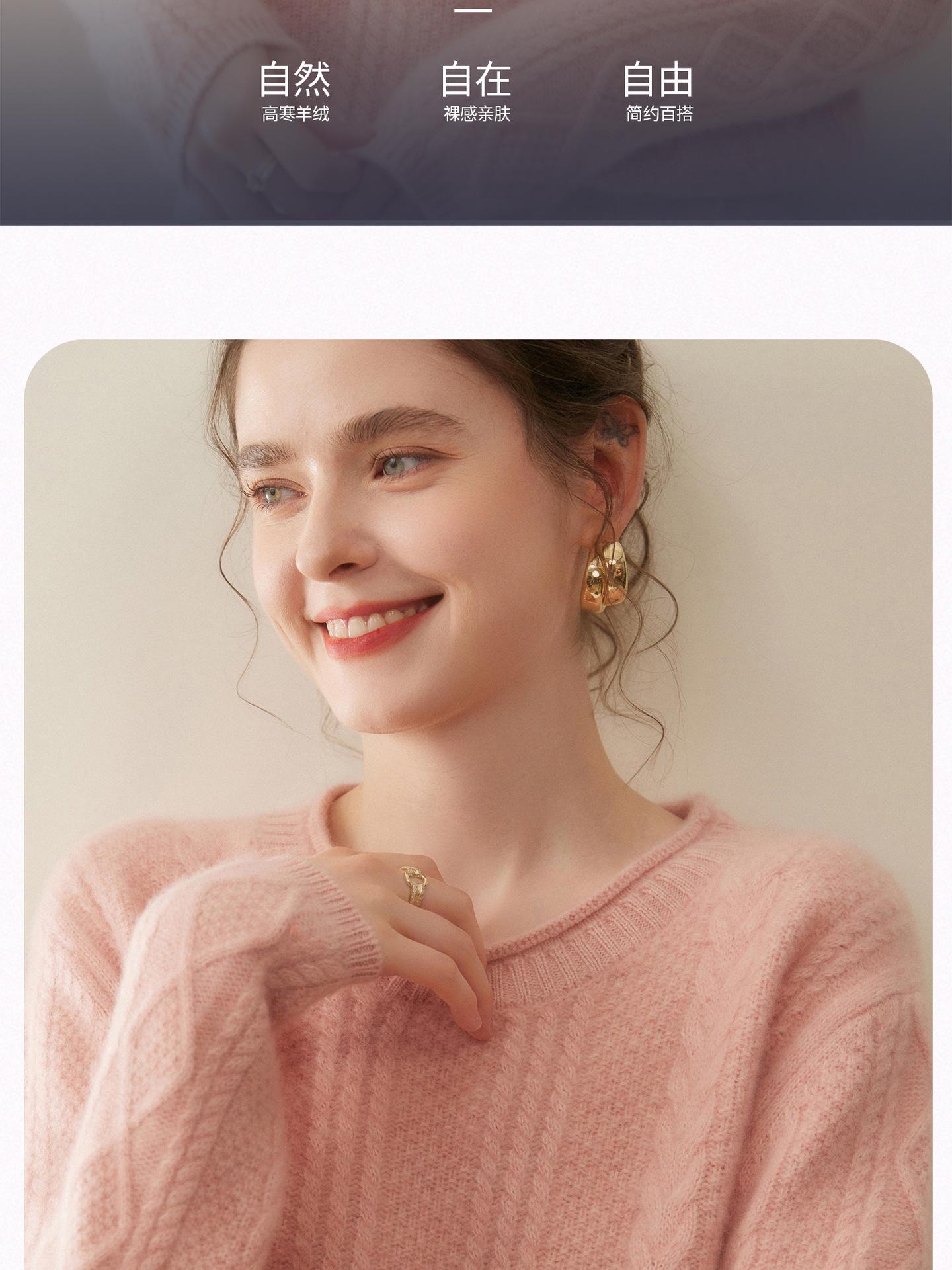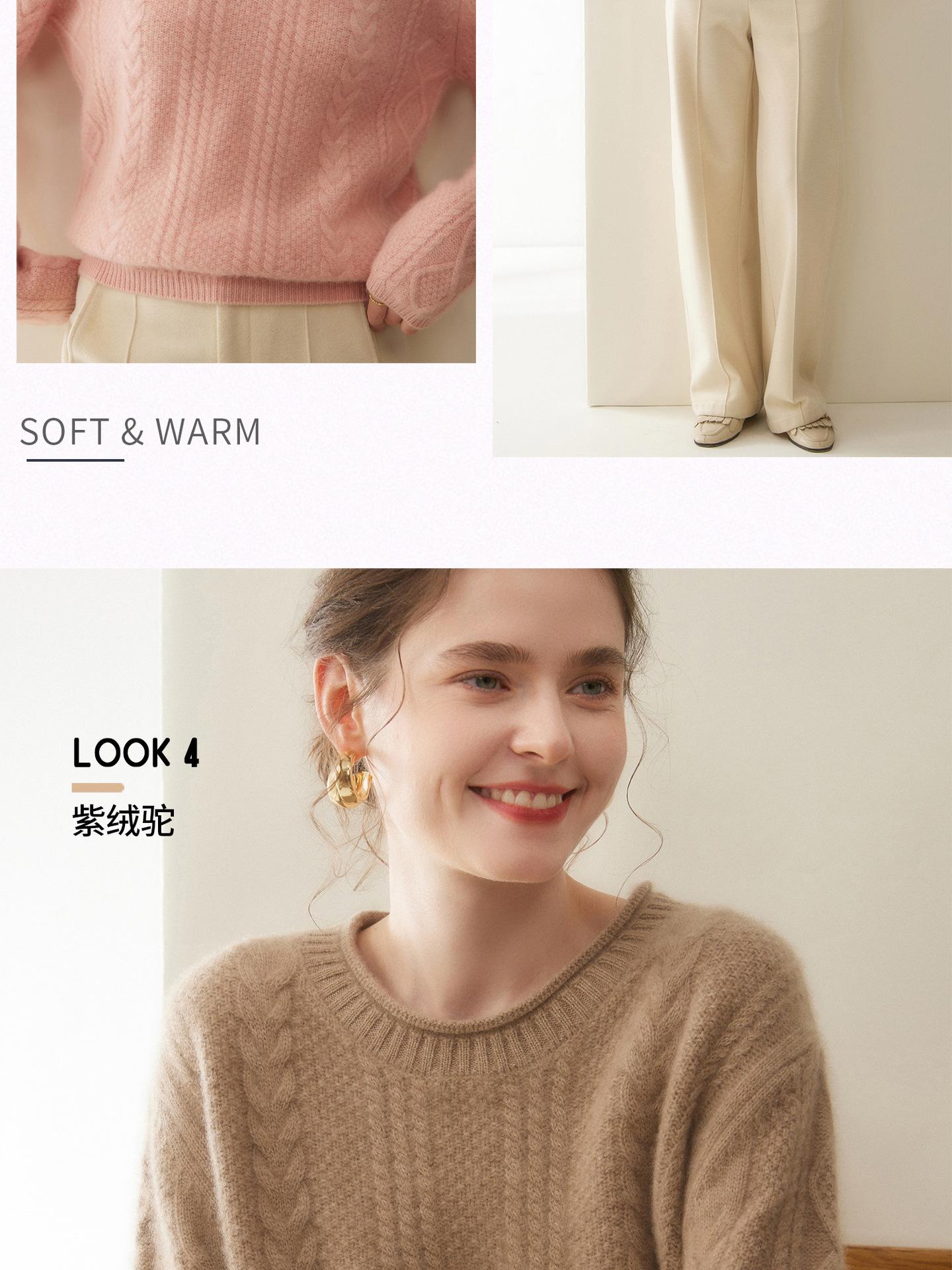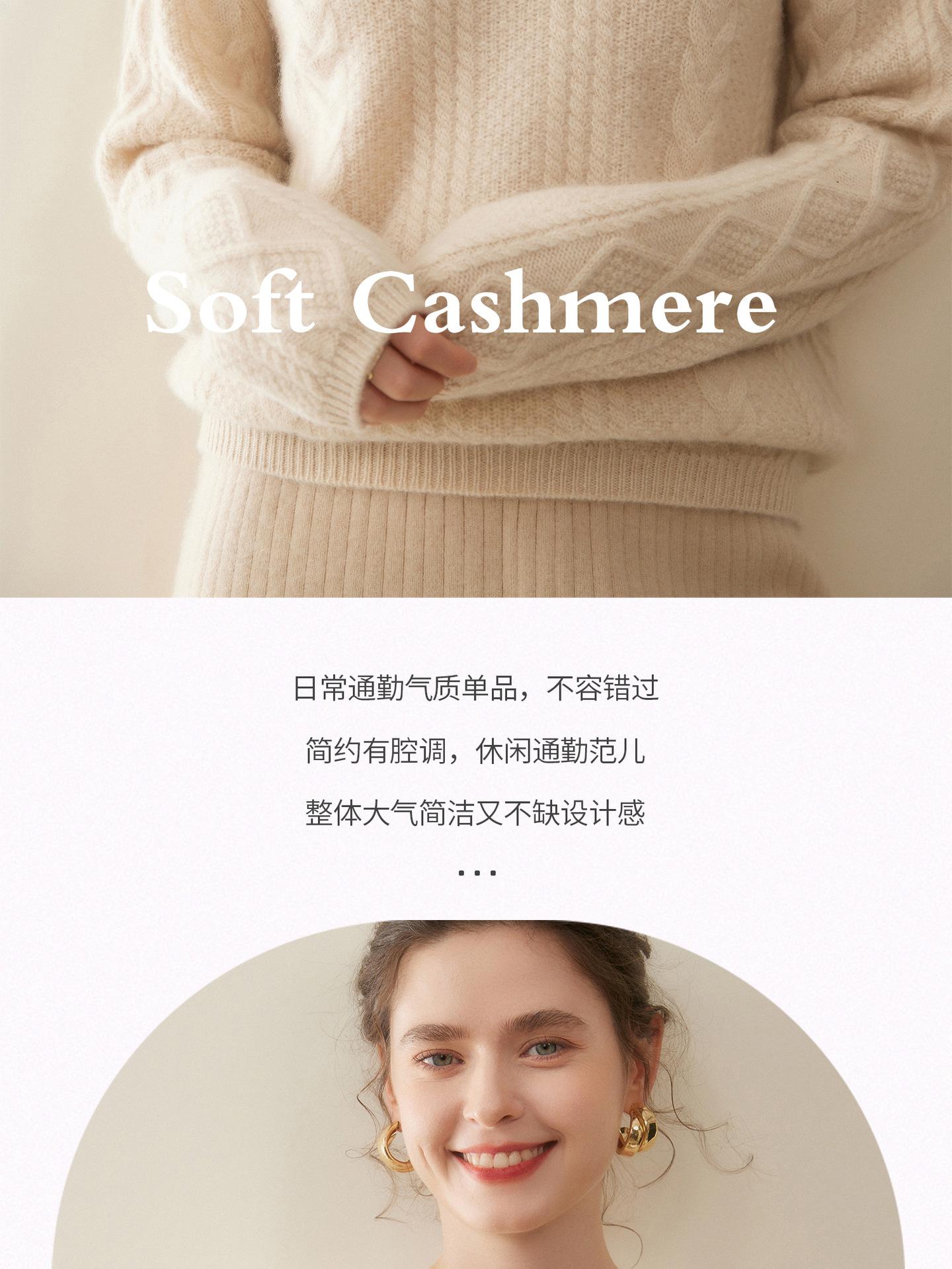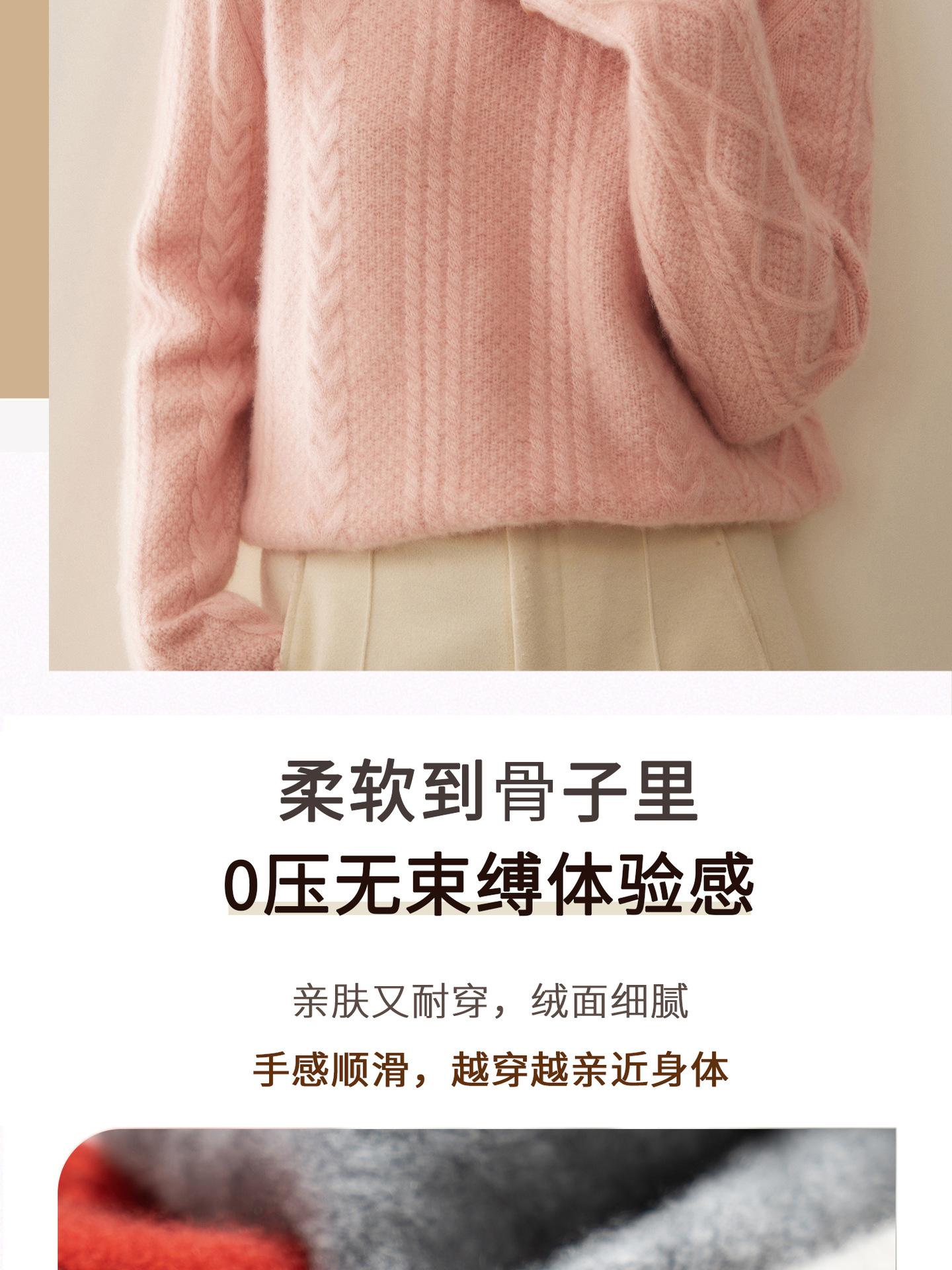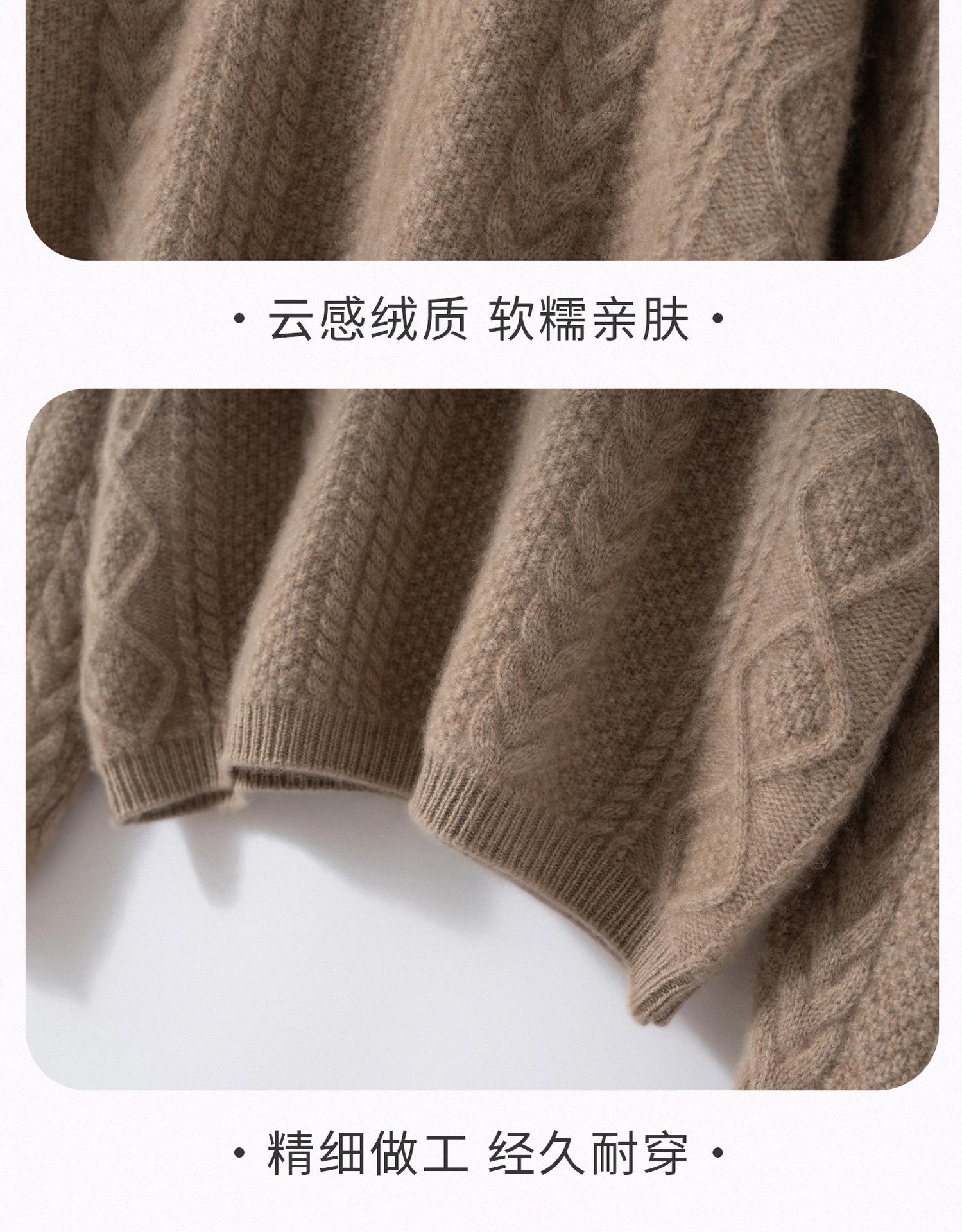 Nuevo Otoño/Invierno Clásico Suéter de Cachemira de Punto Cable con Cuello Redondo de Tres Hebras y Borde Enrollado para Mujer, Moda, Jersey de Punto Extra Grueso de Manga Larga