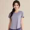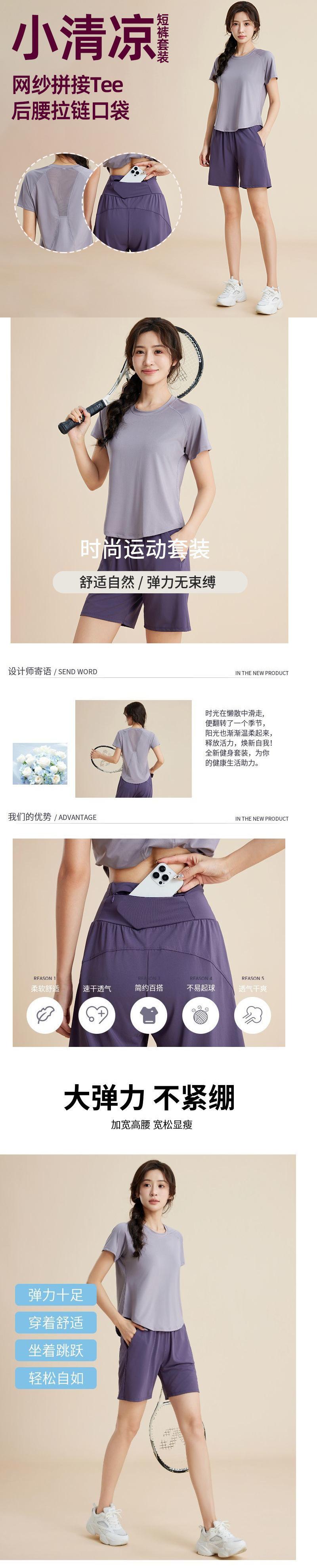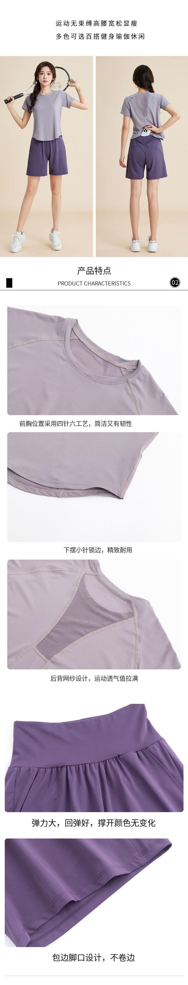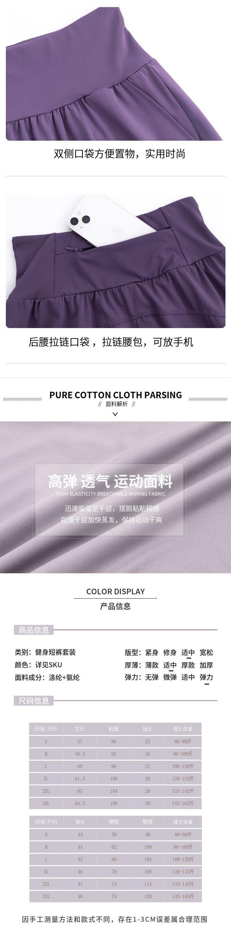 [two-piece set of back waist pockets] gray purple short sleeves + h22 purple shorts, [two-piece set of back wa...