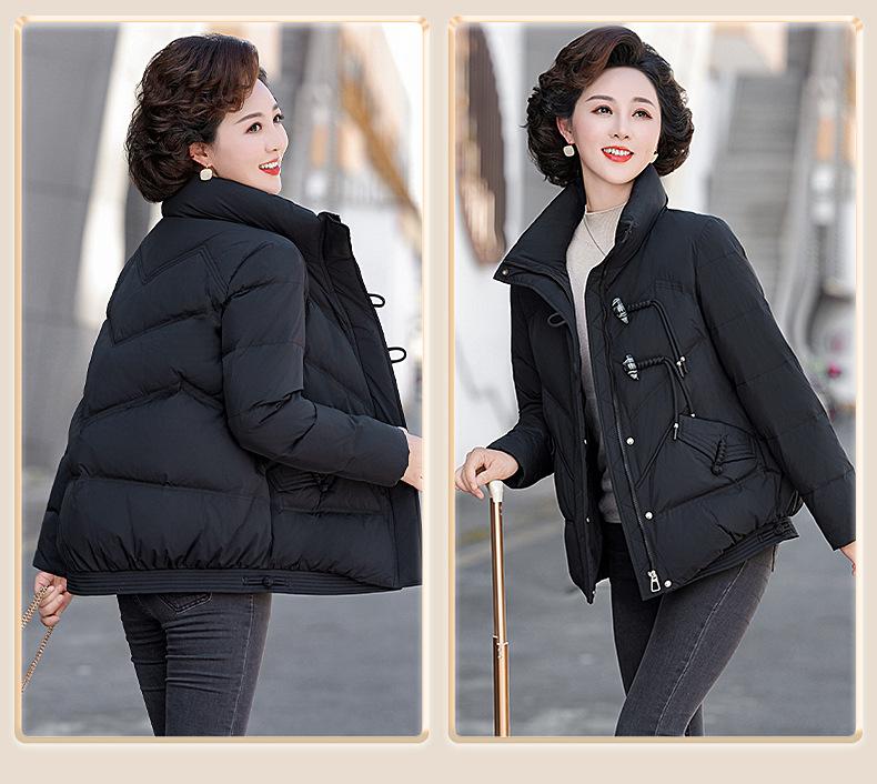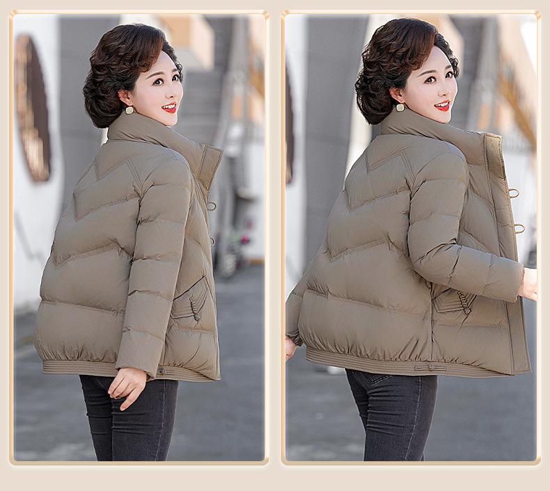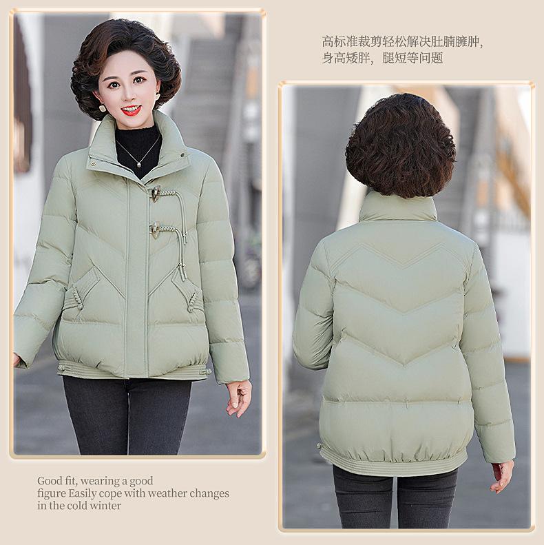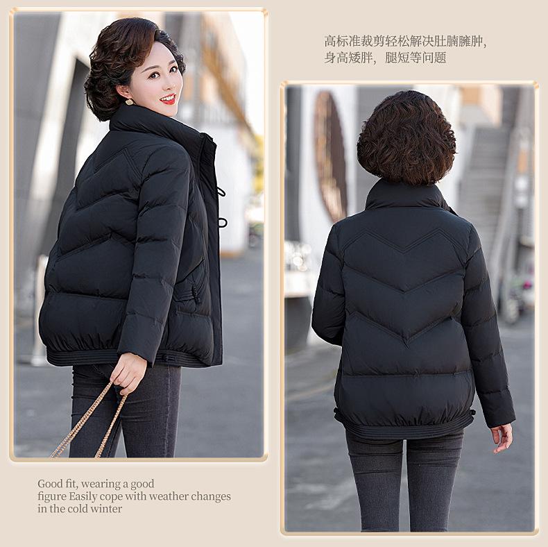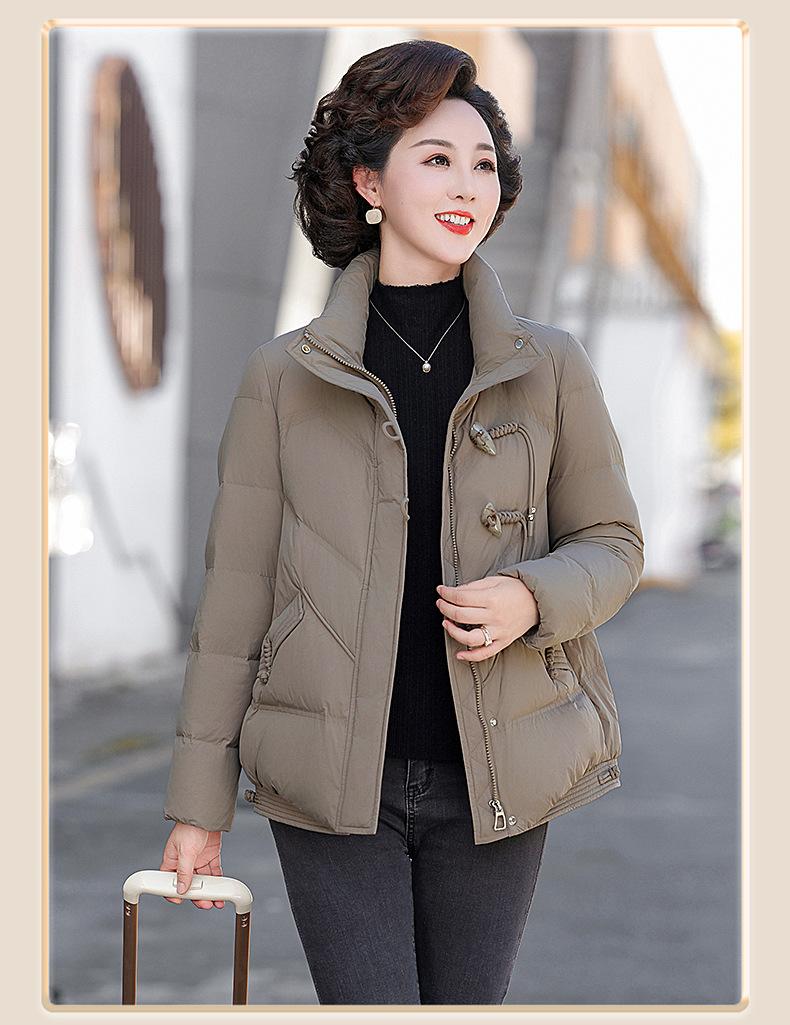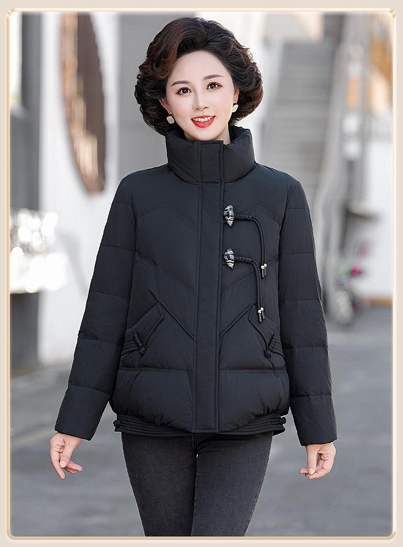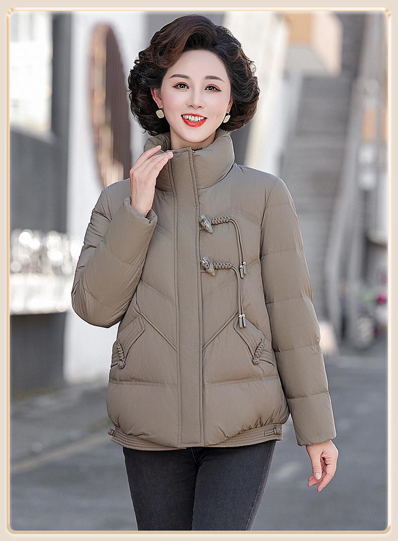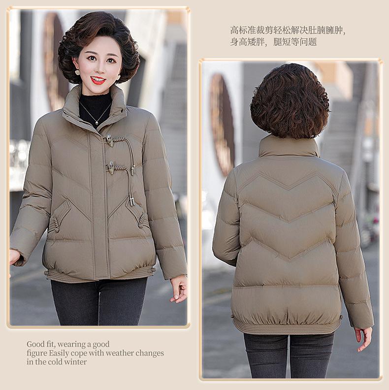 Abrigo corto de plumón para mujer de mediana edad y anciana con cuello mao de nieve, invierno, pequeño, nuevo, estilo occidental, para madre, otoño e invierno, mujer