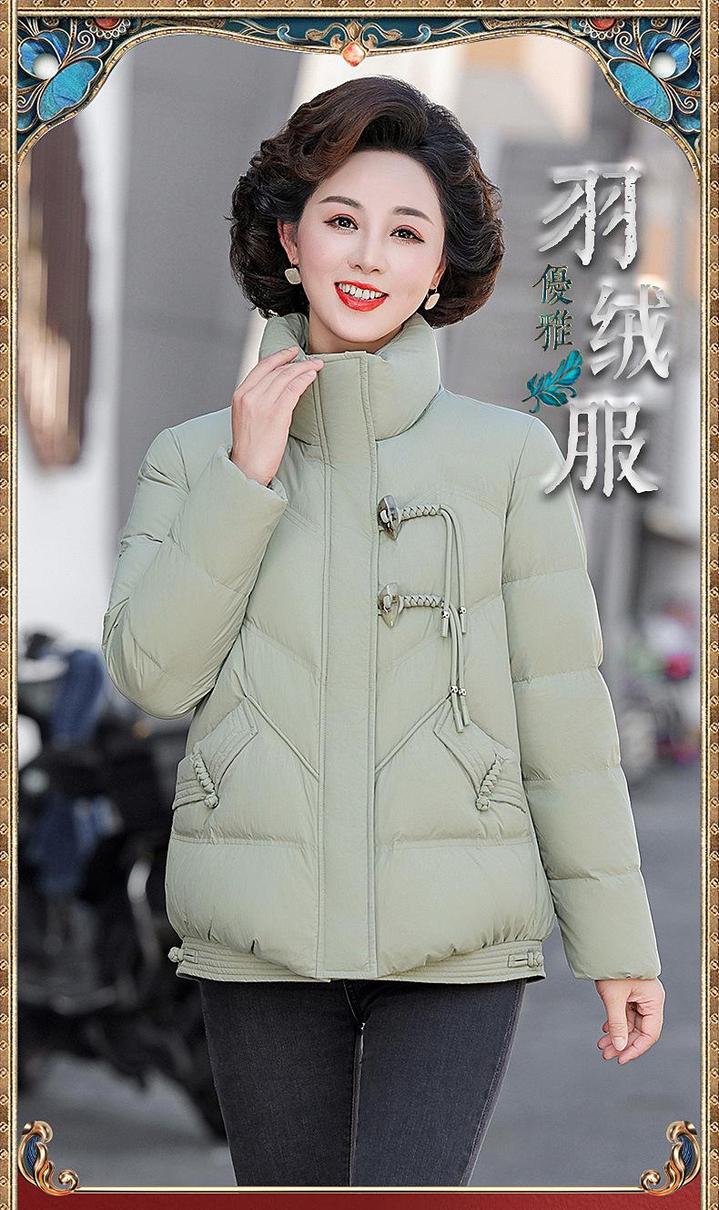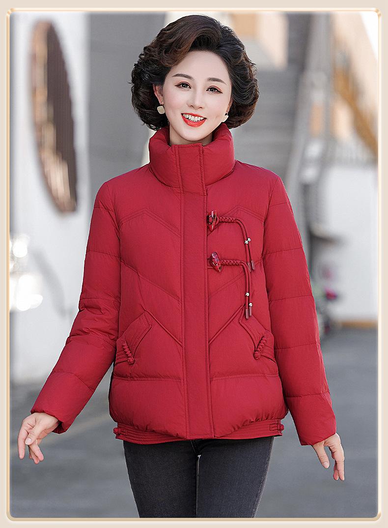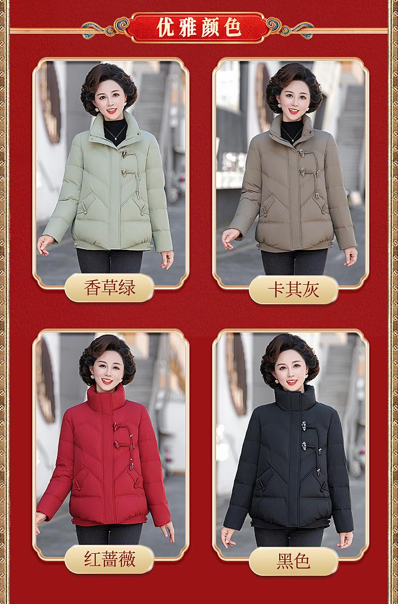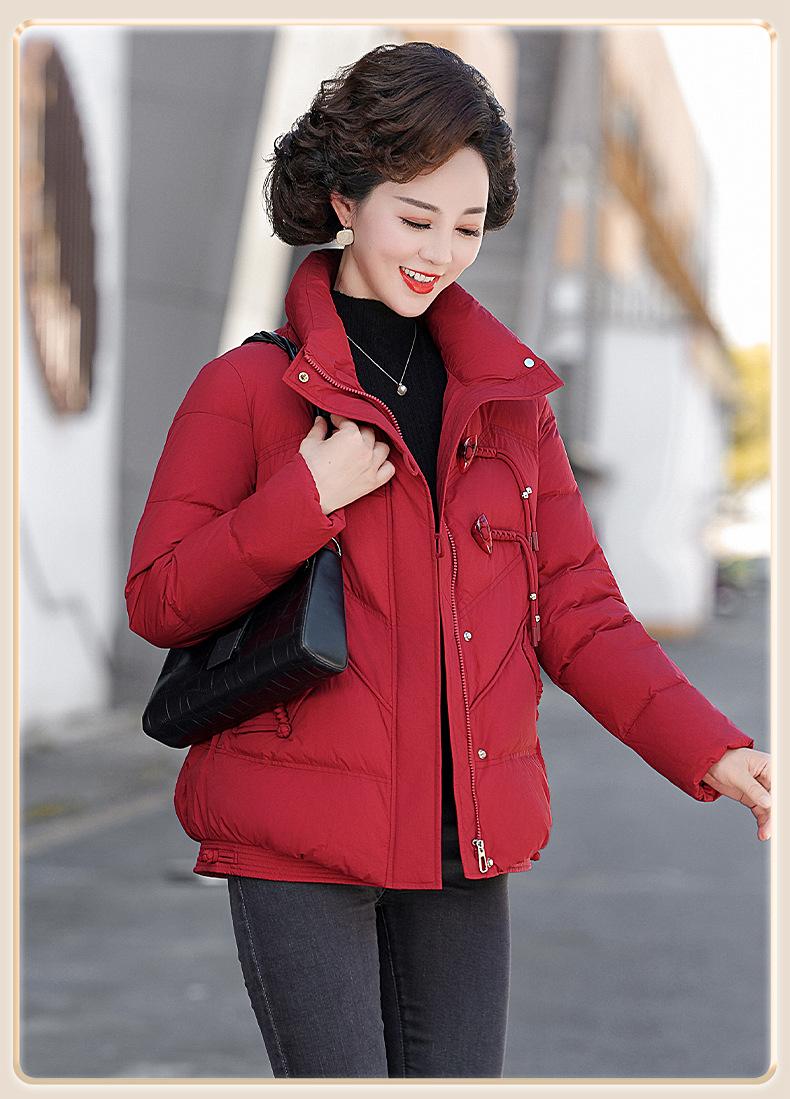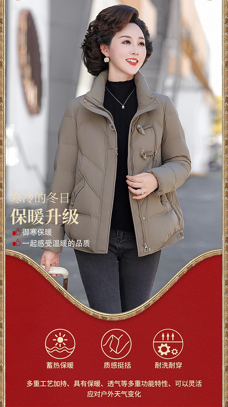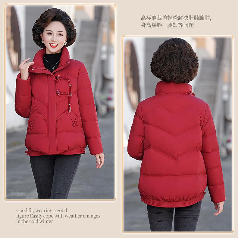 Abrigo corto de plumón para mujer de mediana edad y anciana con cuello mao de nieve, invierno, pequeño, nuevo, estilo occidental, para madre, otoño e invierno, mujer