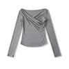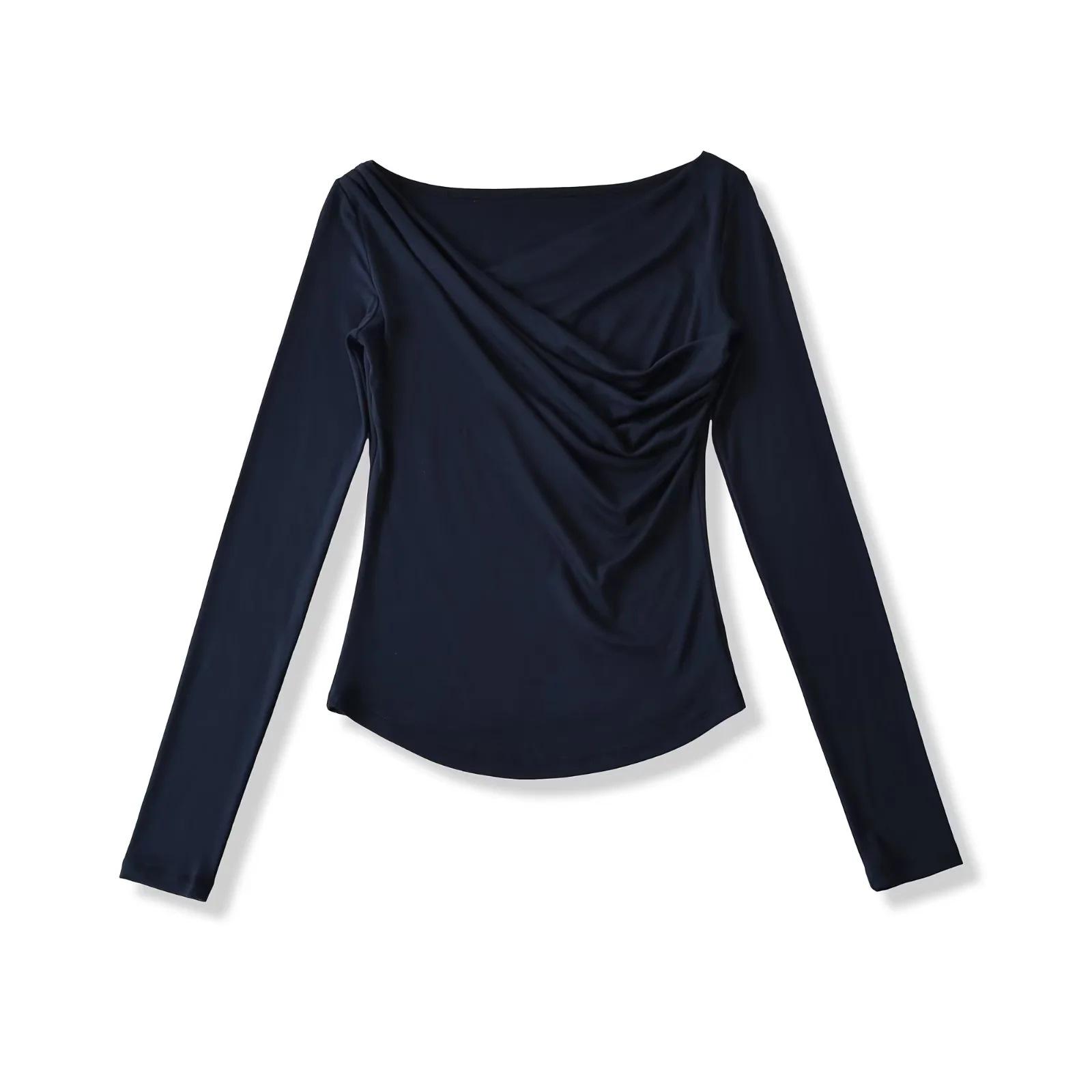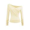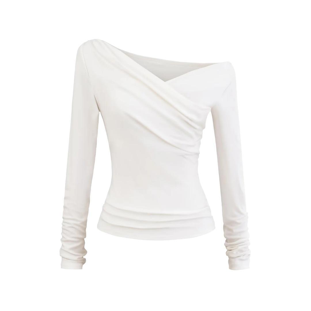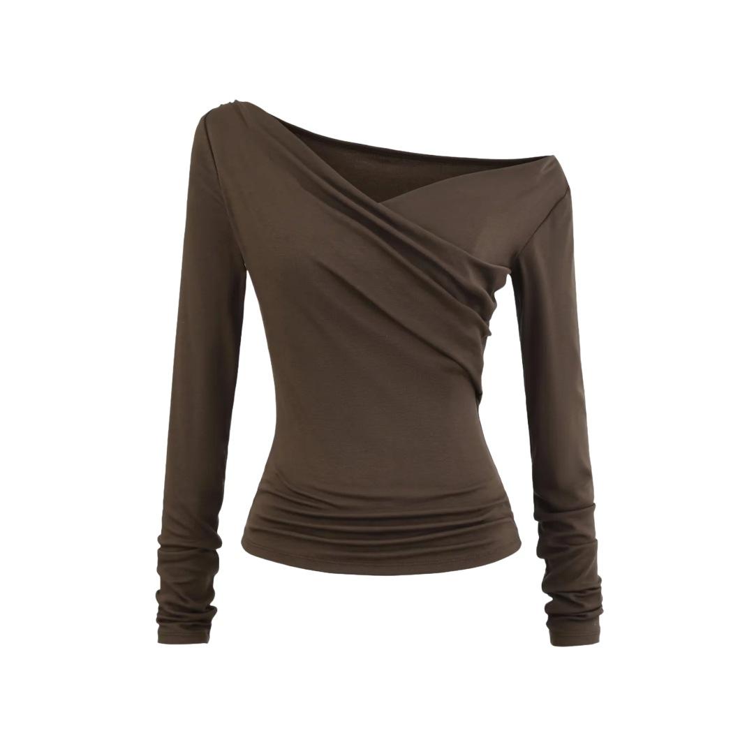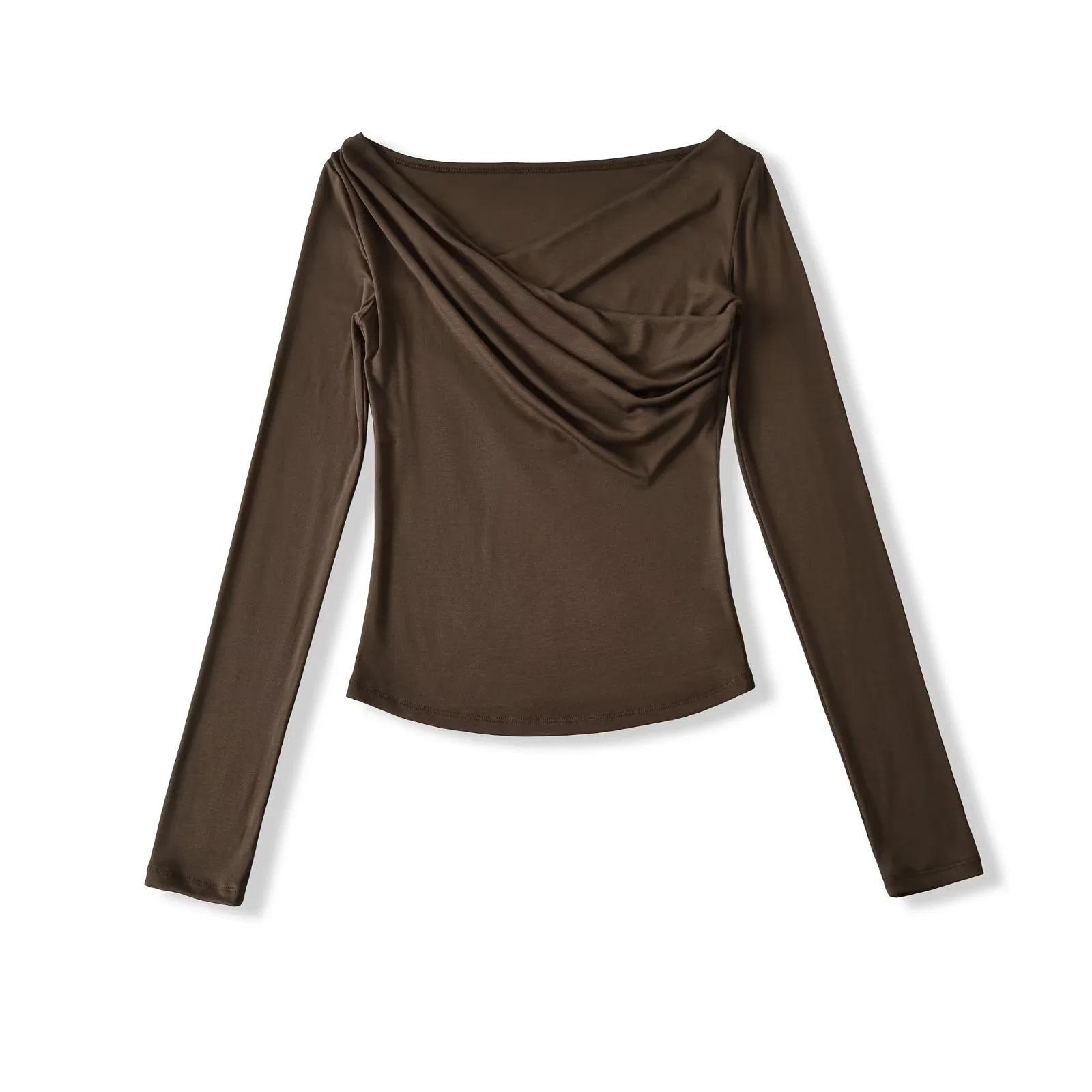 Diseño de Color Sólido Fruncido de un Hombro Camiseta Básica para Mujer Pura y Sexy Chica Caliente Sexy Fuera del Hombro Ajustada Manga Larga
