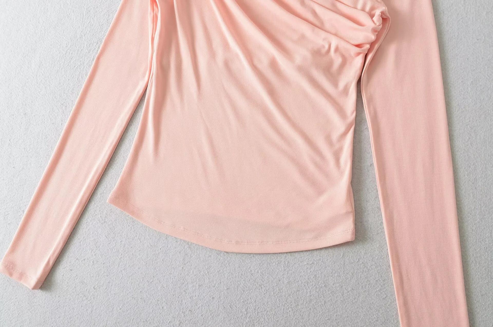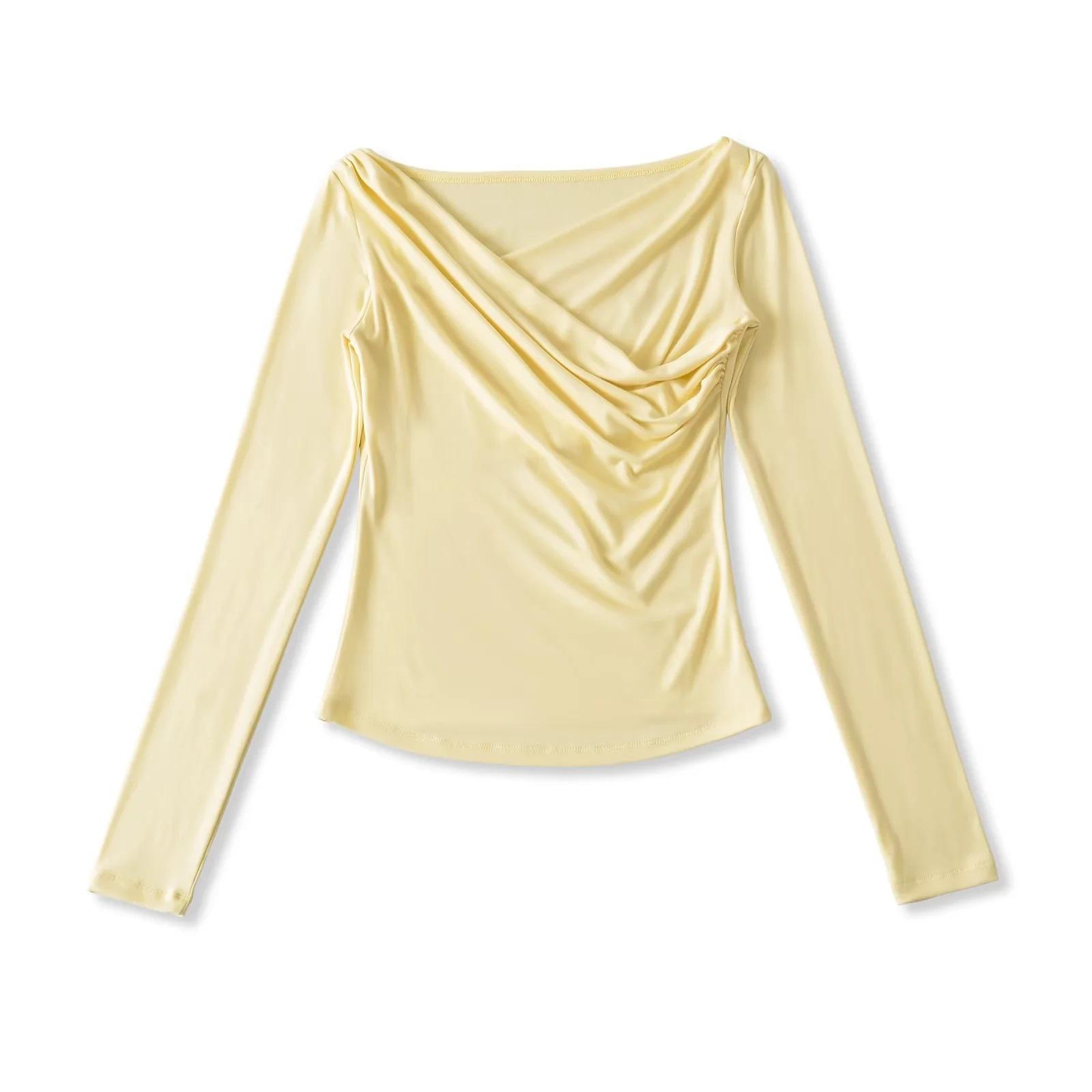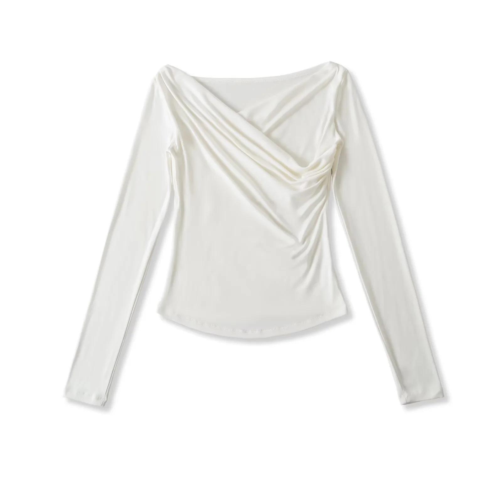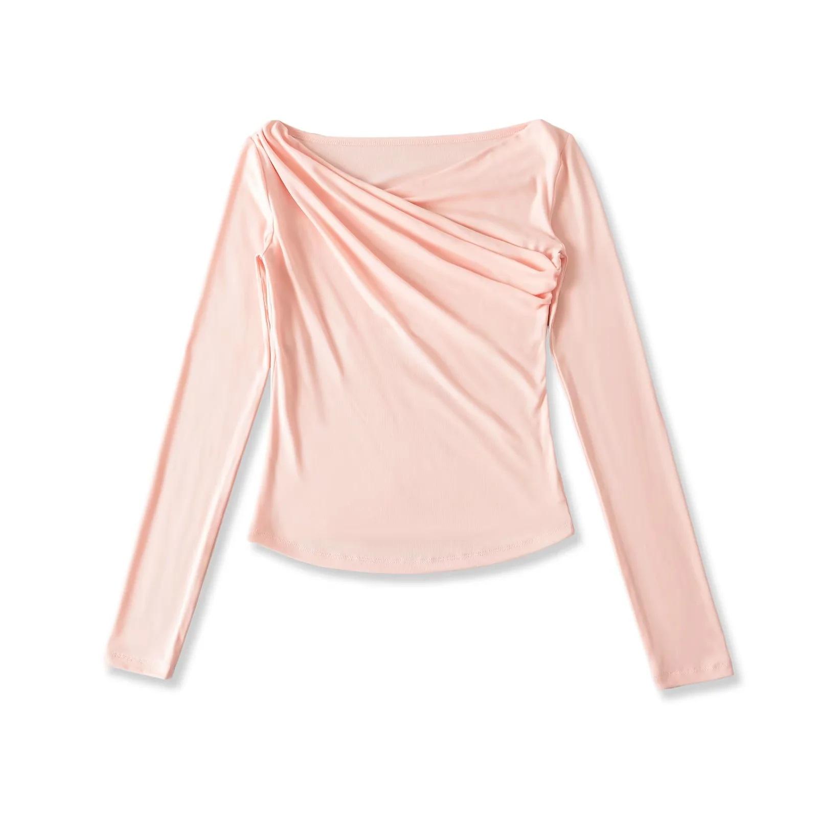 Diseño de Color Sólido Fruncido de un Hombro Camiseta Básica para Mujer Pura y Sexy Chica Caliente Sexy Fuera del Hombro Ajustada Manga Larga