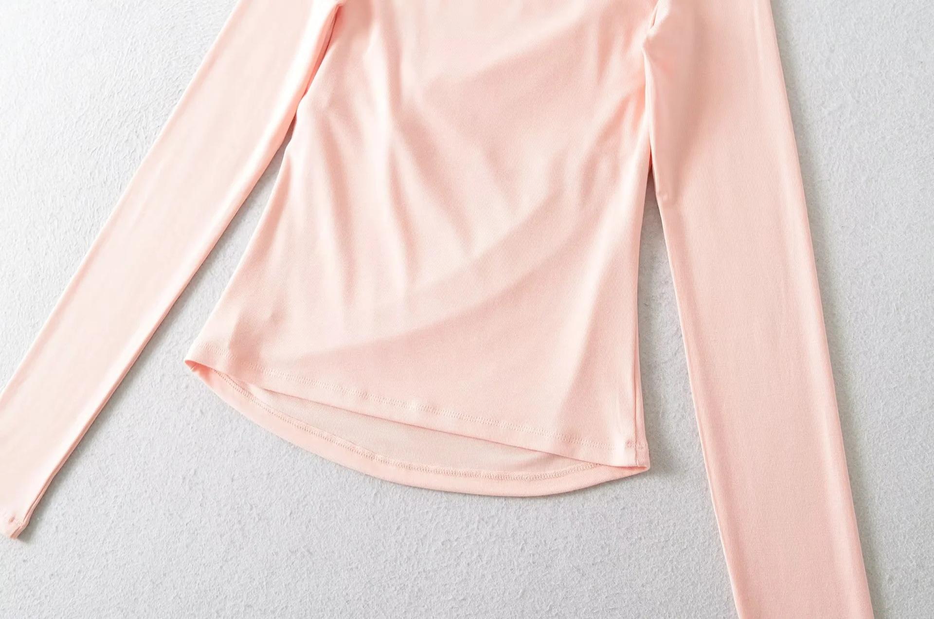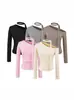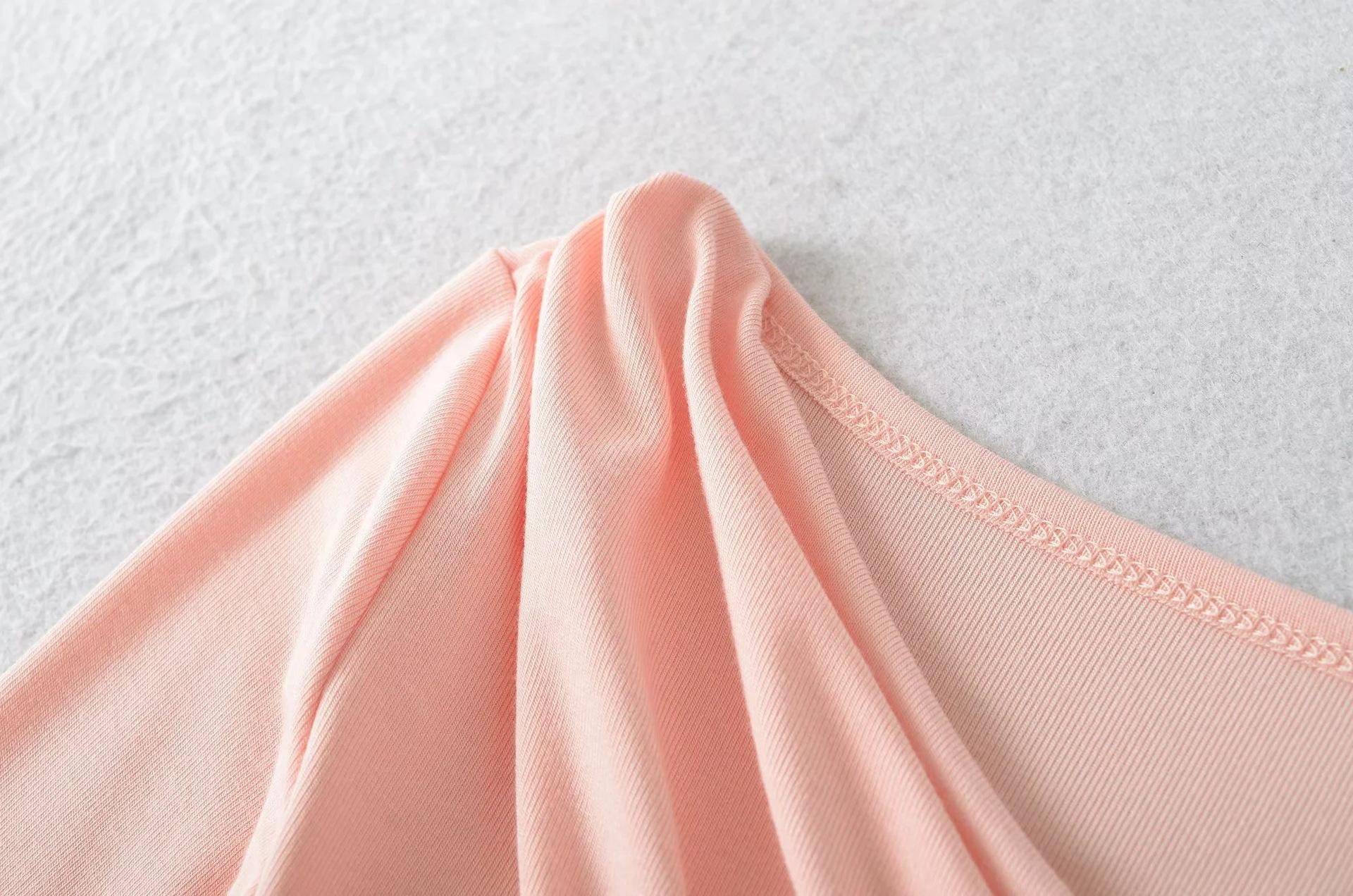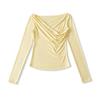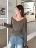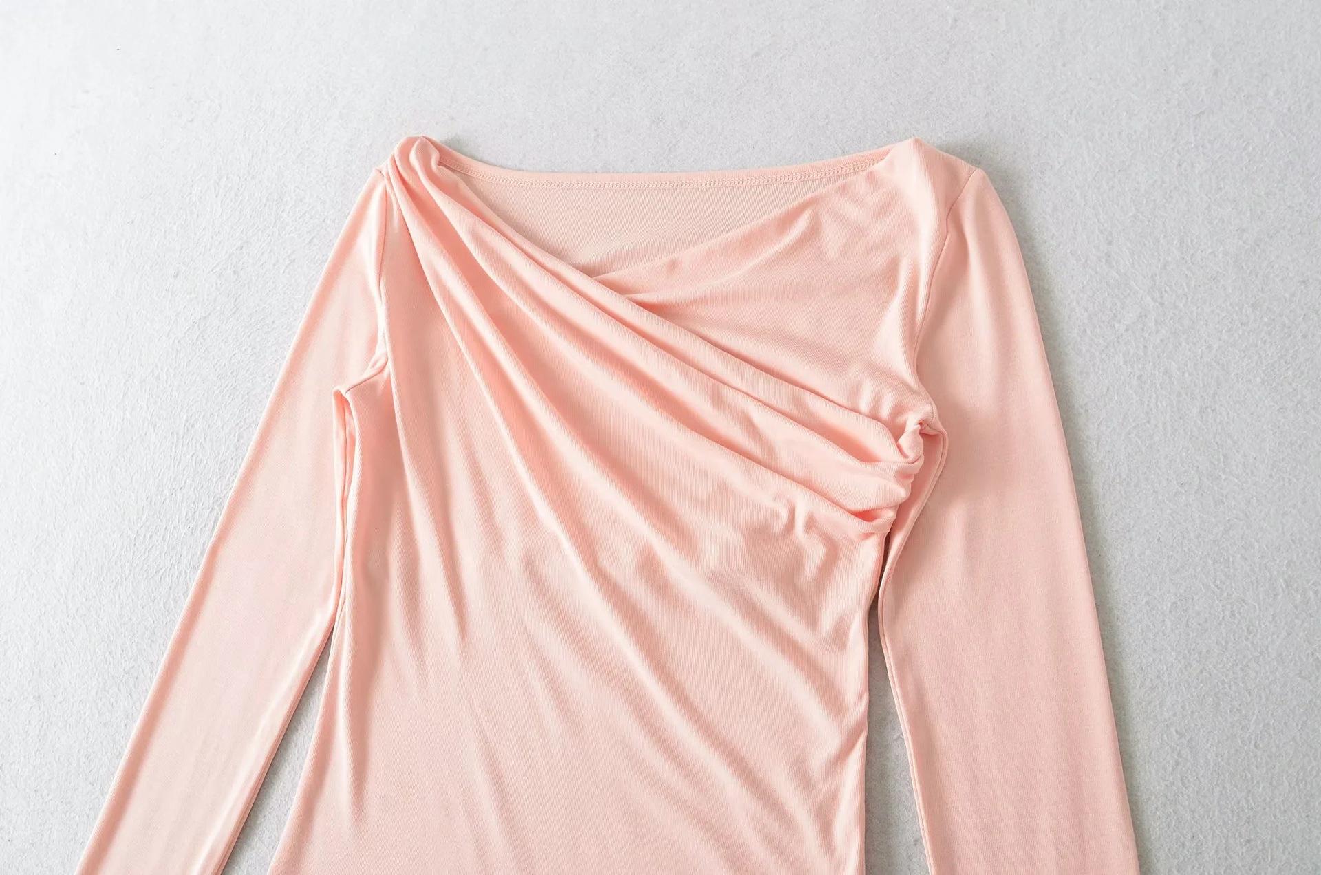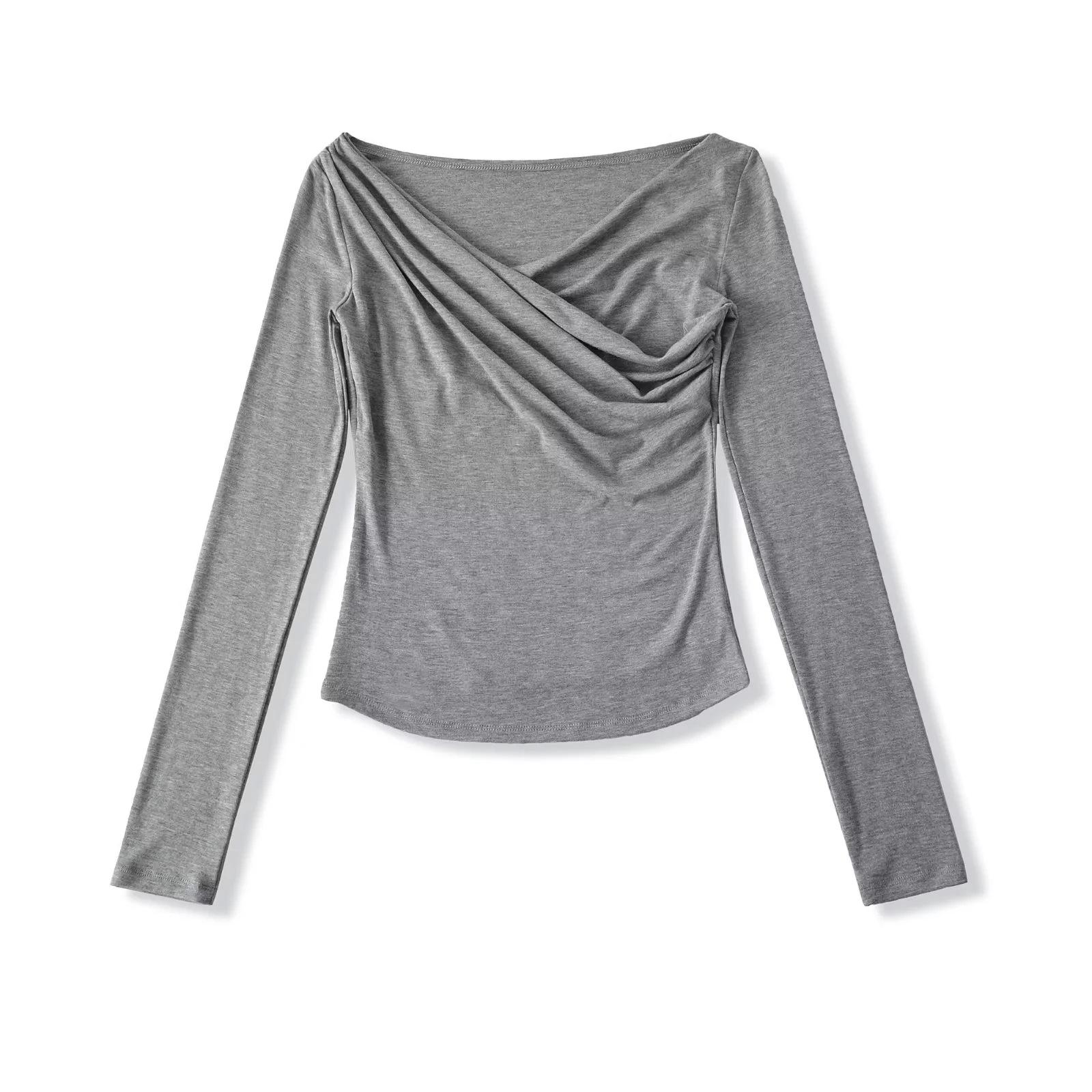 Diseño de Color Sólido Fruncido de un Hombro Camiseta Básica para Mujer Pura y Sexy Chica Caliente Sexy Fuera del Hombro Ajustada Manga Larga