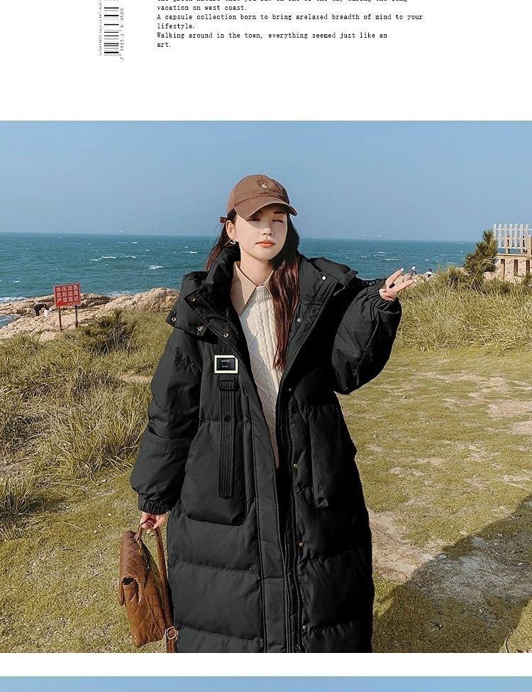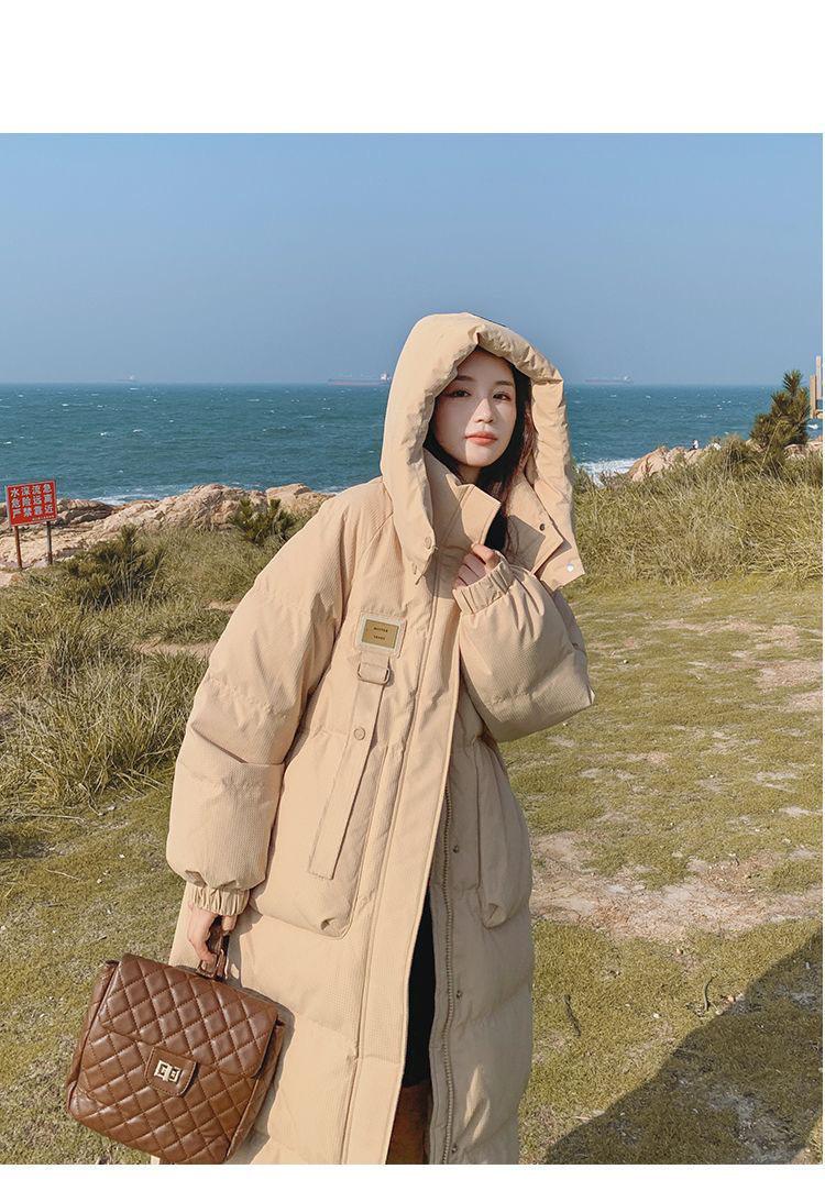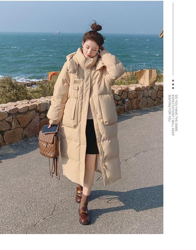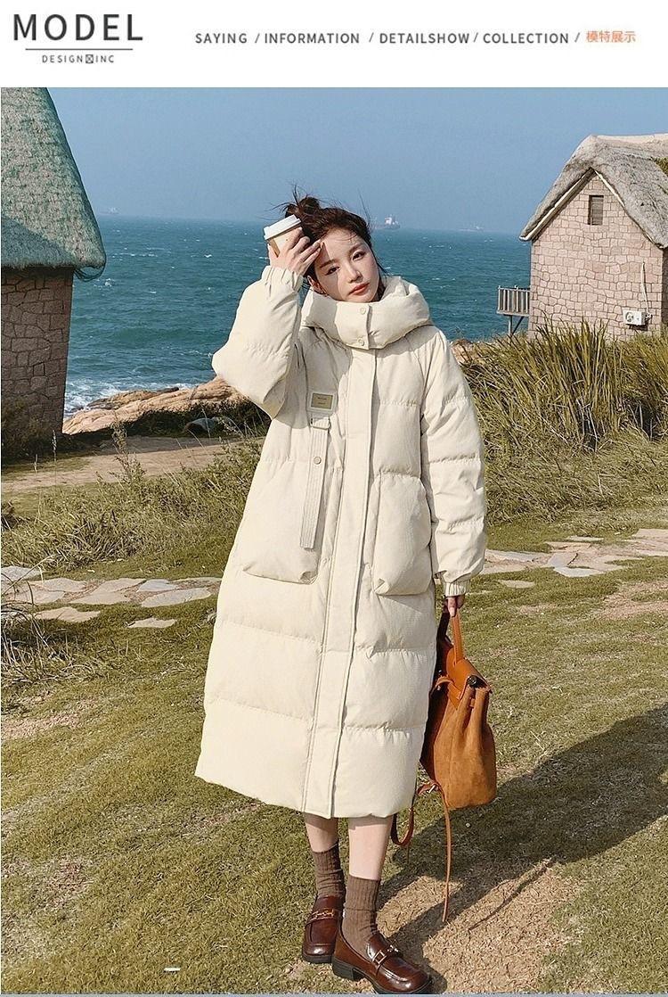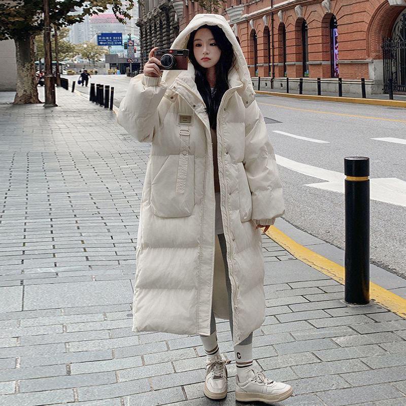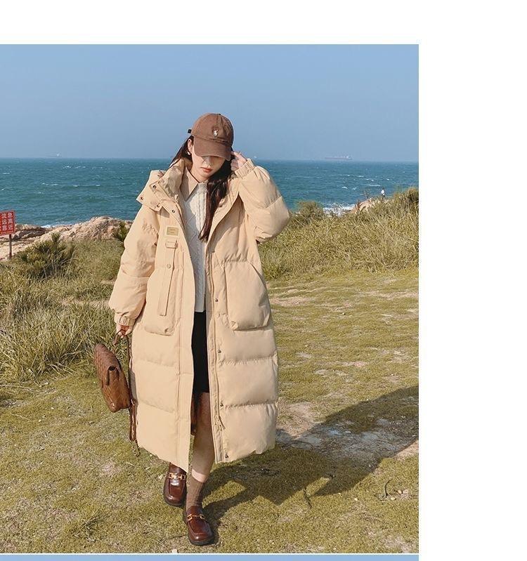 Chamarra de Algodón Acolchada de Pluma para Mujer Fuera de Temporada, Largo Medio Invierno 2024 Nuevo Acolchada Hasta la Rodilla con Capucha