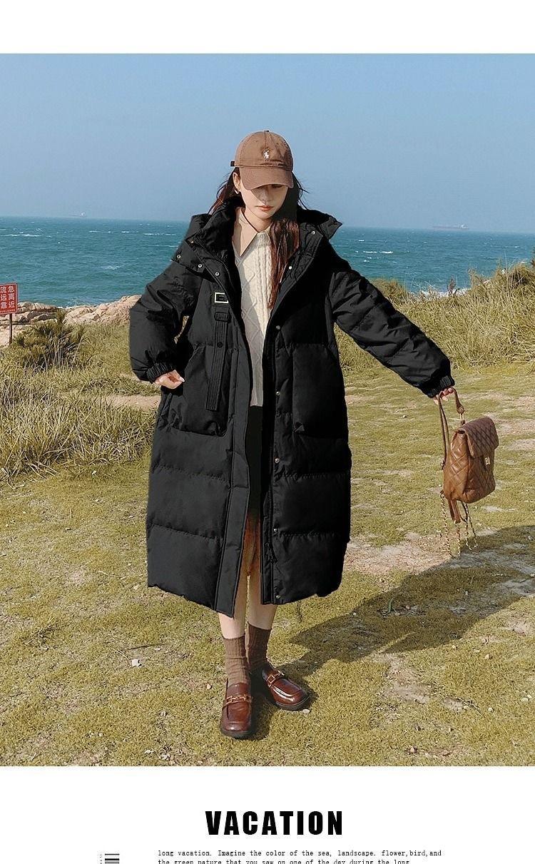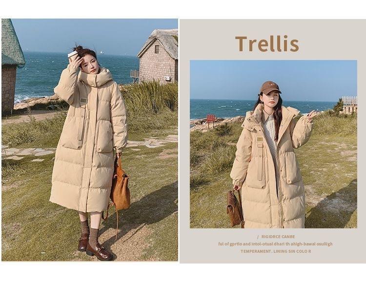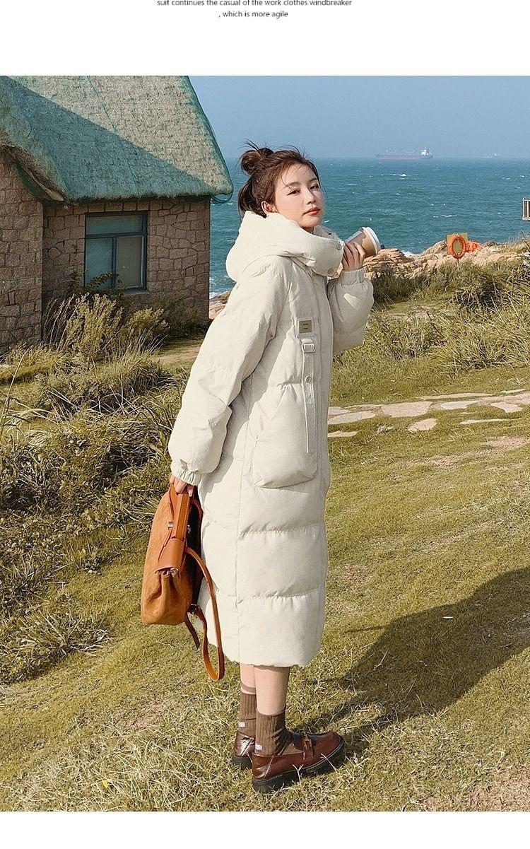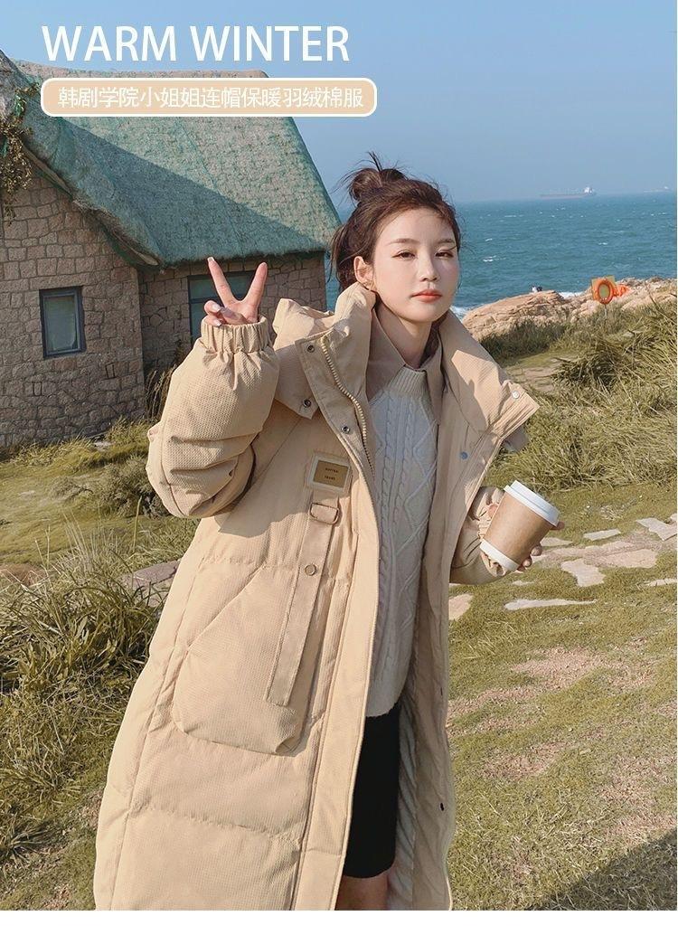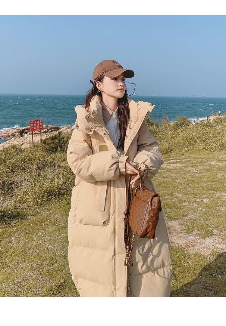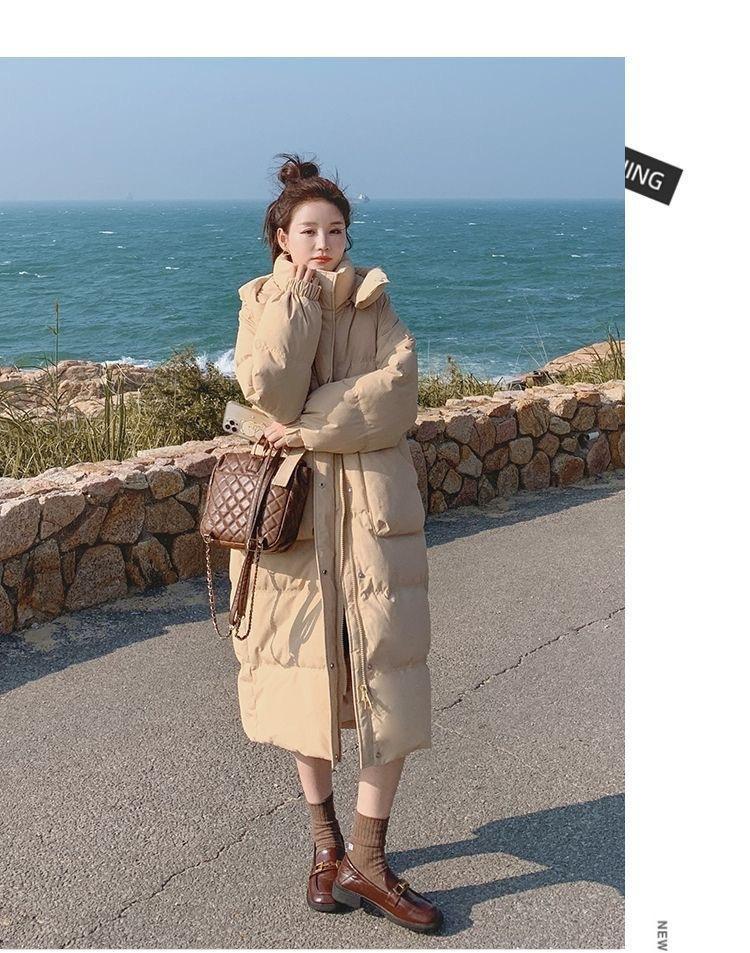 Chamarra de Algodón Acolchada de Pluma para Mujer Fuera de Temporada, Largo Medio Invierno 2024 Nuevo Acolchada Hasta la Rodilla con Capucha