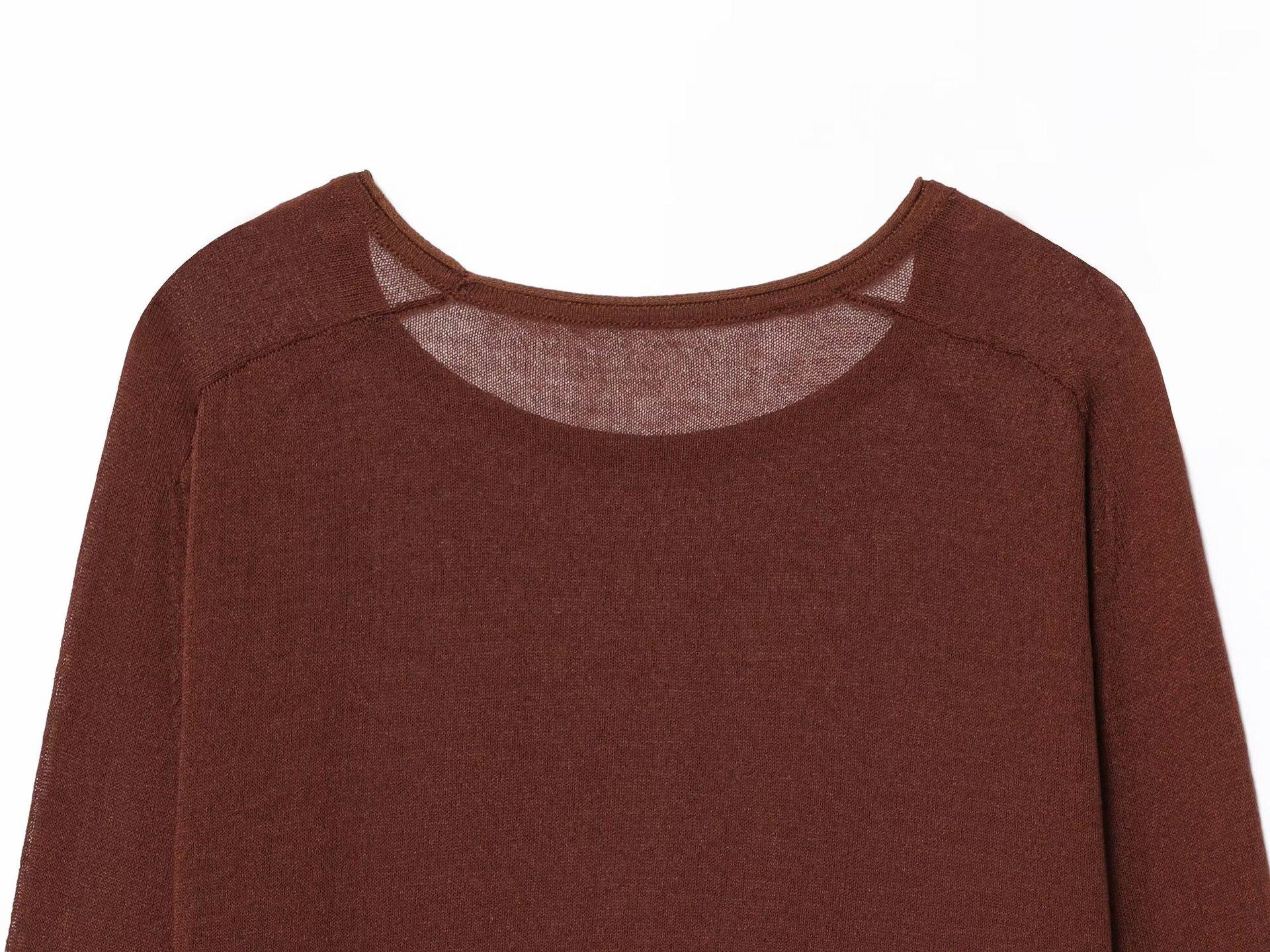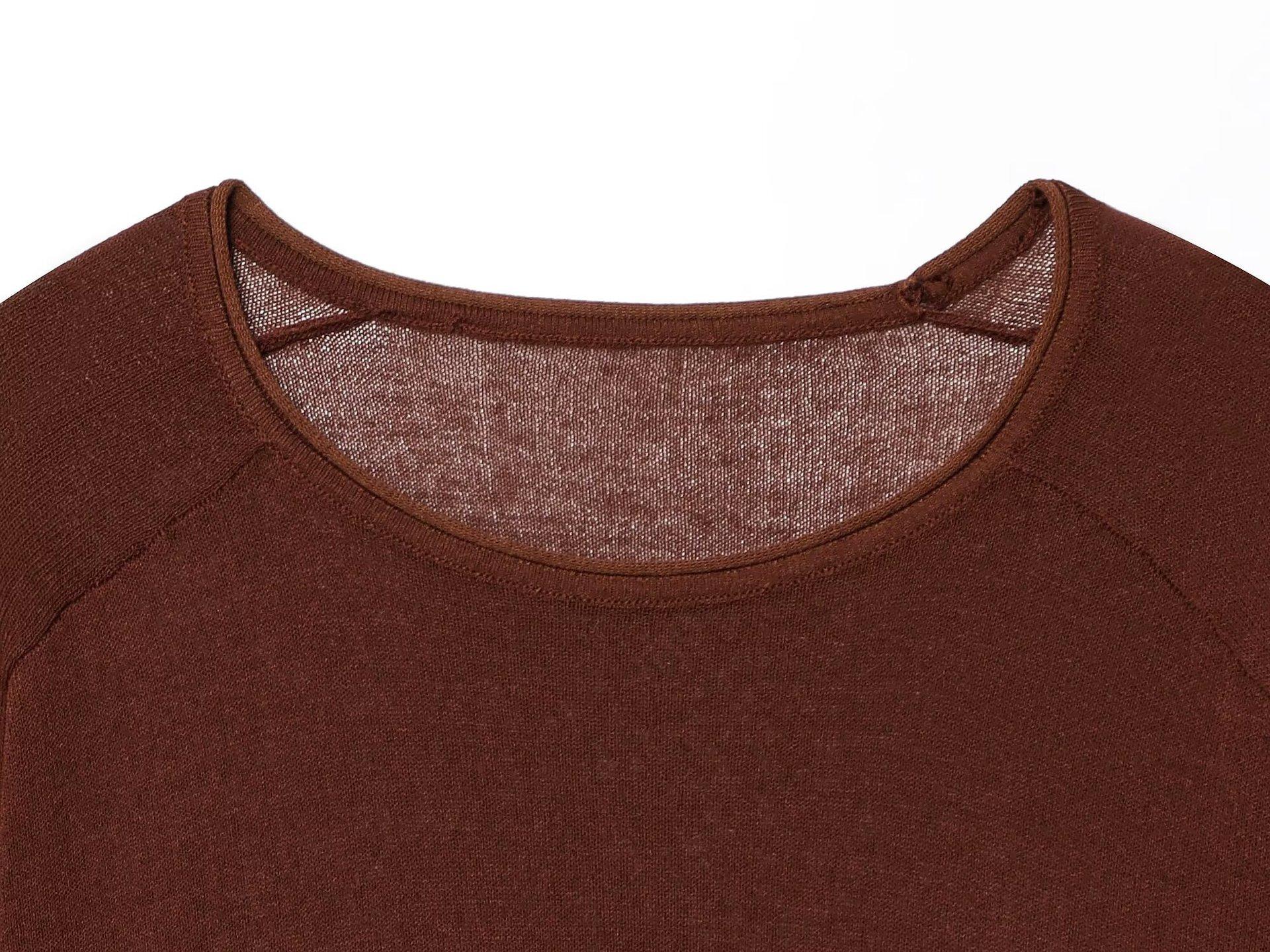 Suéter Top de Fondo Simple de Cuello Redondo y Manga Larga Popular de Lino Mezclado Transfronterizo Europeo y Americano de Aliexpress