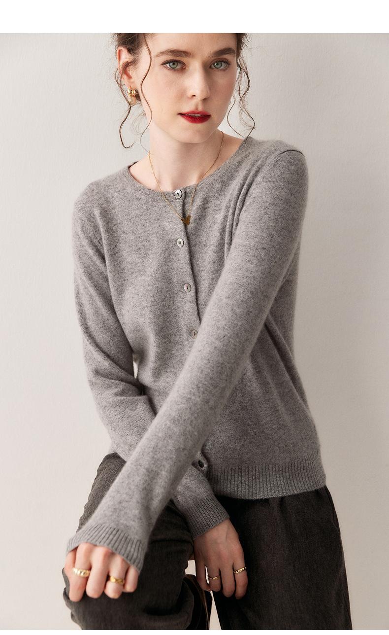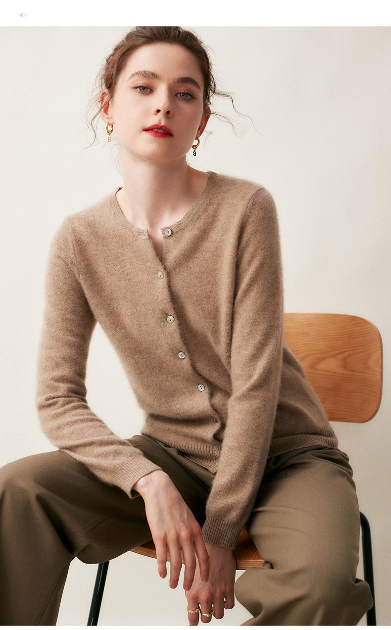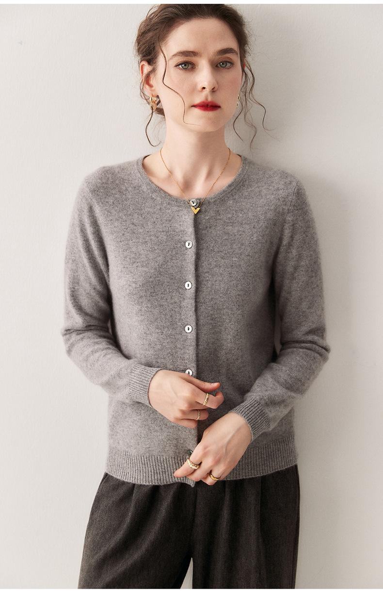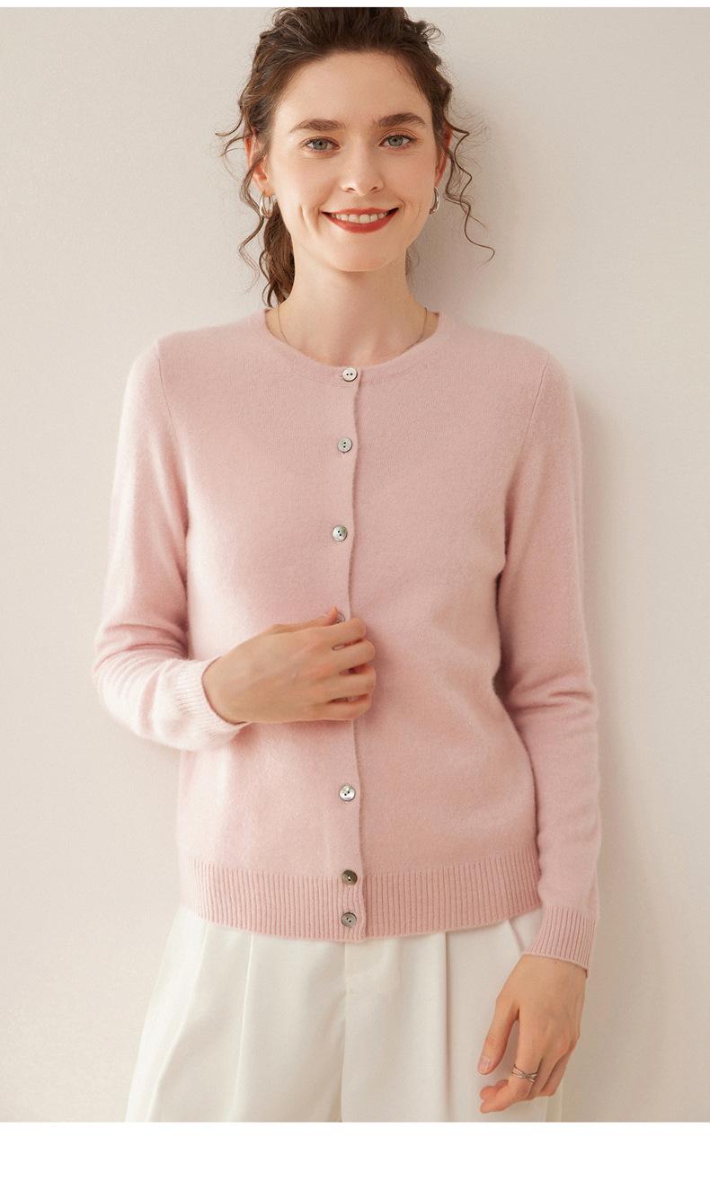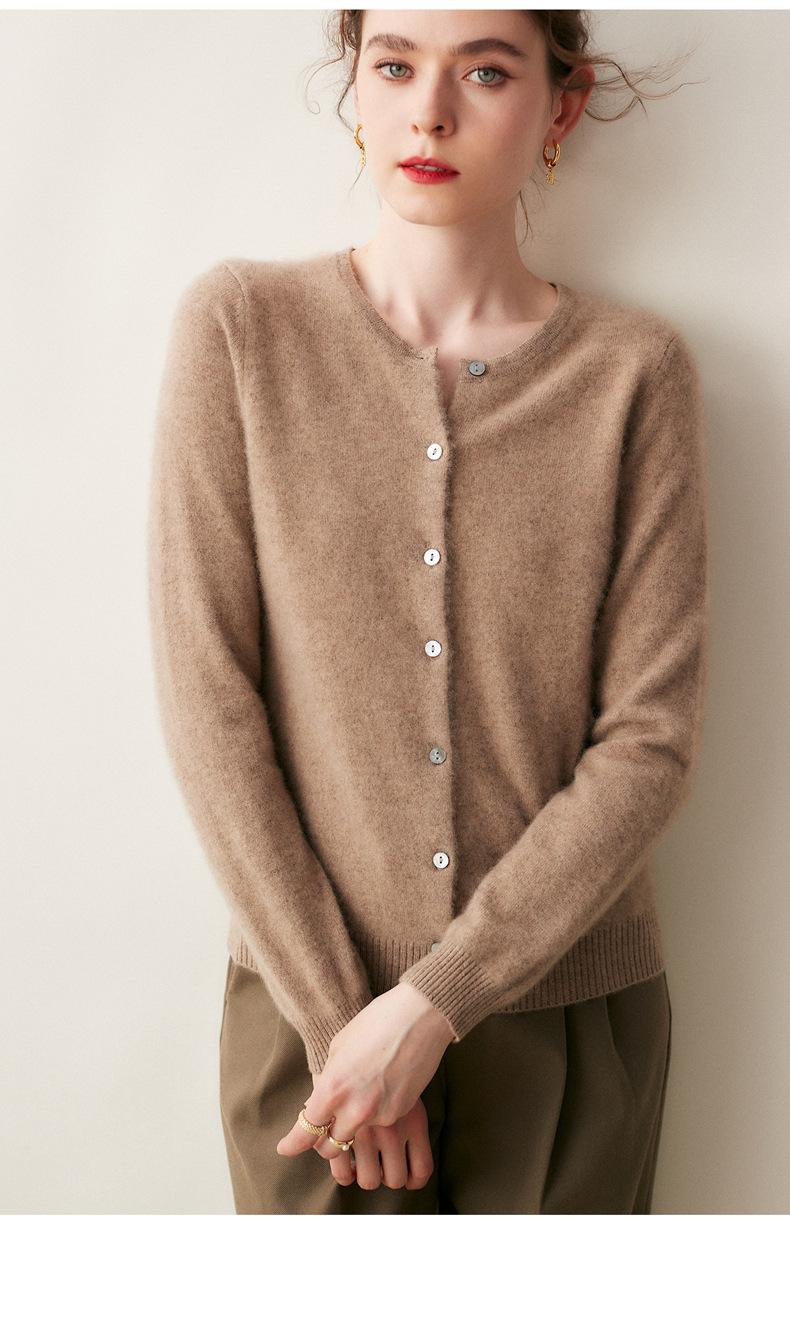 Cárdigan de Cachemira Versátil Liso de Color Sólido con Cuello Redondo Estilo Coreano Lana Temperamento Suelto Sencillo Abrigo Suéter