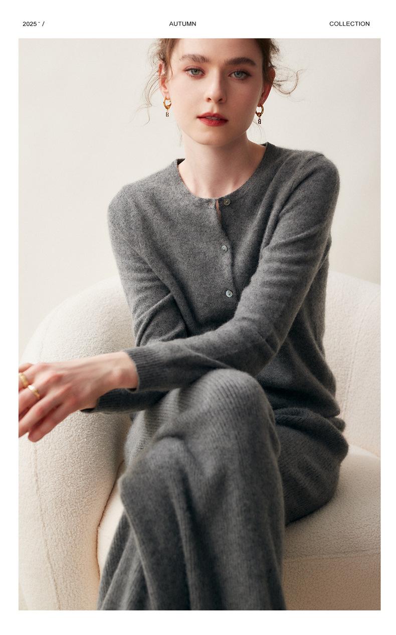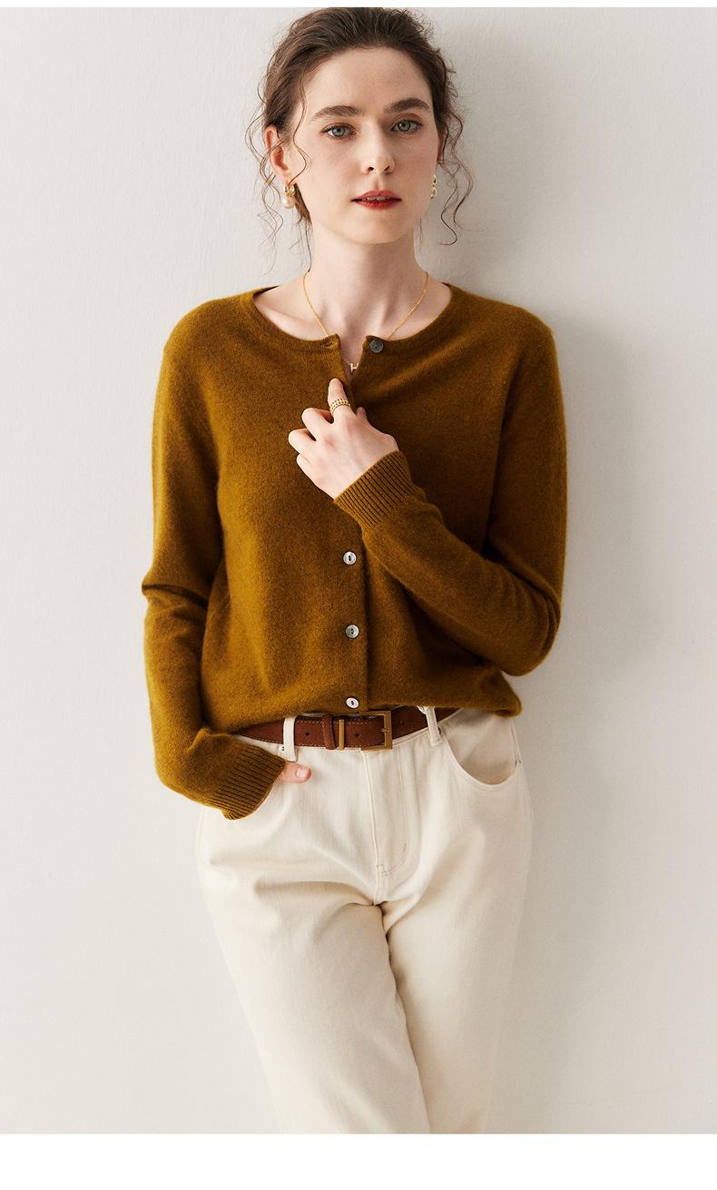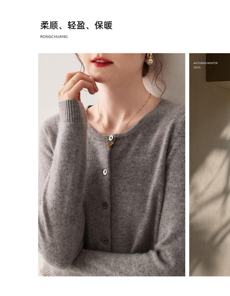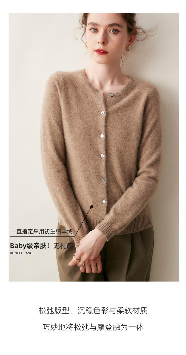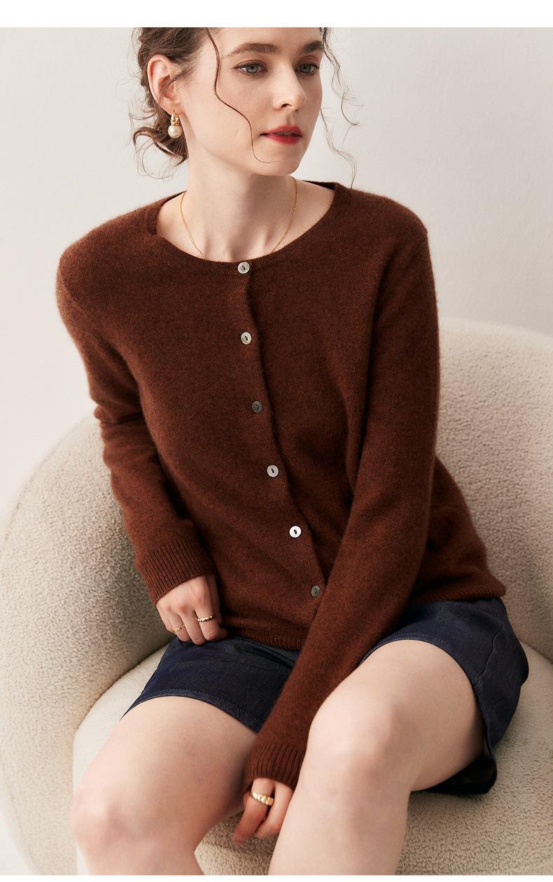 Cárdigan de Cachemira Versátil Liso de Color Sólido con Cuello Redondo Estilo Coreano Lana Temperamento Suelto Sencillo Abrigo Suéter
