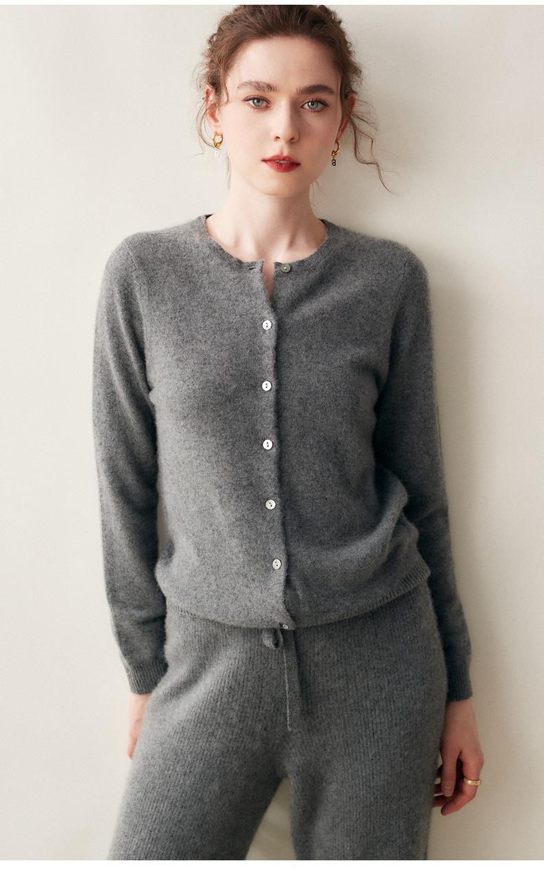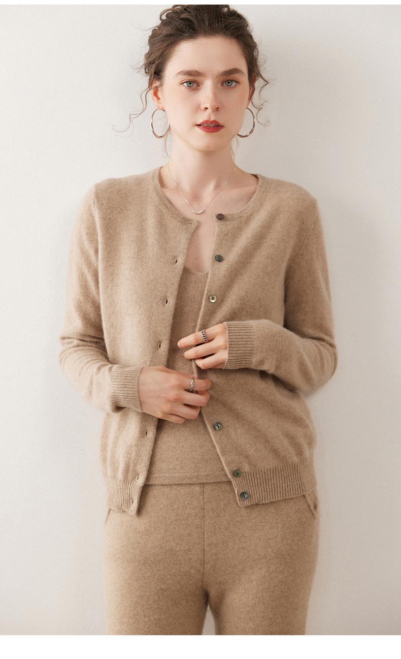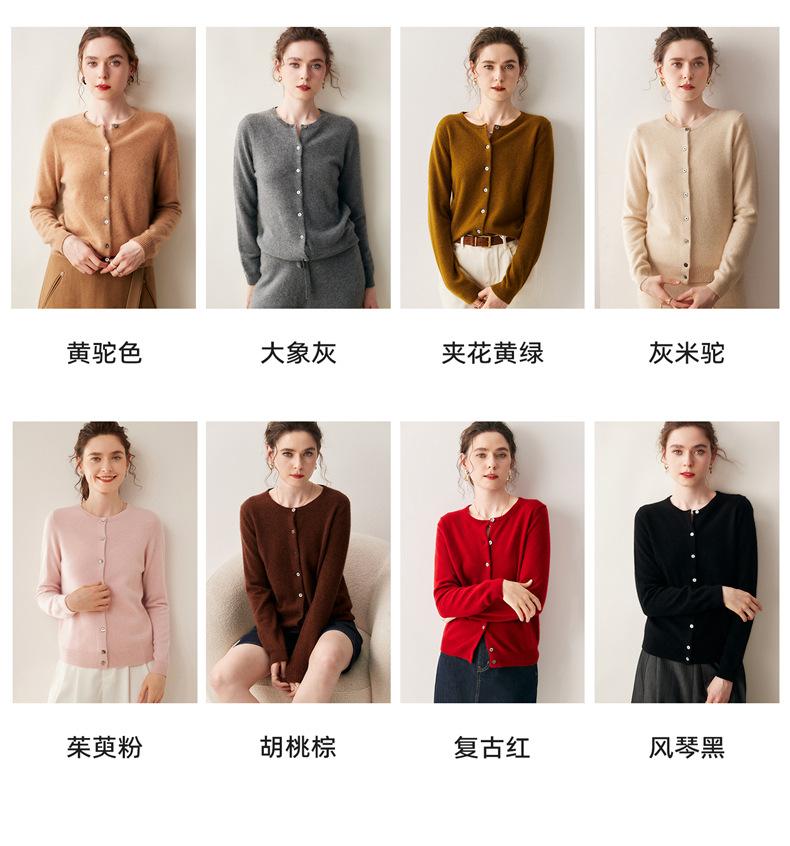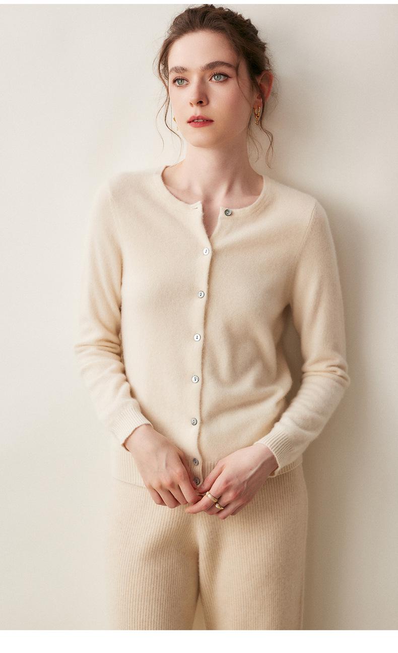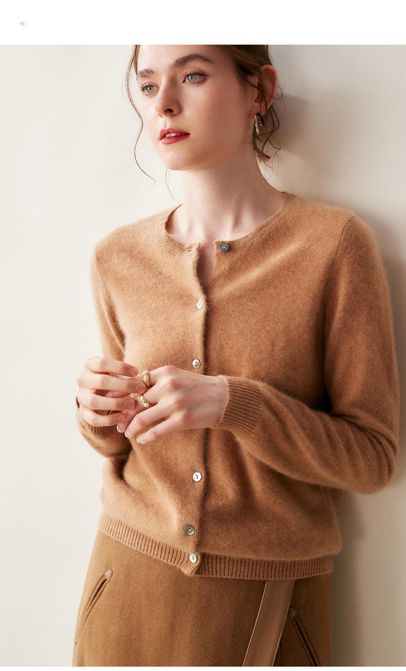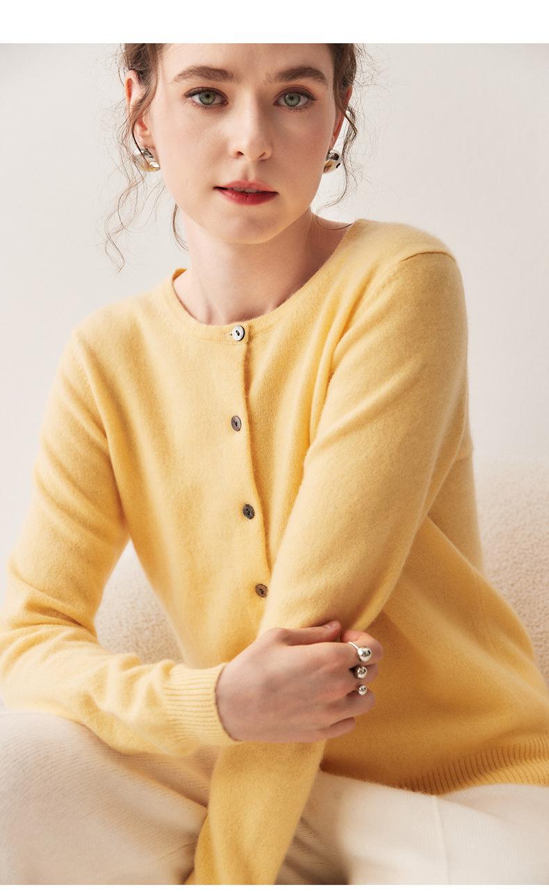 Cárdigan de Cachemira Versátil Liso de Color Sólido con Cuello Redondo Estilo Coreano Lana Temperamento Suelto Sencillo Abrigo Suéter