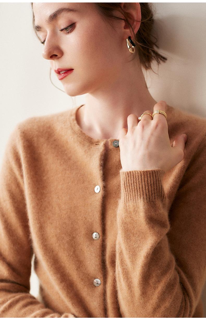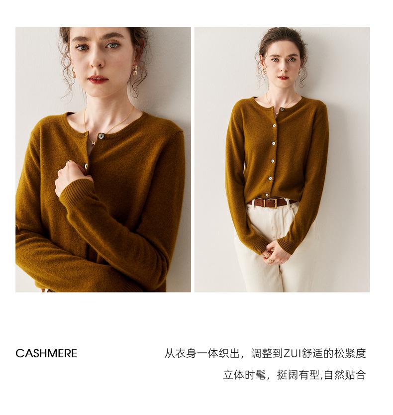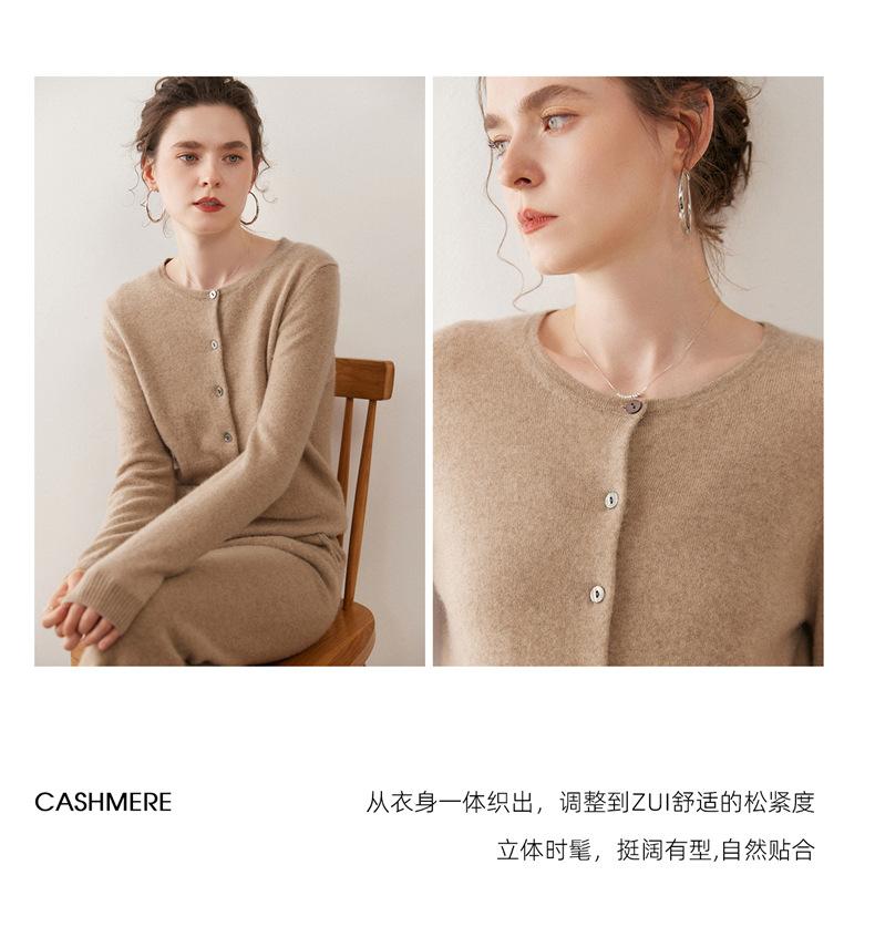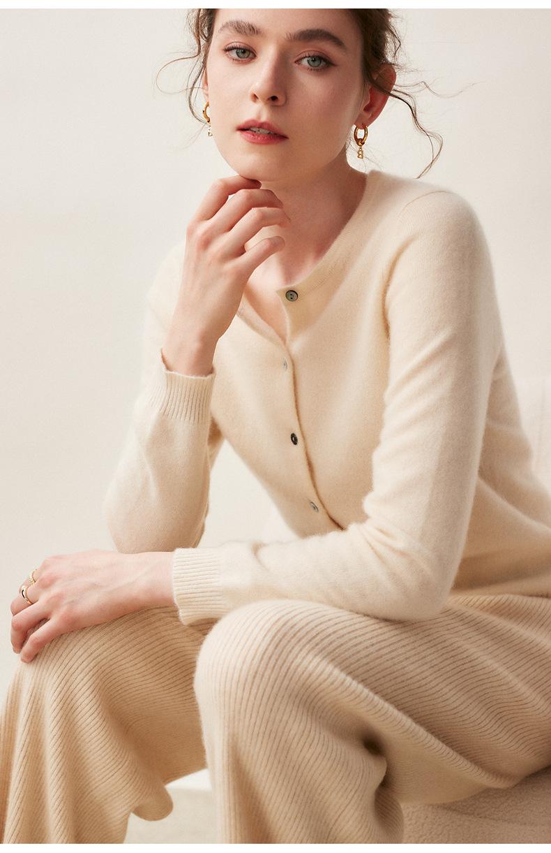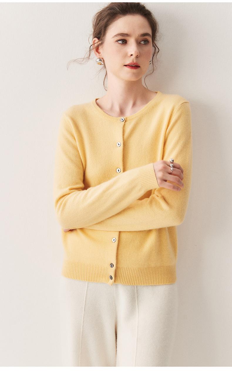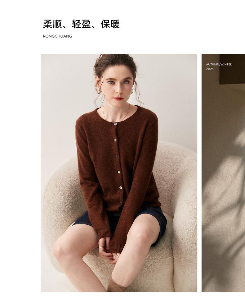 Cárdigan de Cachemira Versátil Liso de Color Sólido con Cuello Redondo Estilo Coreano Lana Temperamento Suelto Sencillo Abrigo Suéter
