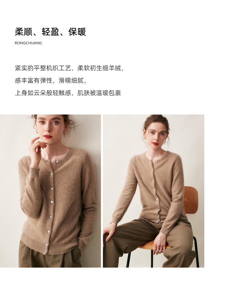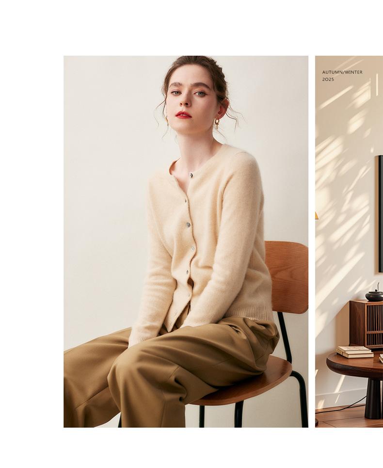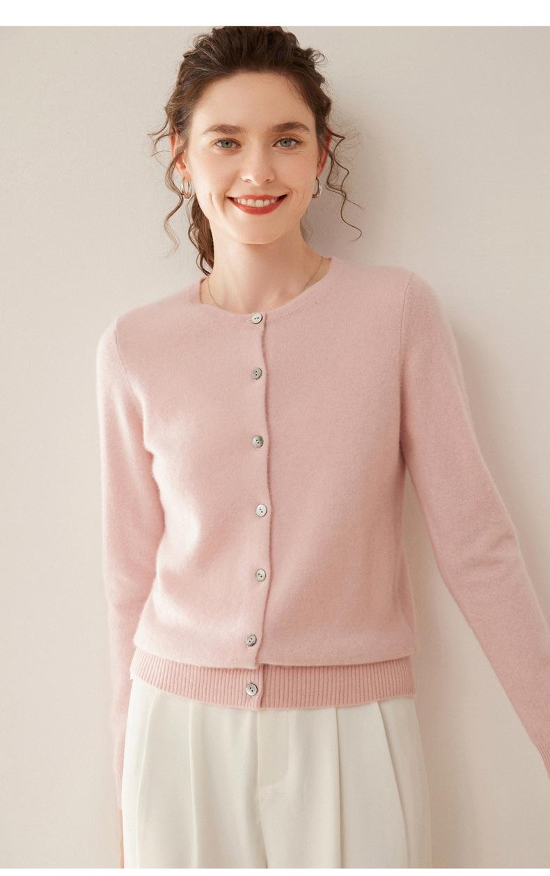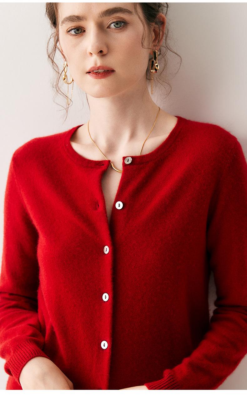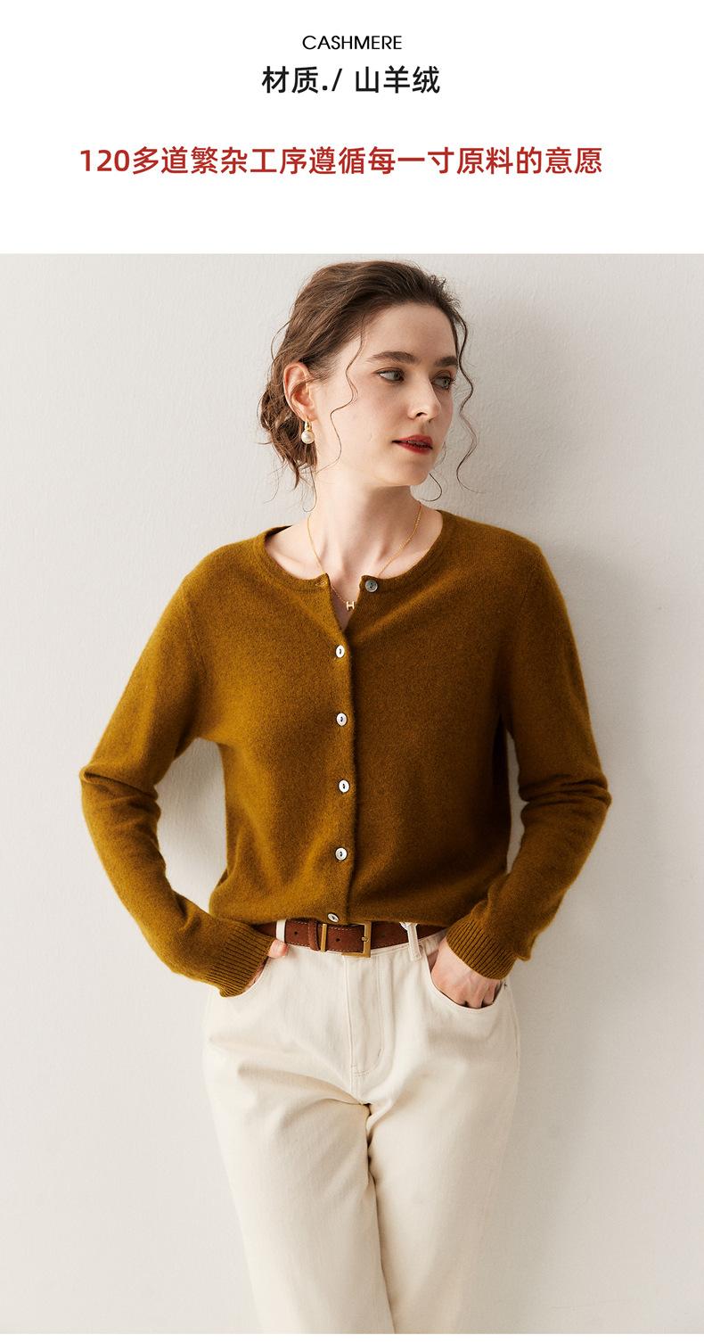 Cárdigan de Cachemira Versátil Liso de Color Sólido con Cuello Redondo Estilo Coreano Lana Temperamento Suelto Sencillo Abrigo Suéter