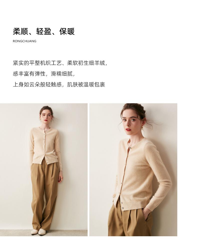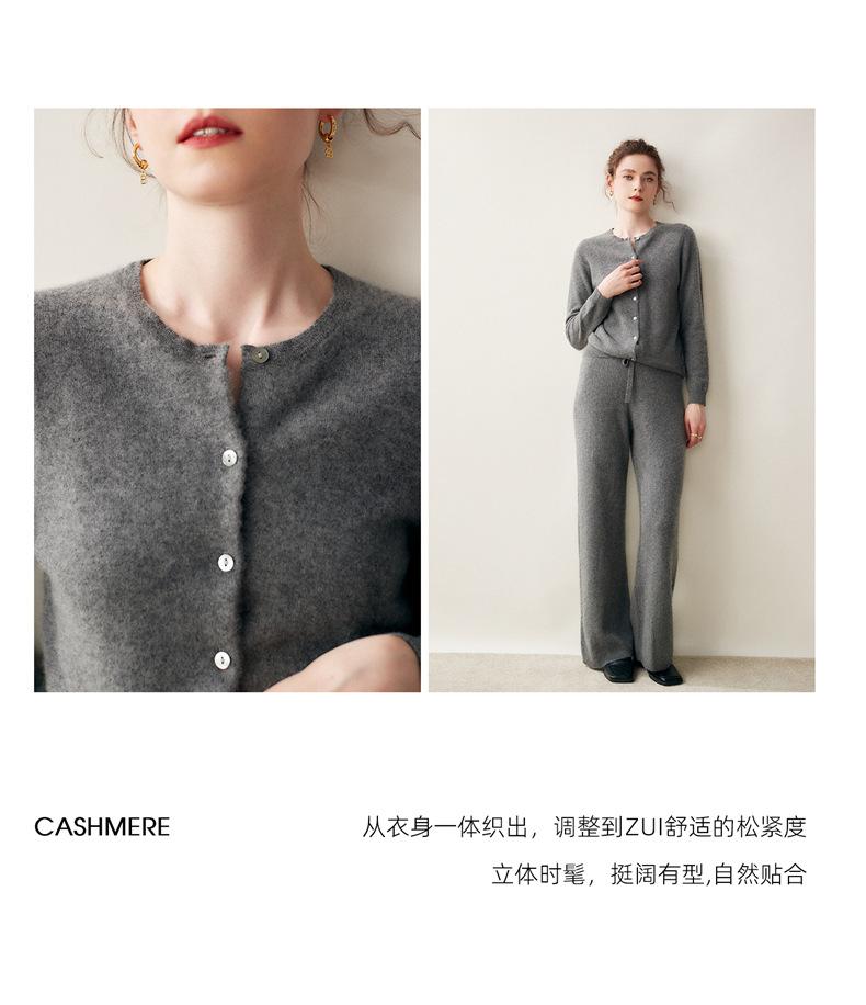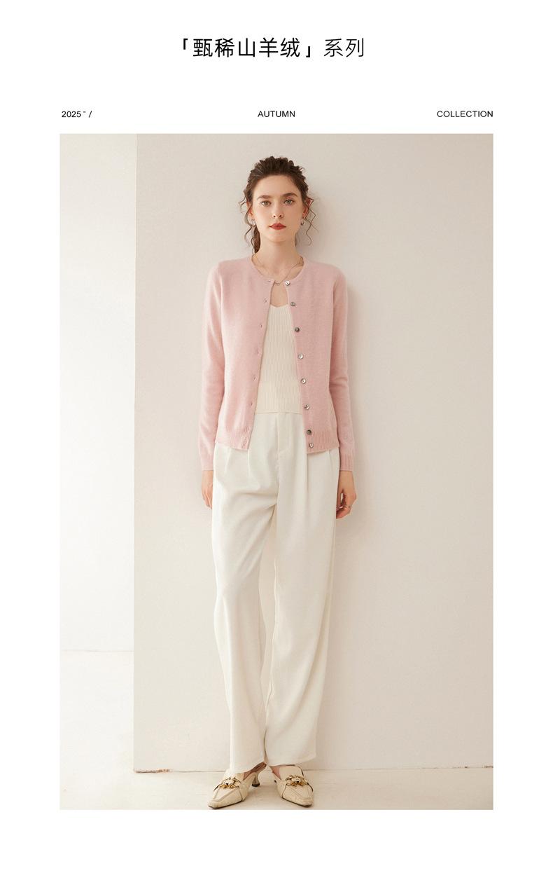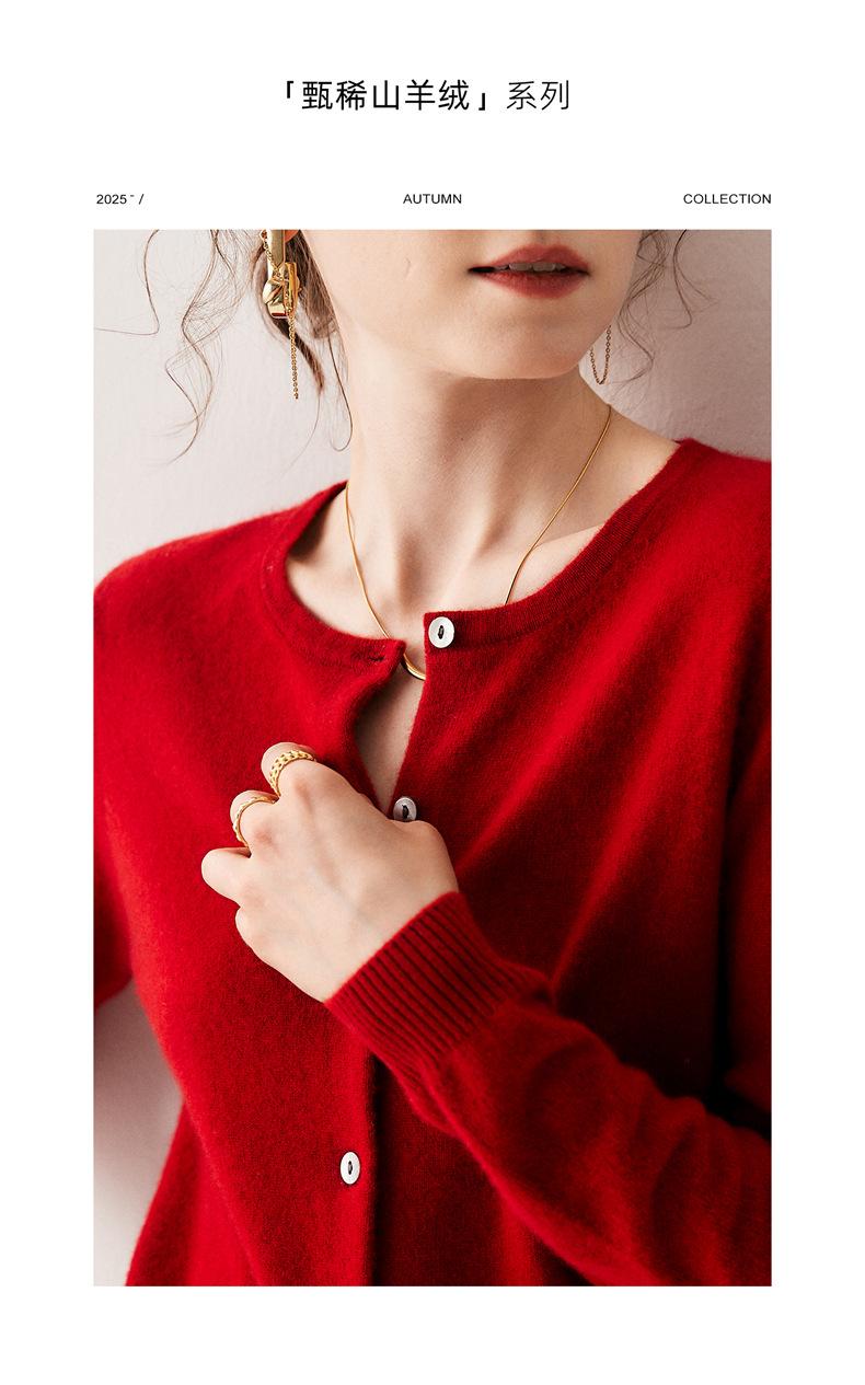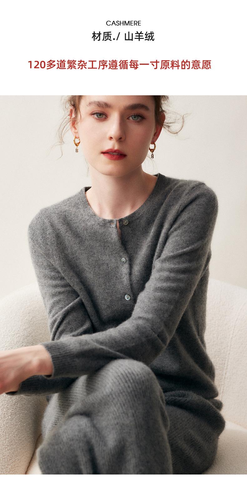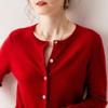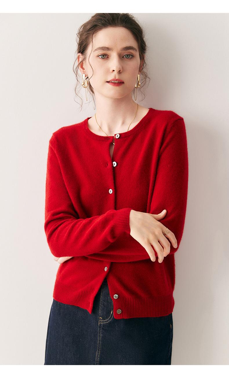 Cárdigan de Cachemira Versátil Liso de Color Sólido con Cuello Redondo Estilo Coreano Lana Temperamento Suelto Sencillo Abrigo Suéter