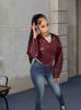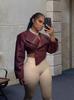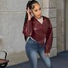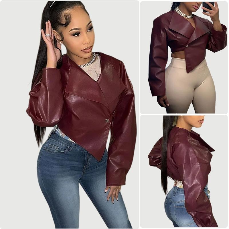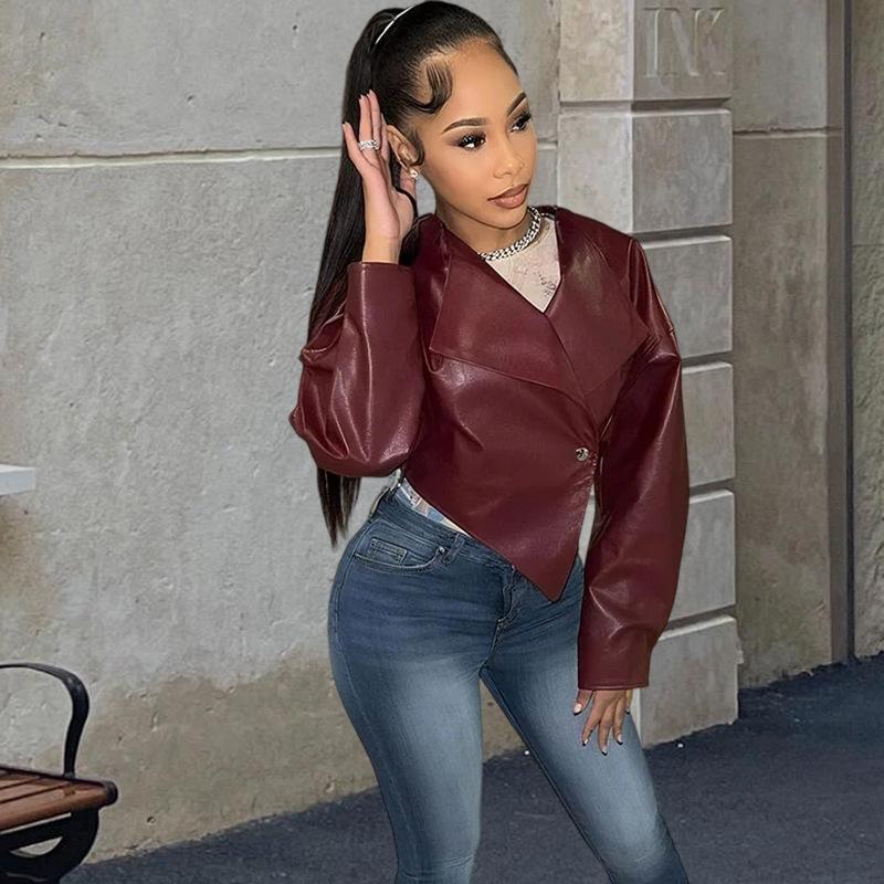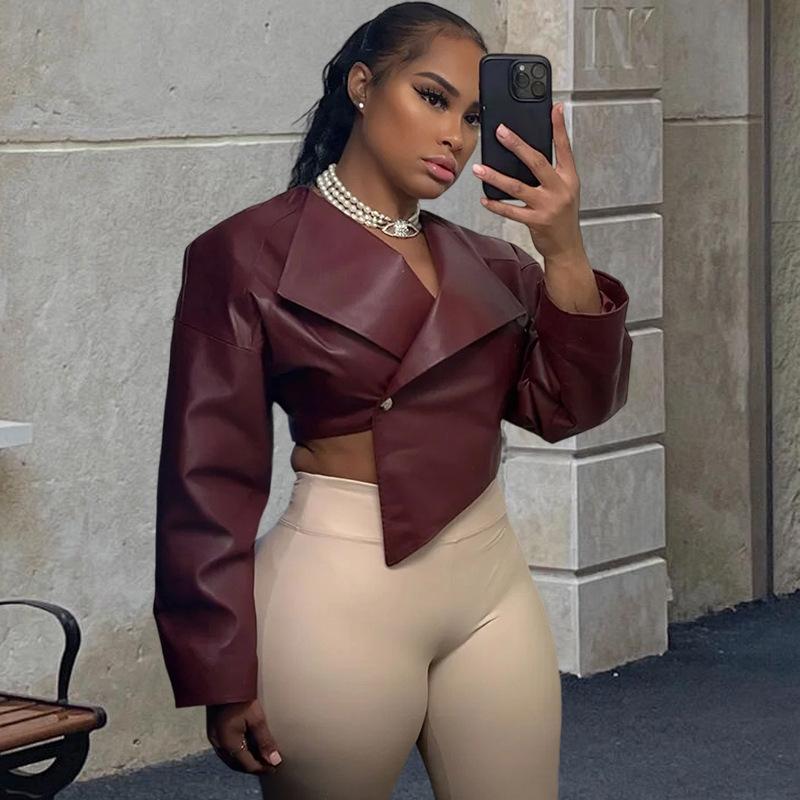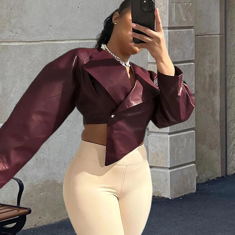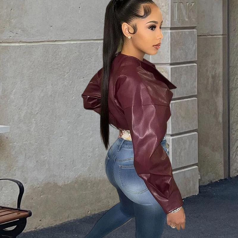 Otoño 2025 Retro Transfronterizo Europeo y Americano Ropa Nueva para Mujer Chaqueta Corta de Cuero Sintético con Solapa Grande Abrigo Estilo Motociclista de PU