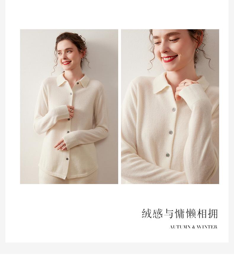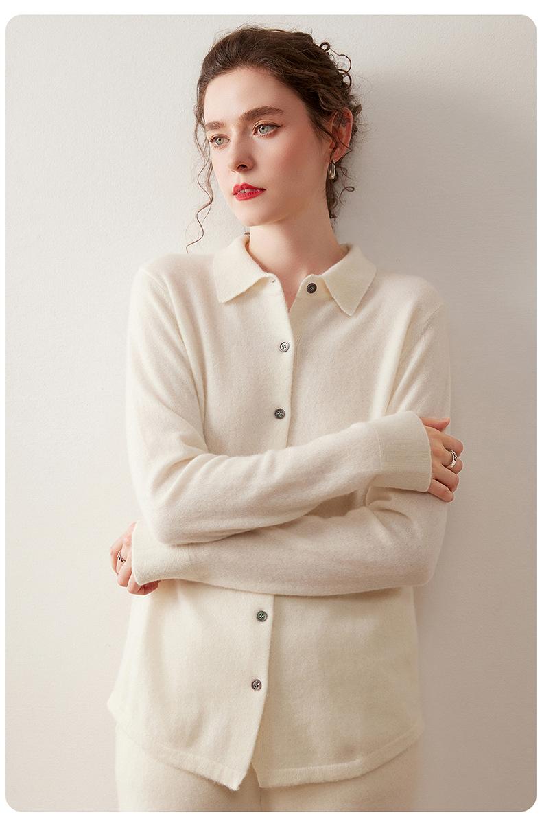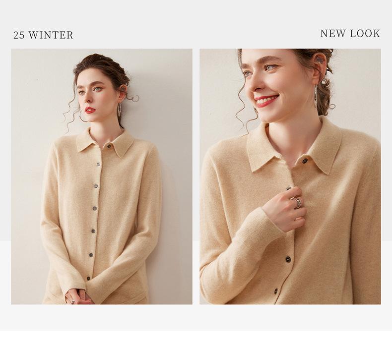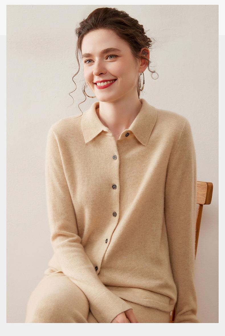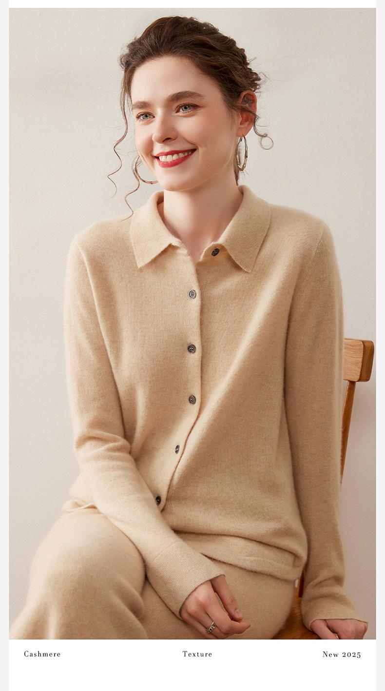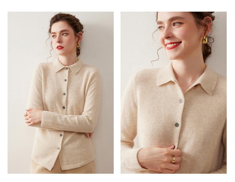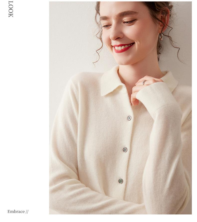 Nuevo Cárdigan de Punto de Cachemira con Cuello POLO Otoño/Invierno para Mujer de Manga Larga Ajustado Temperamento Moda Versátil Abrigo de Un Solo Botón