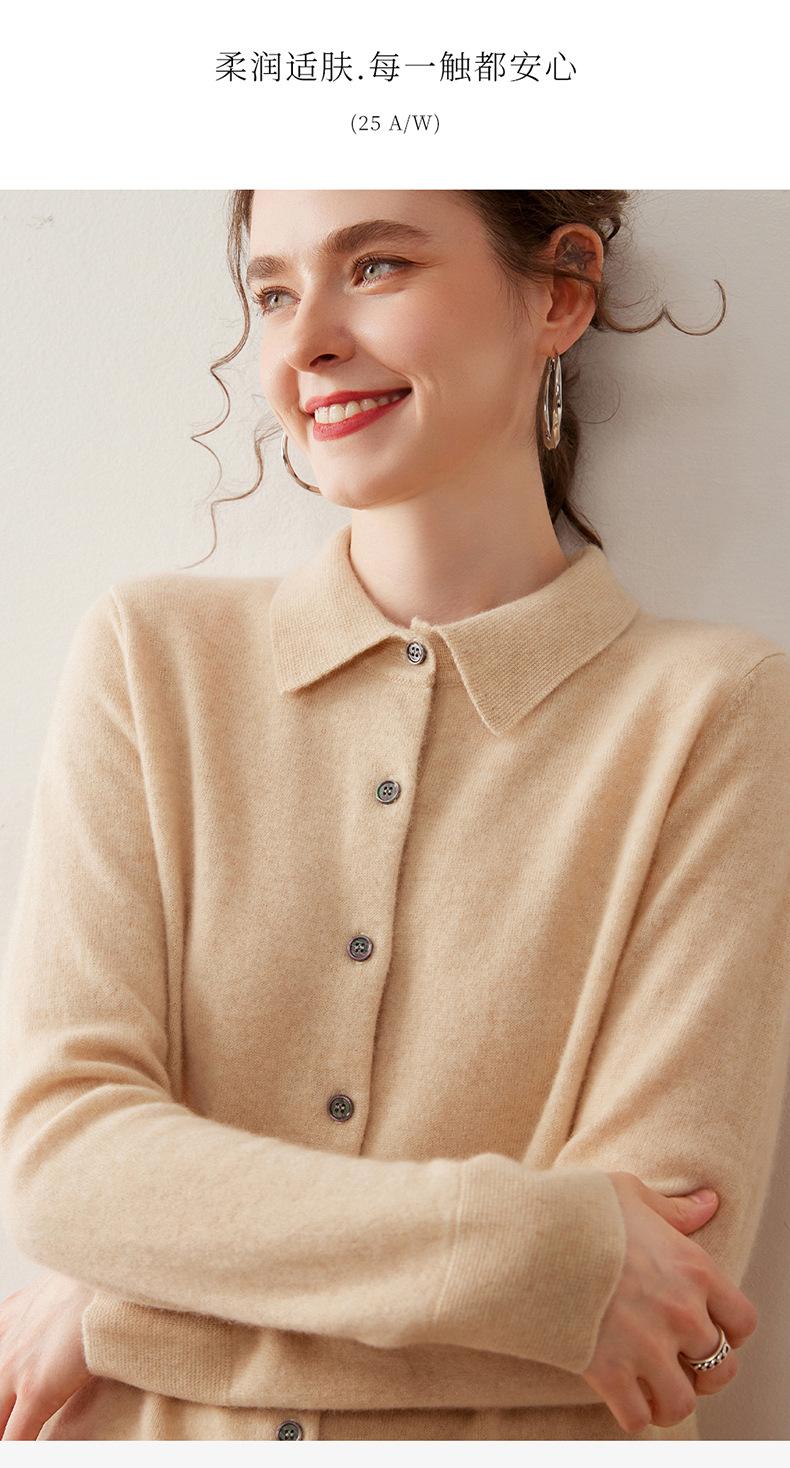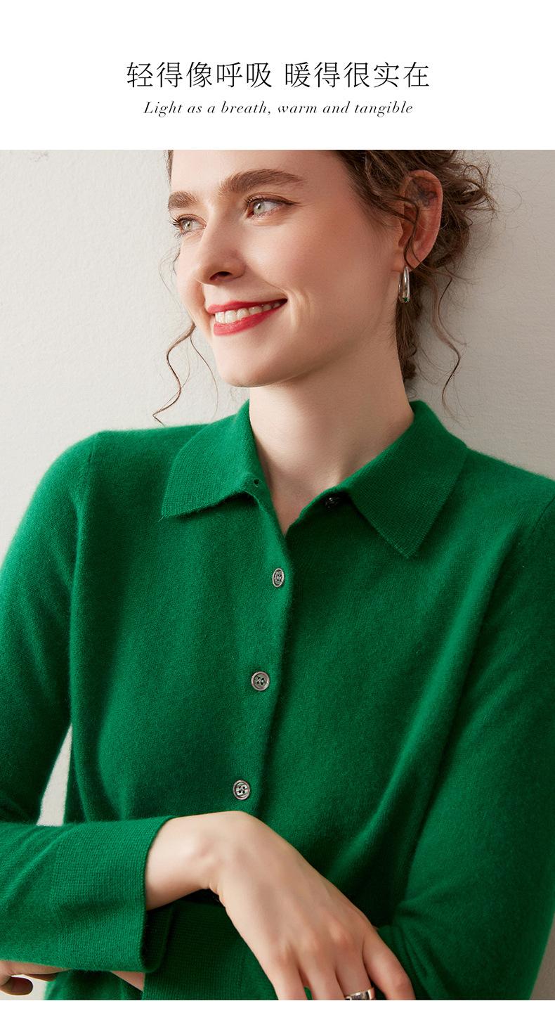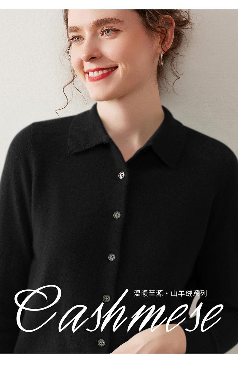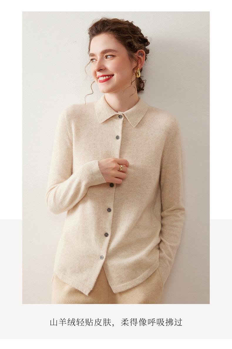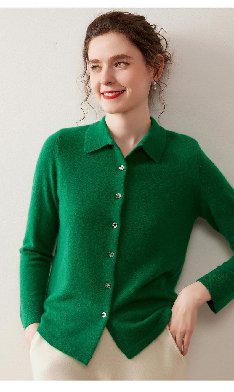 Nuevo Cárdigan de Punto de Cachemira con Cuello POLO Otoño/Invierno para Mujer de Manga Larga Ajustado Temperamento Moda Versátil Abrigo de Un Solo Botón