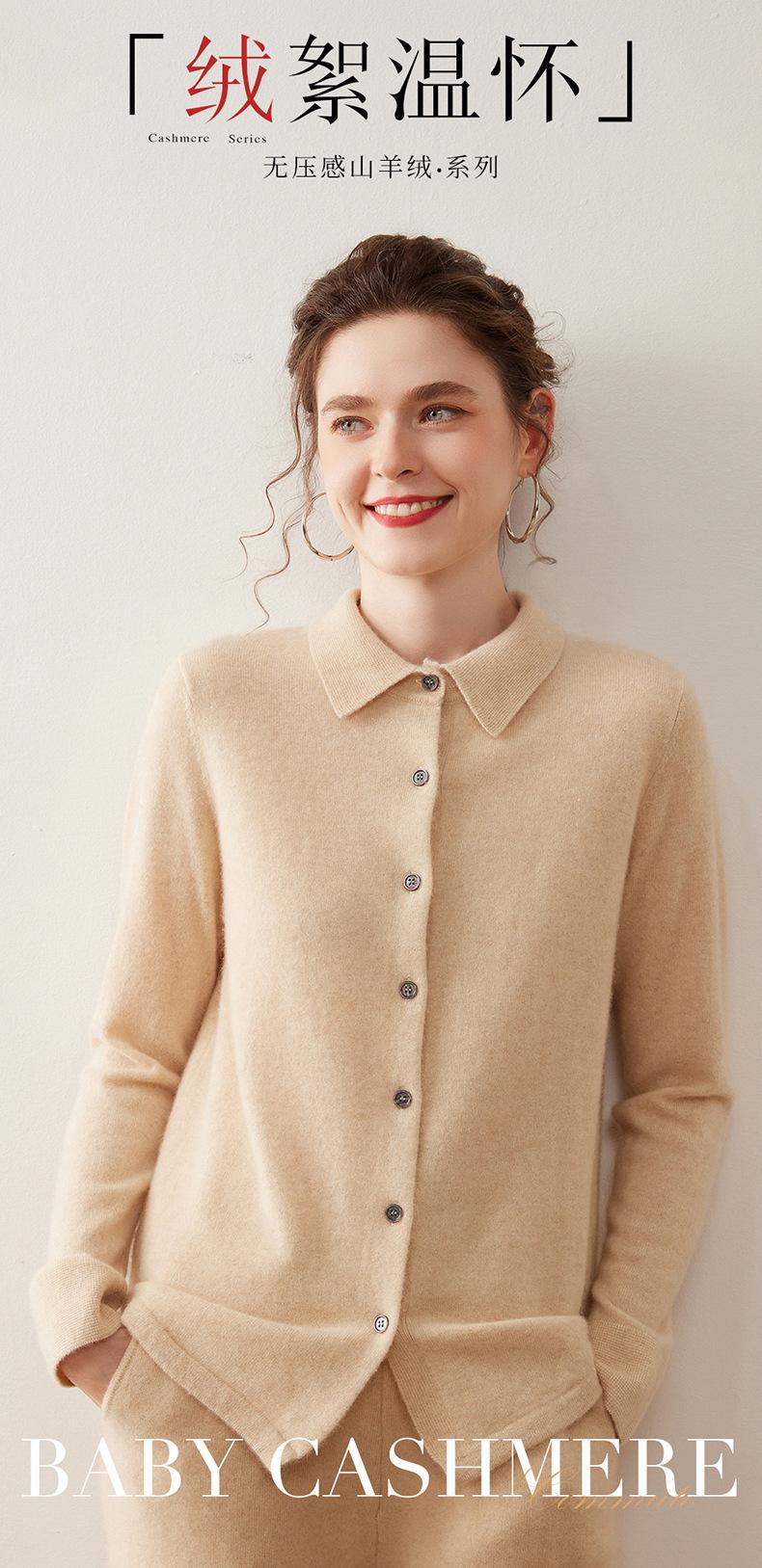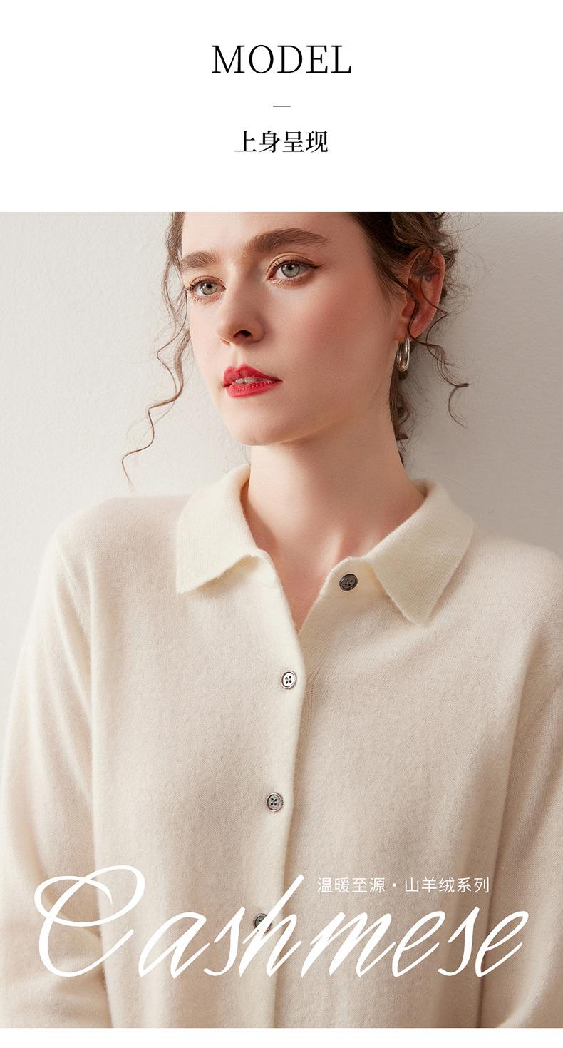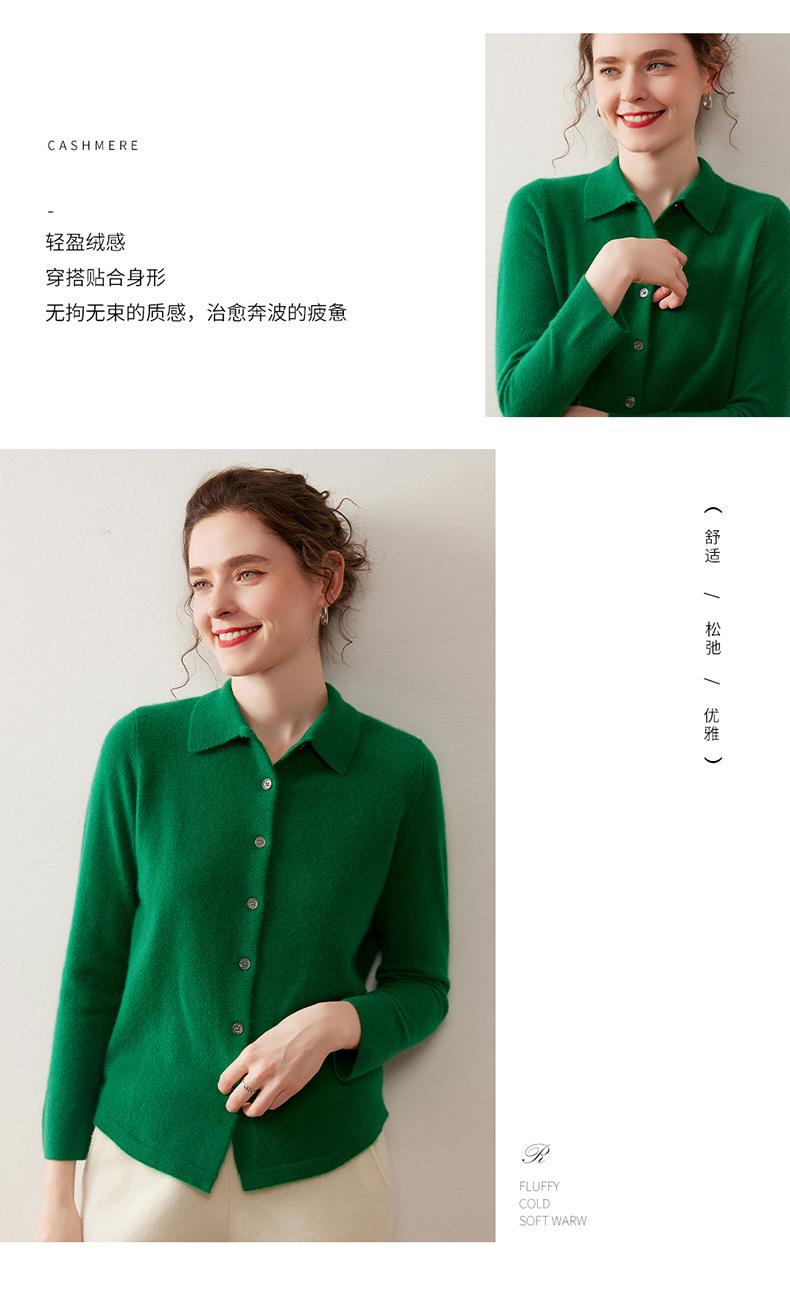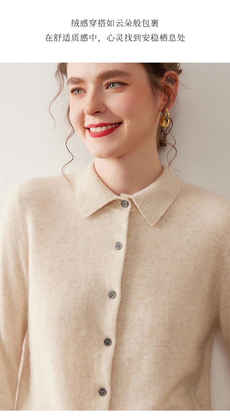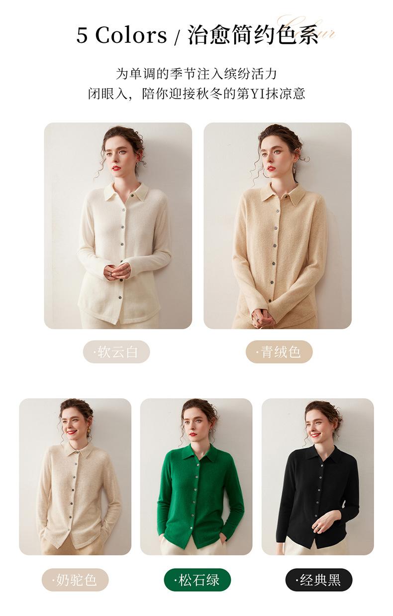 Nuevo Cárdigan de Punto de Cachemira con Cuello POLO Otoño/Invierno para Mujer de Manga Larga Ajustado Temperamento Moda Versátil Abrigo de Un Solo Botón