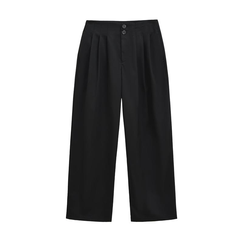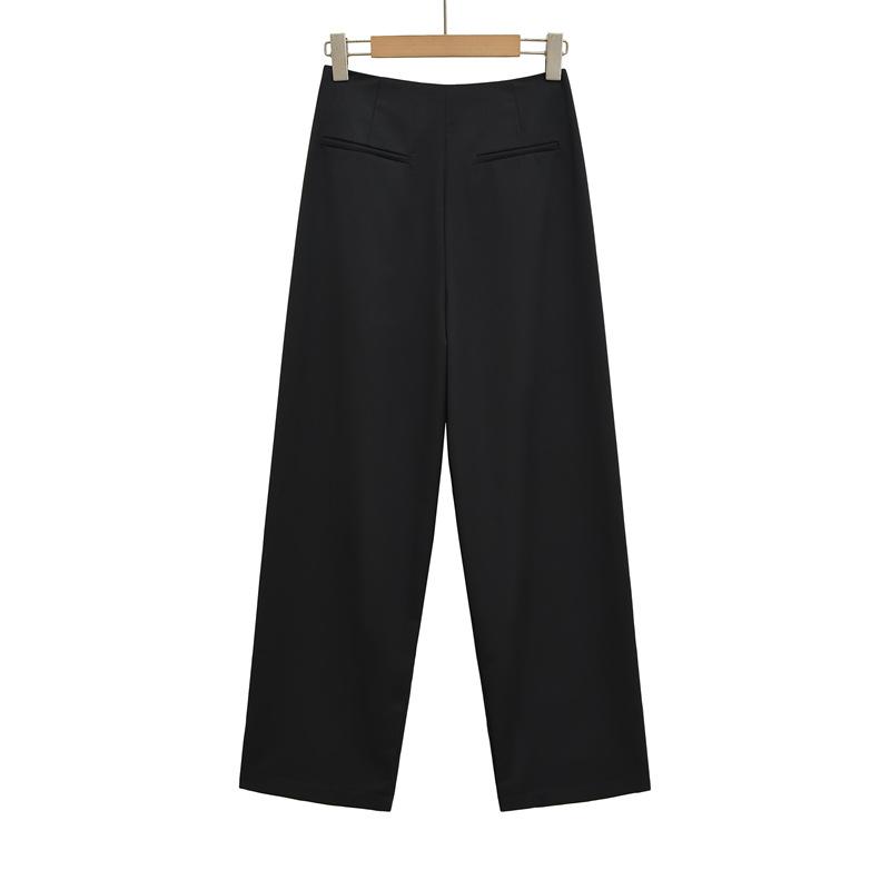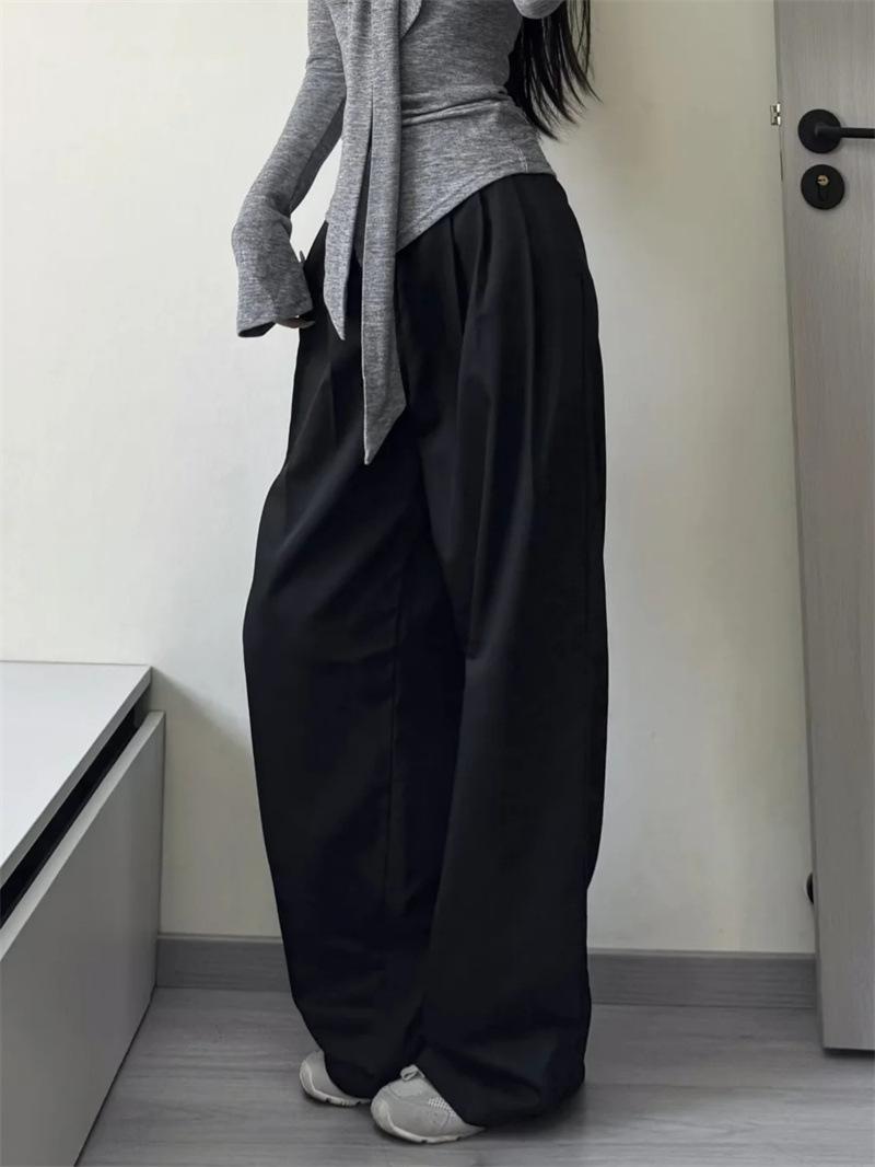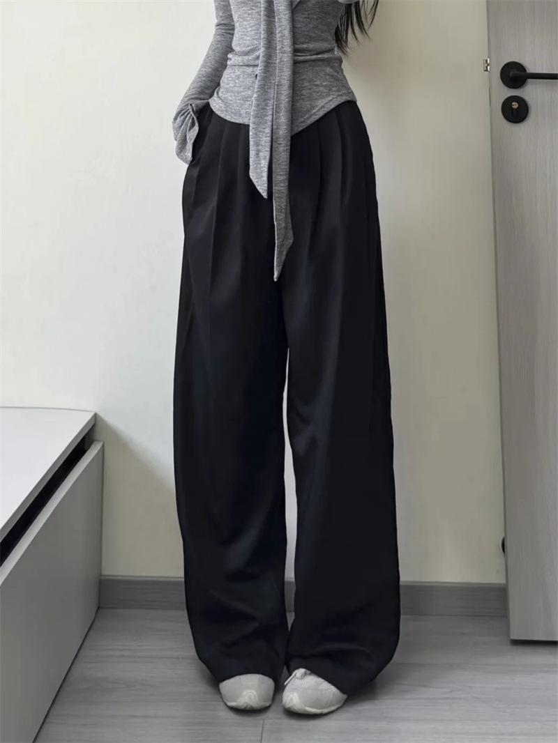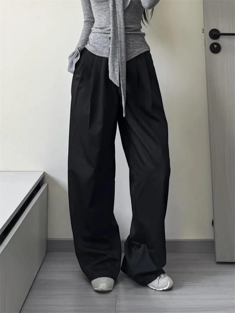 Pantalones de traje casual plisados de estilo europeo y americano de cintura media 2025 otoño nueva moda versátiles sueltos adelgazantes de pierna ancha largos
