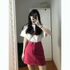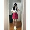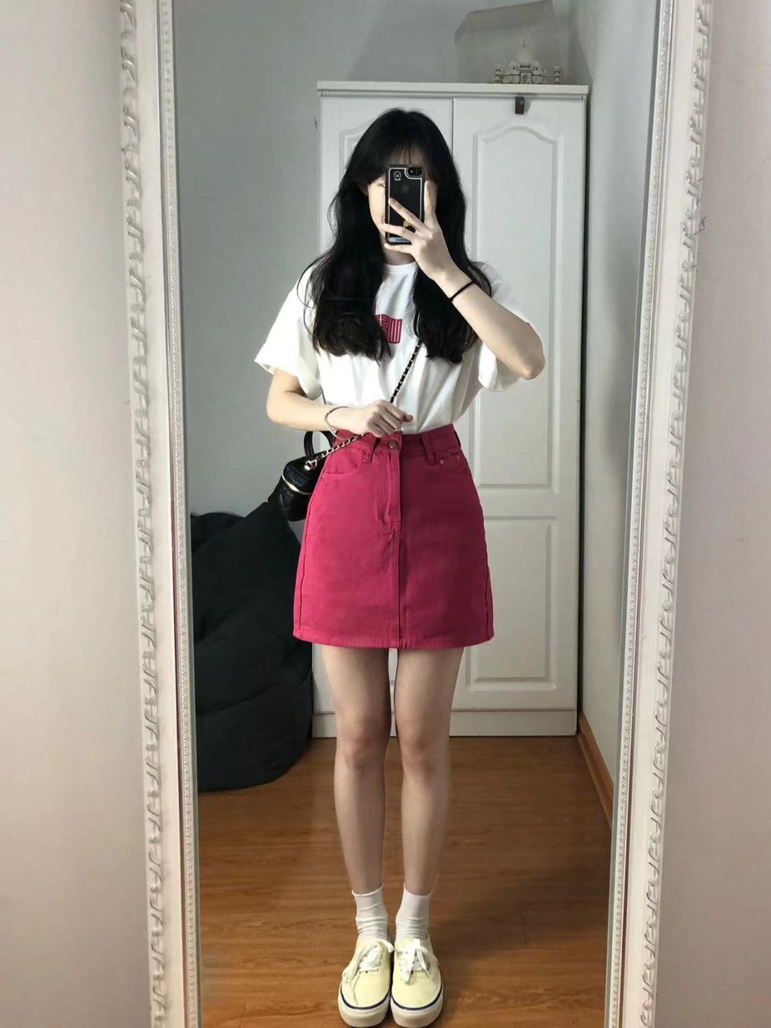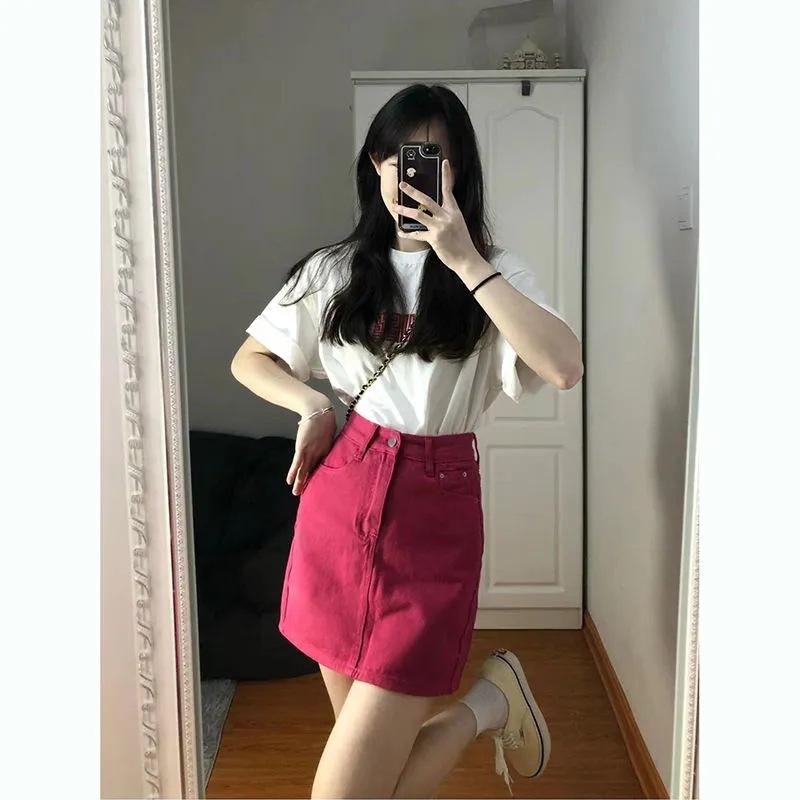 Falda vaquera rojo rosa para mujer verano estilo coreano nueva cintura alta chica hot slim versátil línea A cadera falda corta
