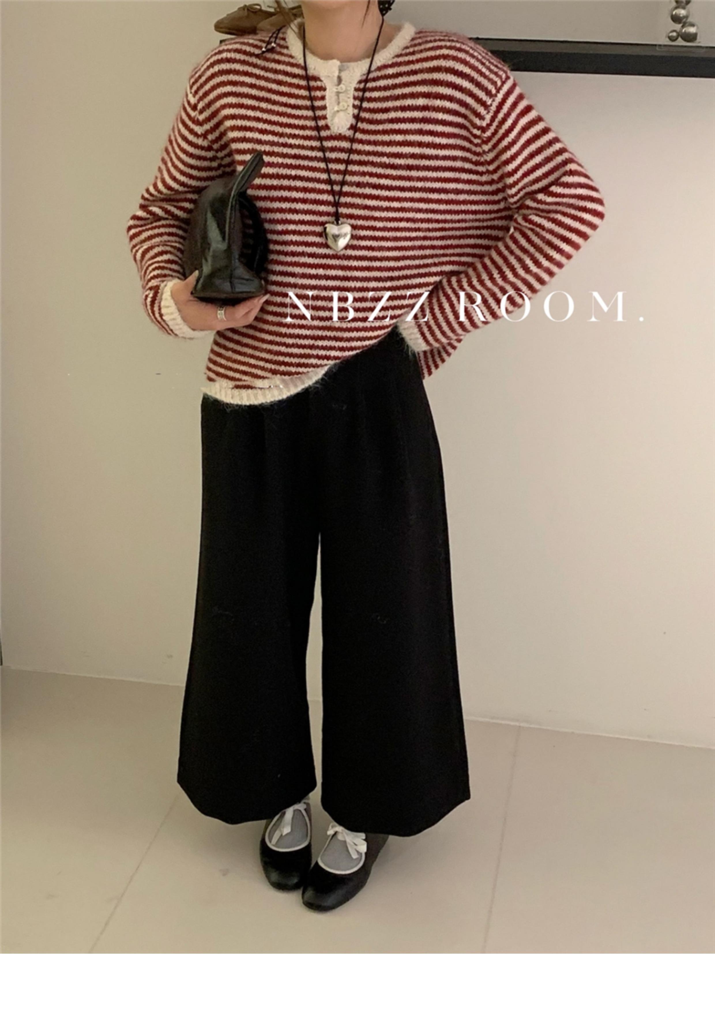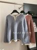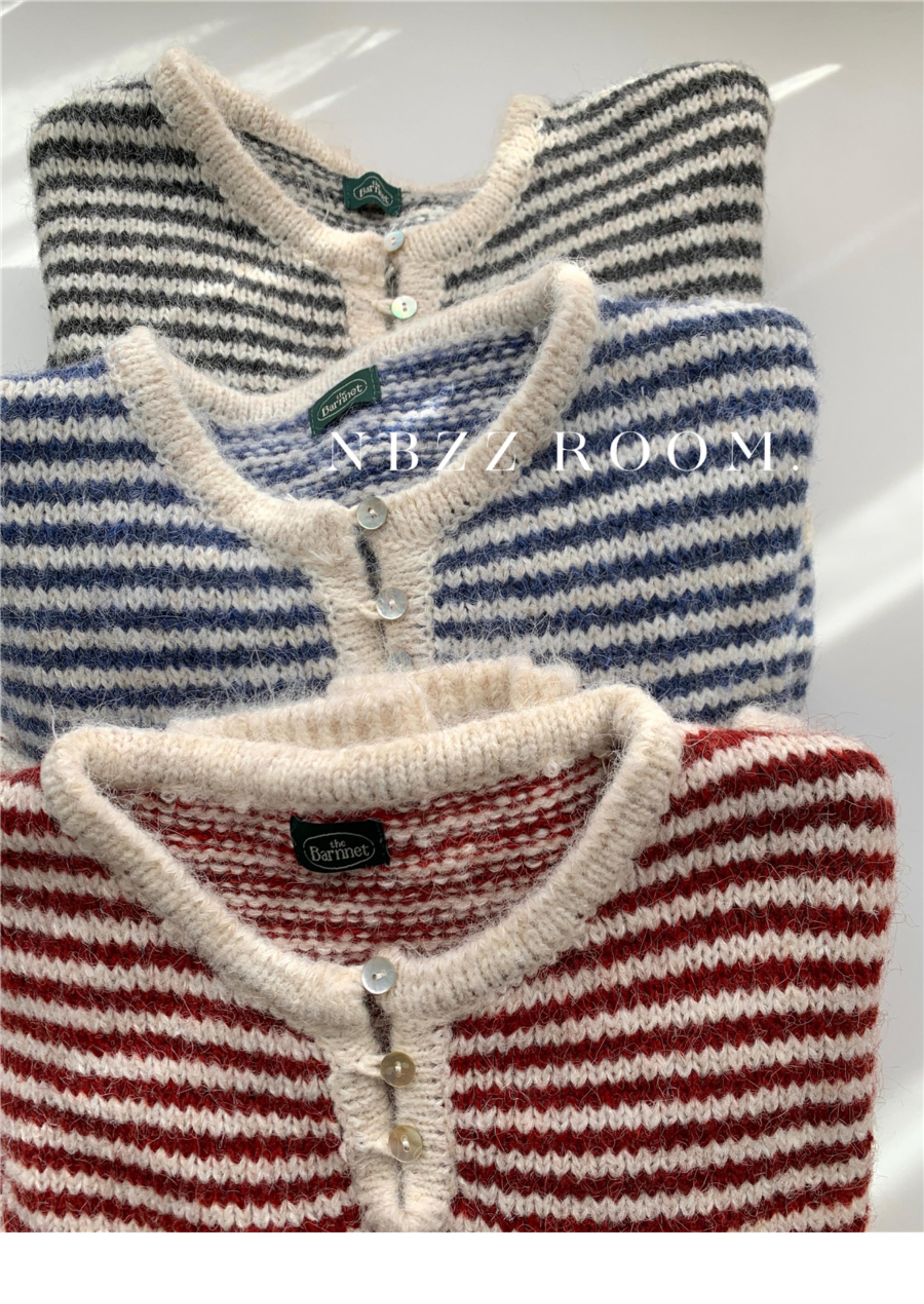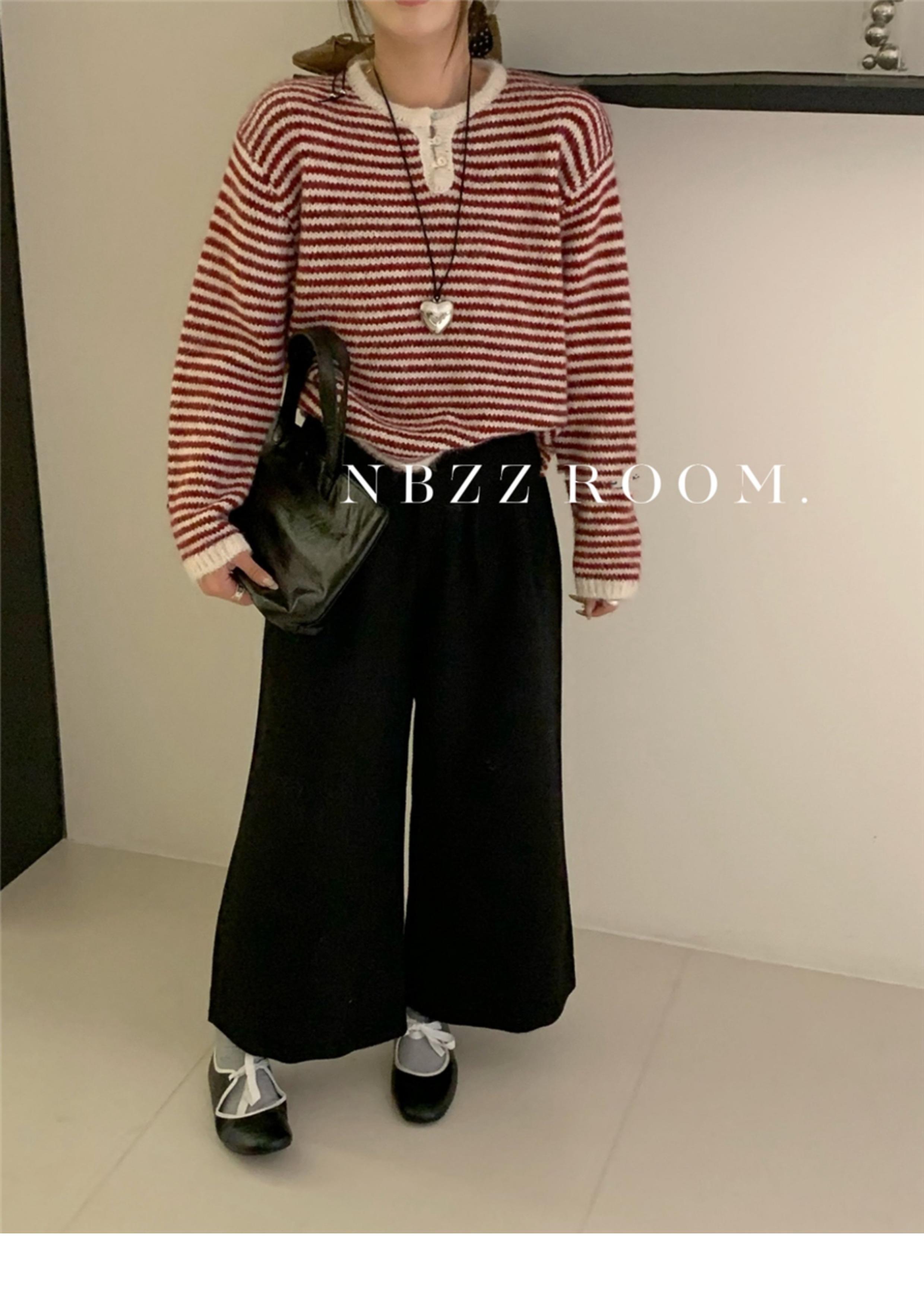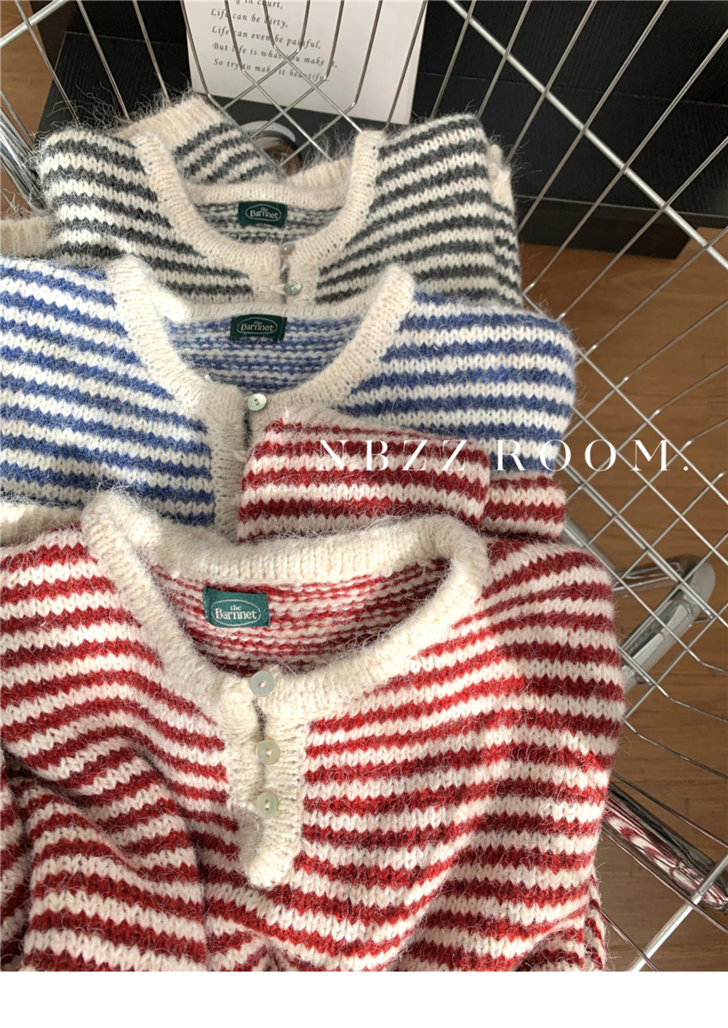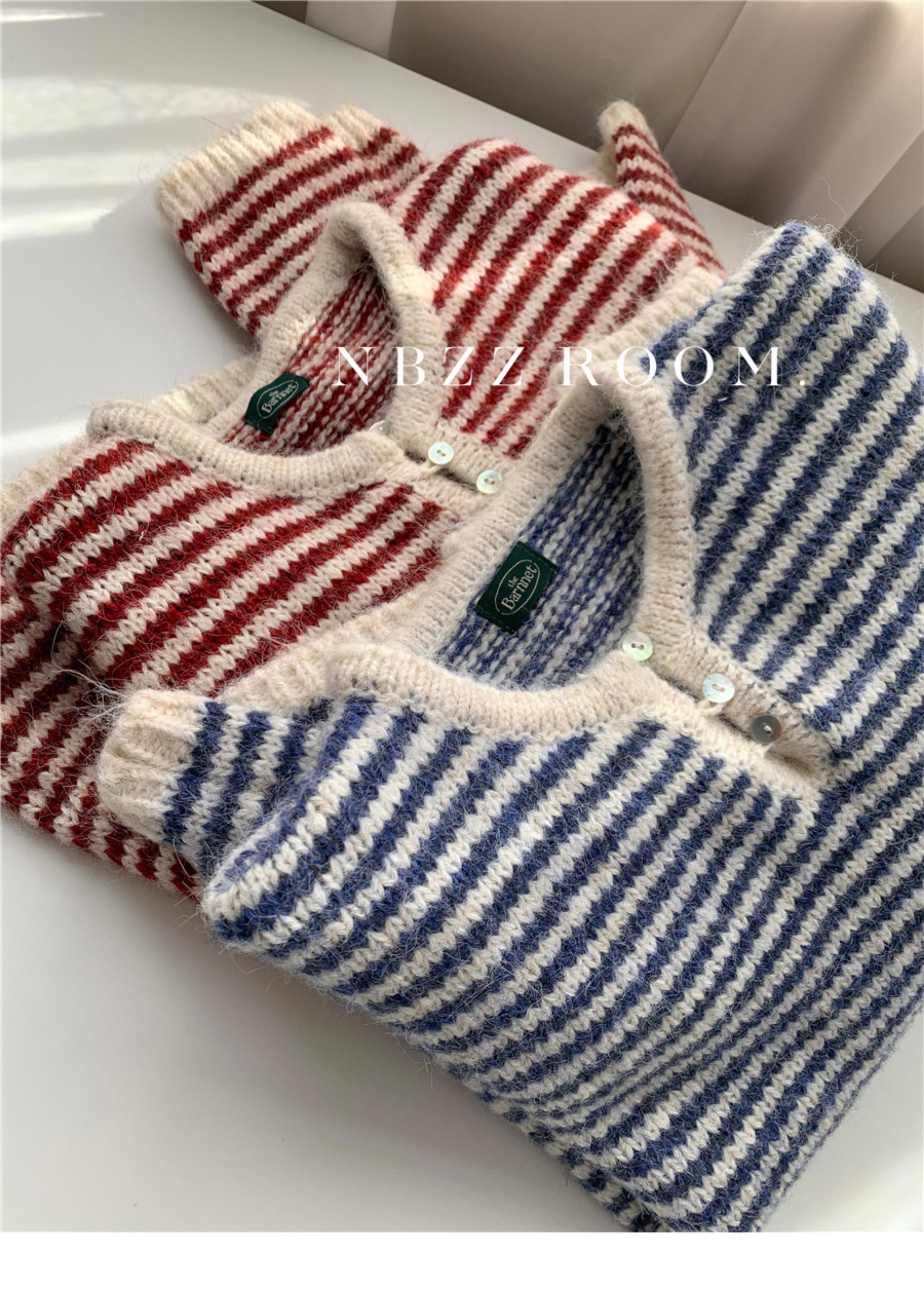 Suéter de rayas con hebilla de concha perezosa retro de principios de primavera 2025 para mujer, estilo coreano, combinable con todo, corte ajustado, manga larga
