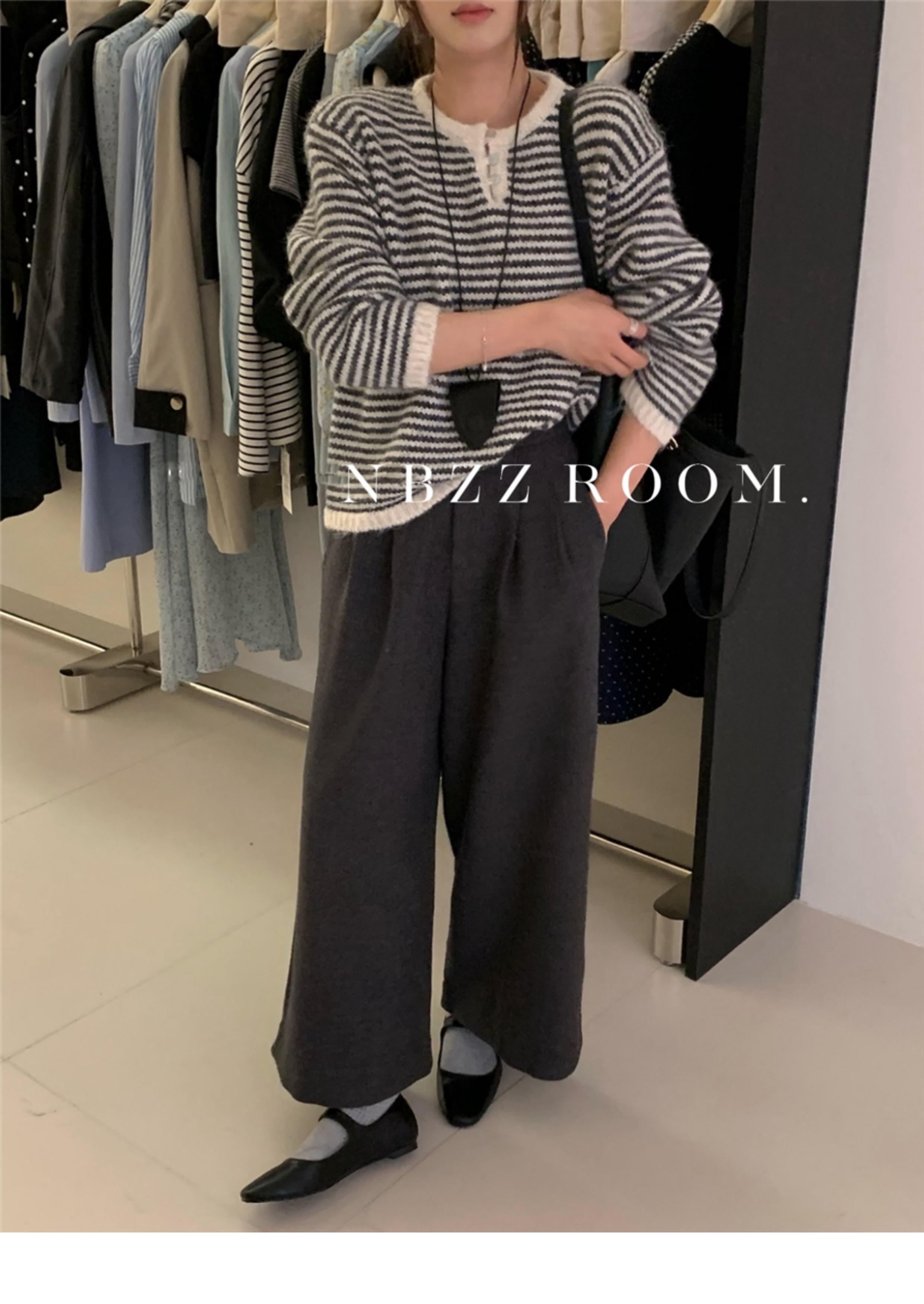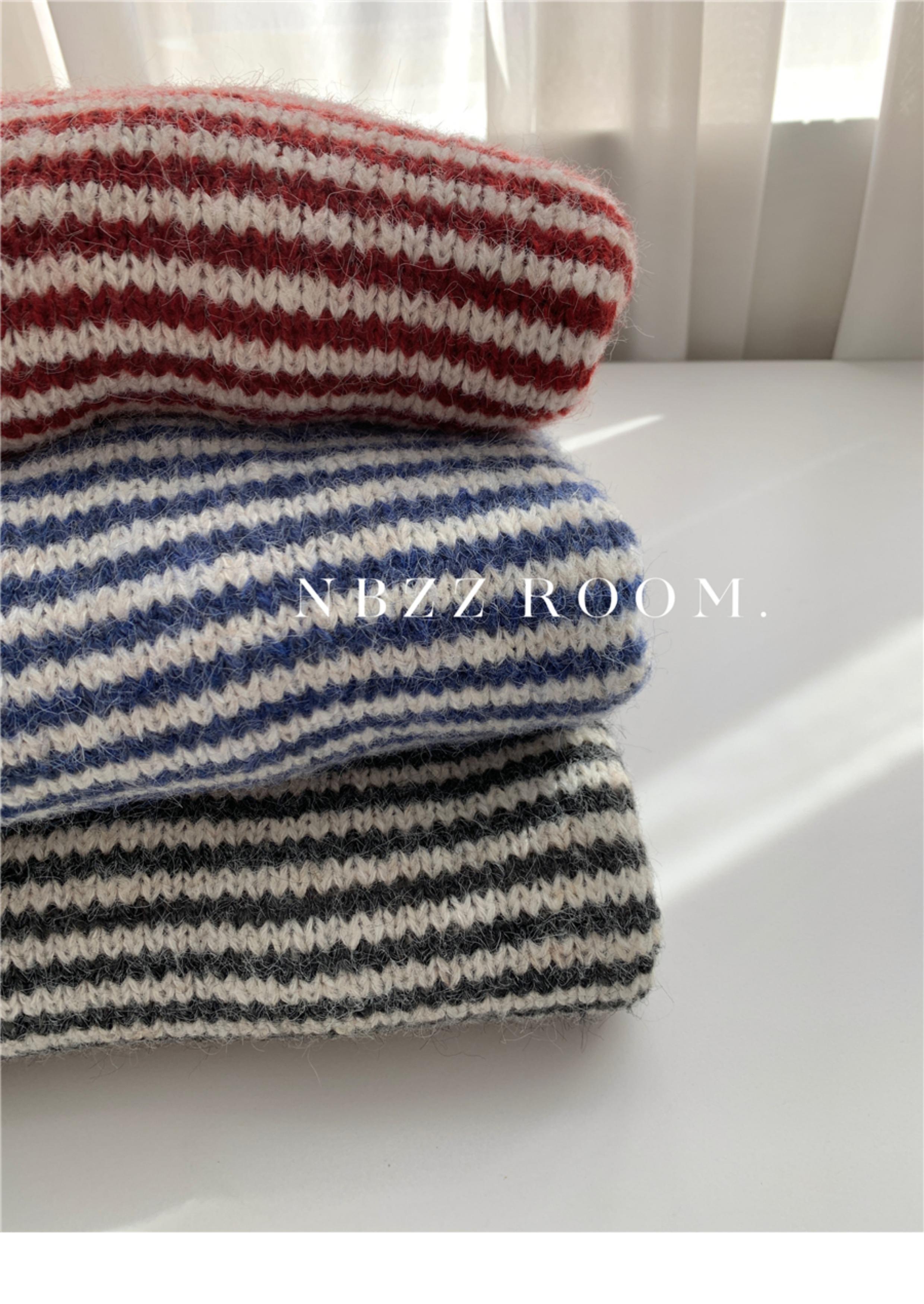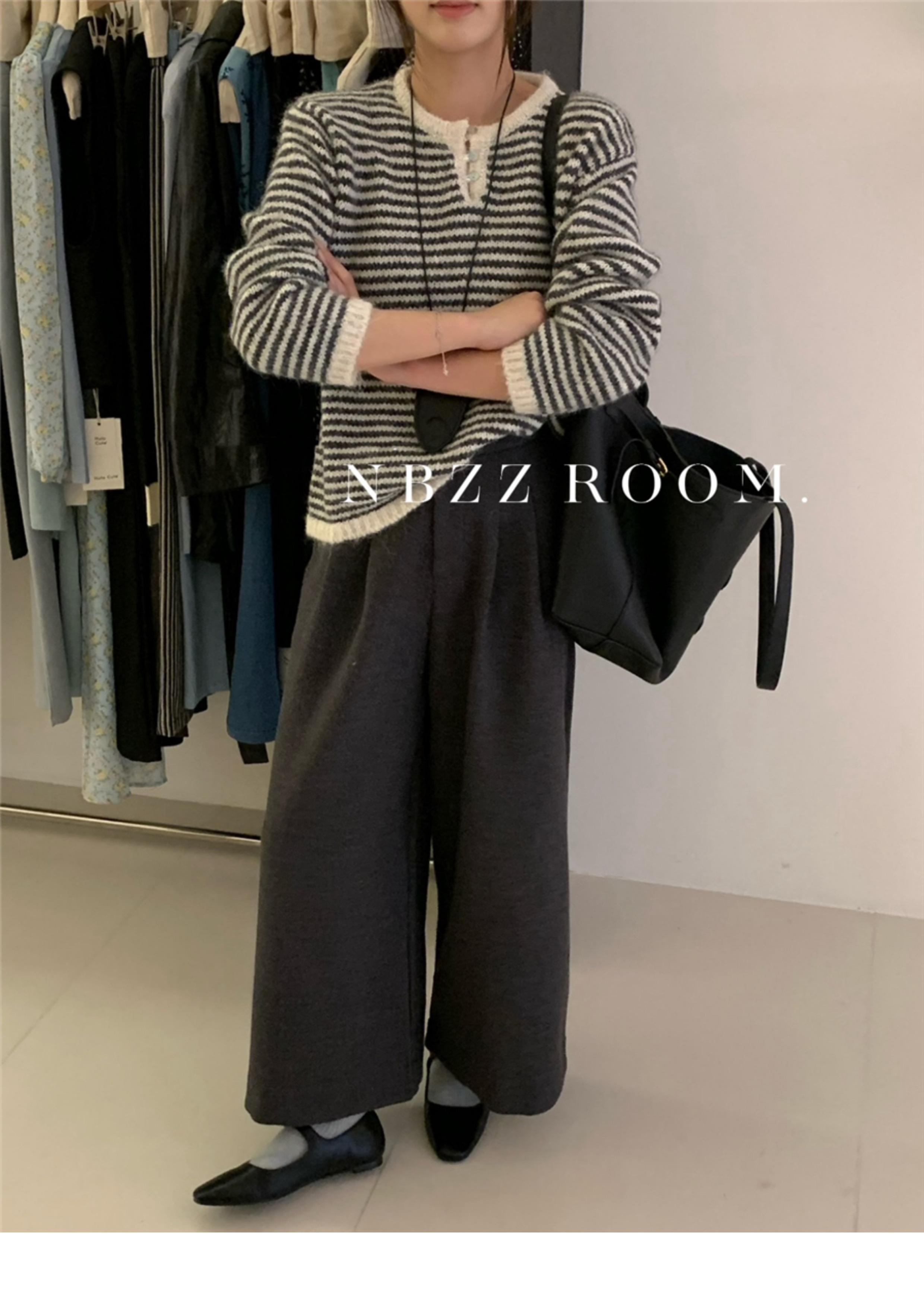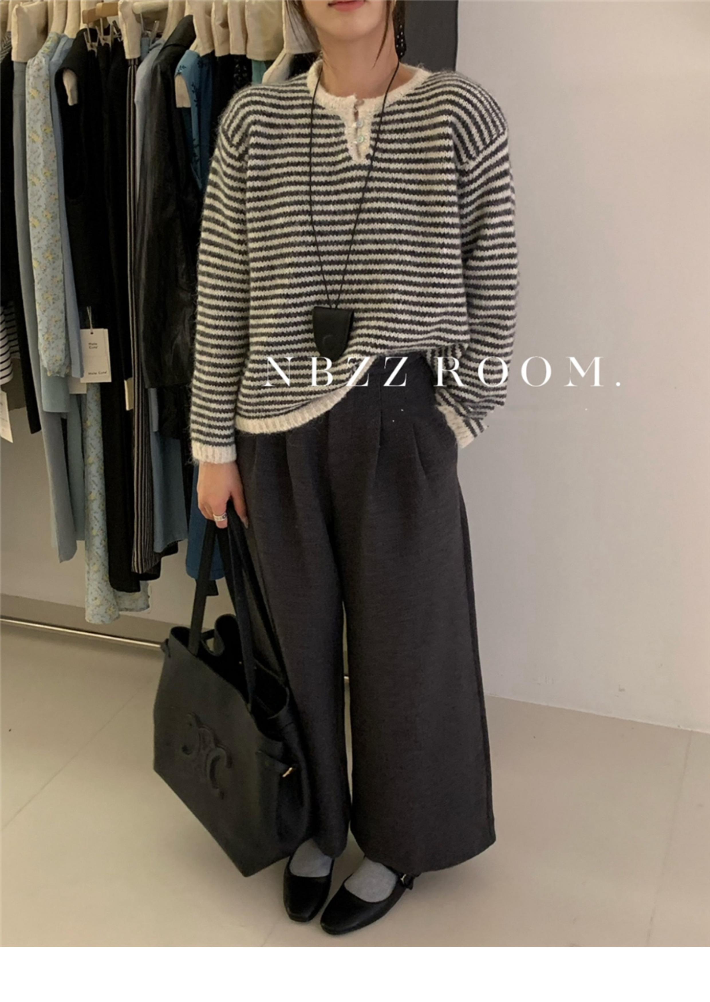 Suéter de rayas con hebilla de concha perezosa retro de principios de primavera 2025 para mujer, estilo coreano, combinable con todo, corte ajustado, manga larga