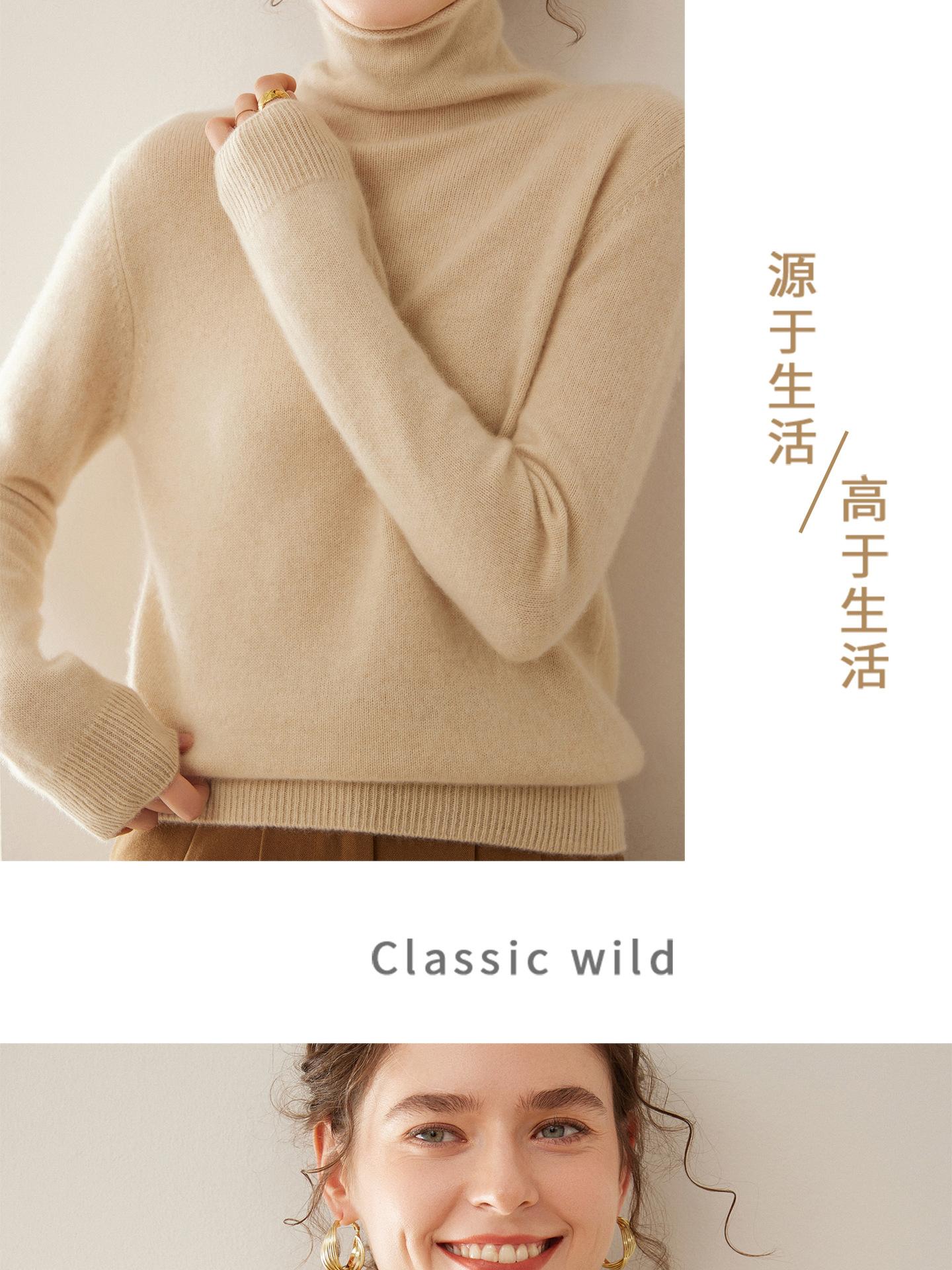 Nueva Capa Base de Punto de Cachemira Otoño/Invierno Moda para el Trabajo Versátil Suelta Adelgazante Cuello Alto Suéter de Mujer