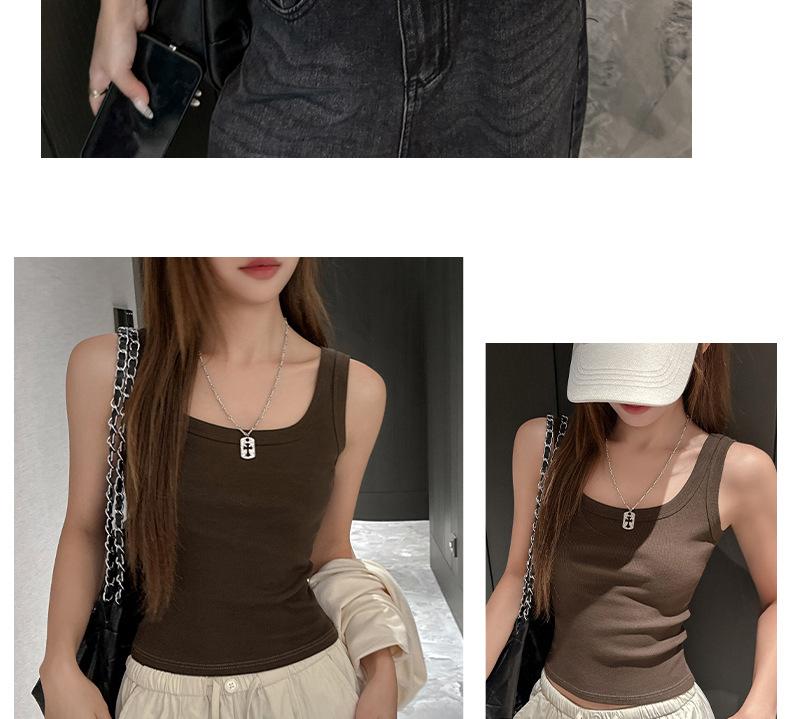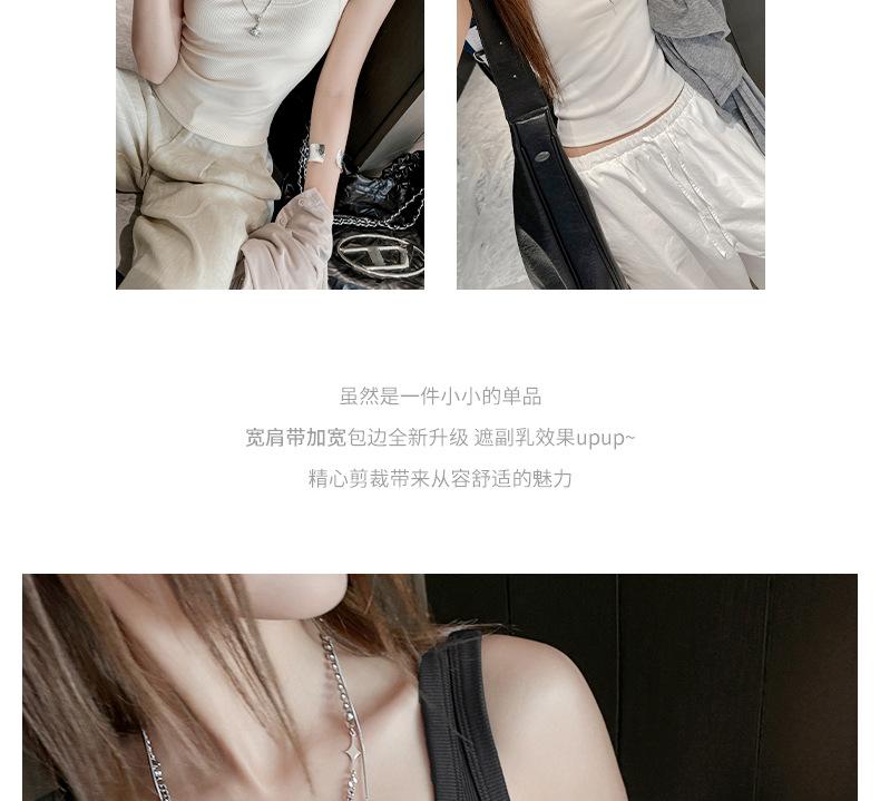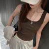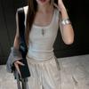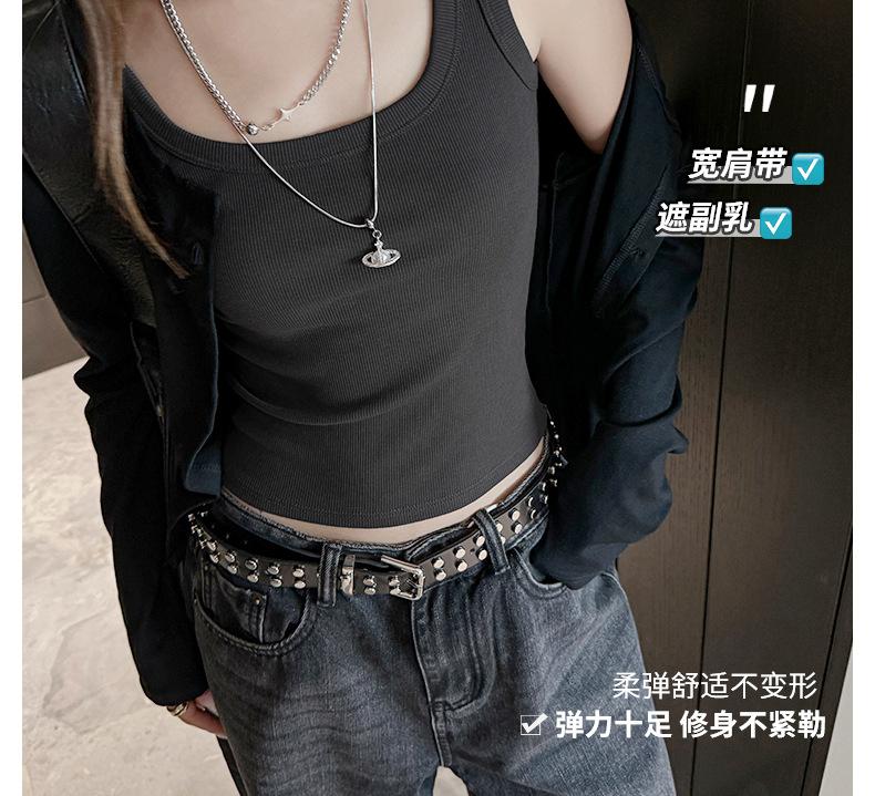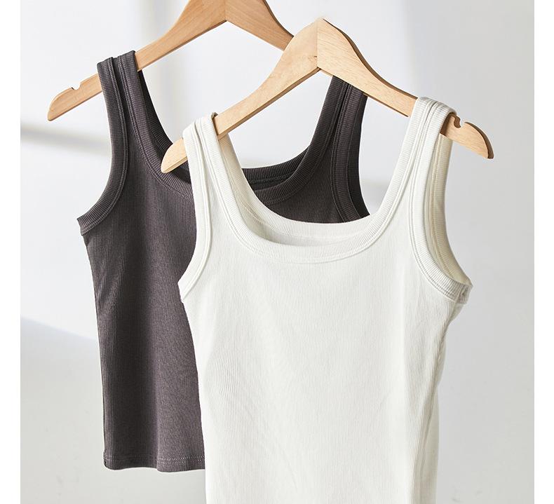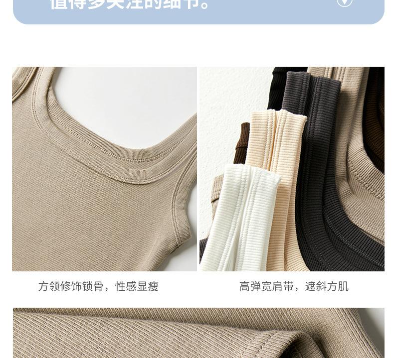 Verano Modal Acanalado Cuello Cuadrado Base Interior Camisola Pequeña para Mujer Ropa Exterior Básica Combinable Camiseta Base Top