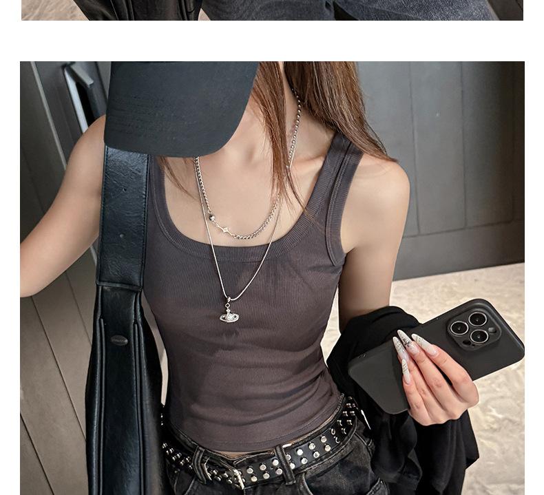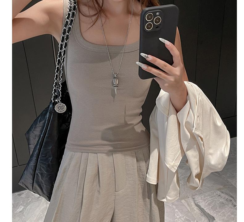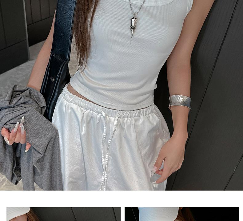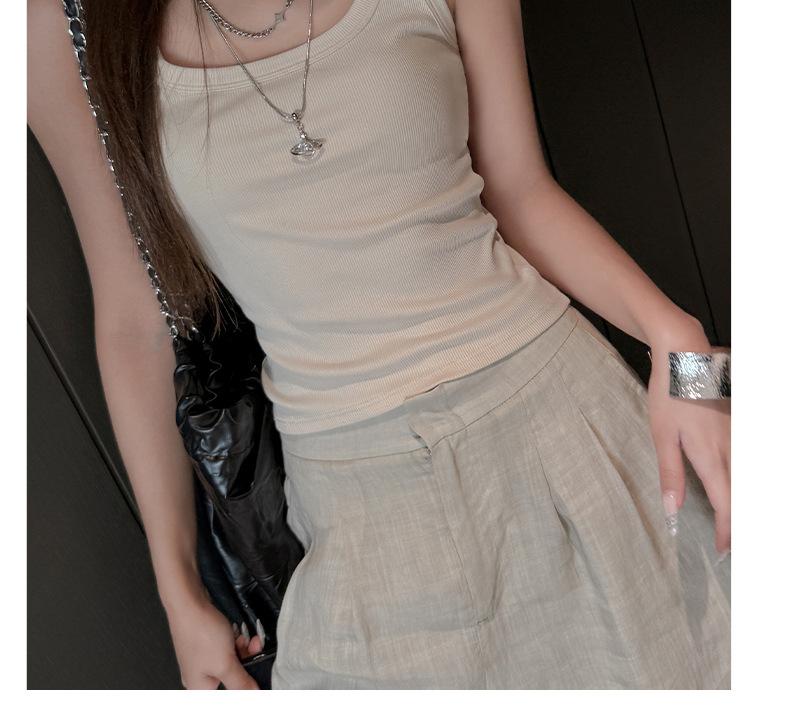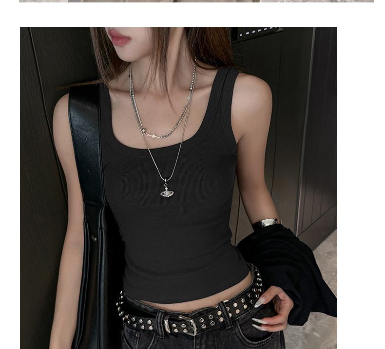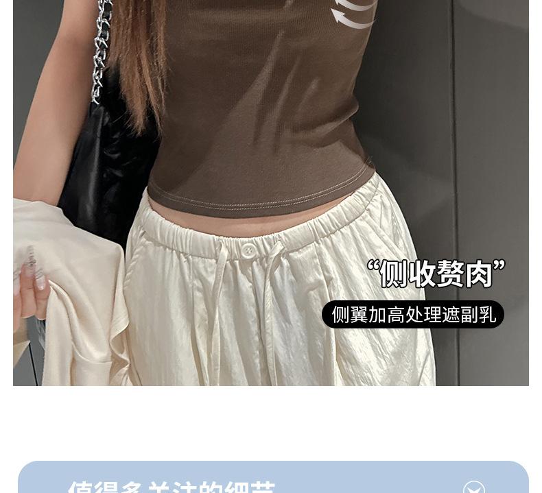 Verano Modal Acanalado Cuello Cuadrado Base Interior Camisola Pequeña para Mujer Ropa Exterior Básica Combinable Camiseta Base Top