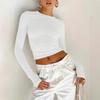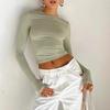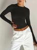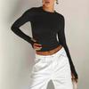 Ropa de Mujer Europea y Americana 2025 Primavera Nuevo Color Puro Casual Sexy Look Adelgazante Ombliguera Reversible Slim Top de Manga Larga