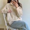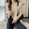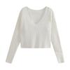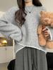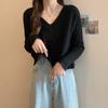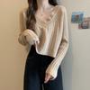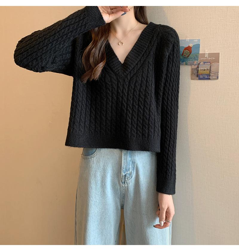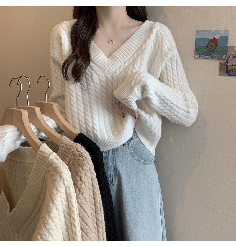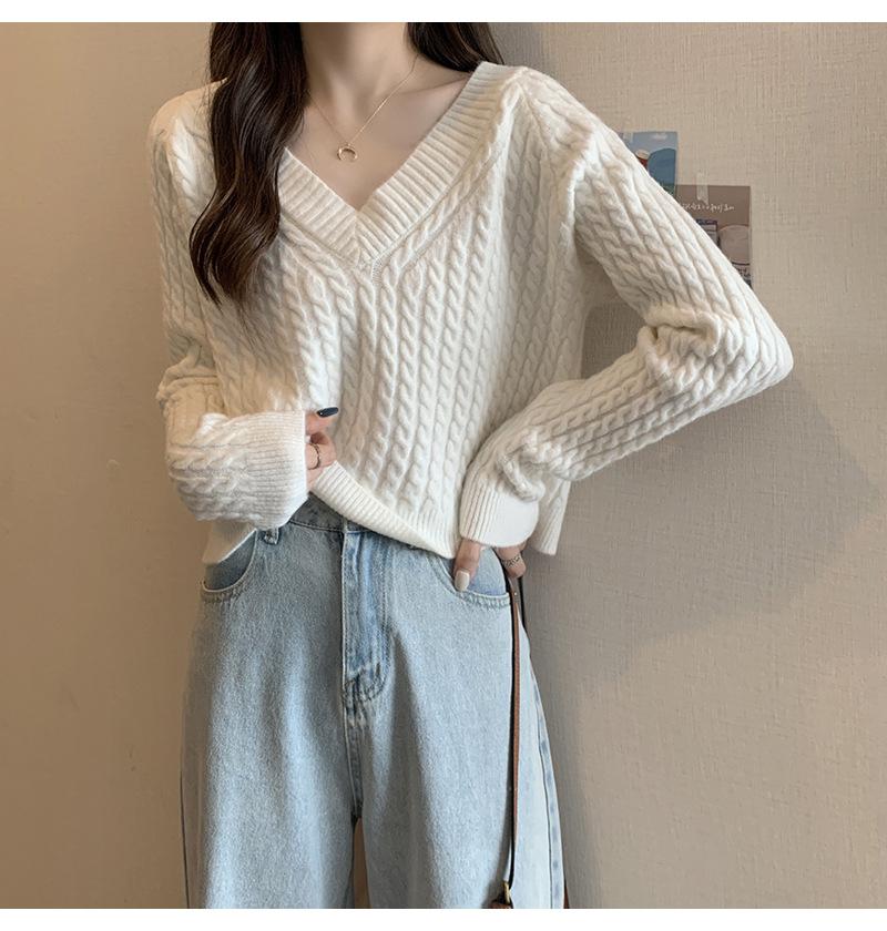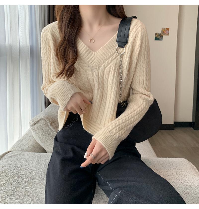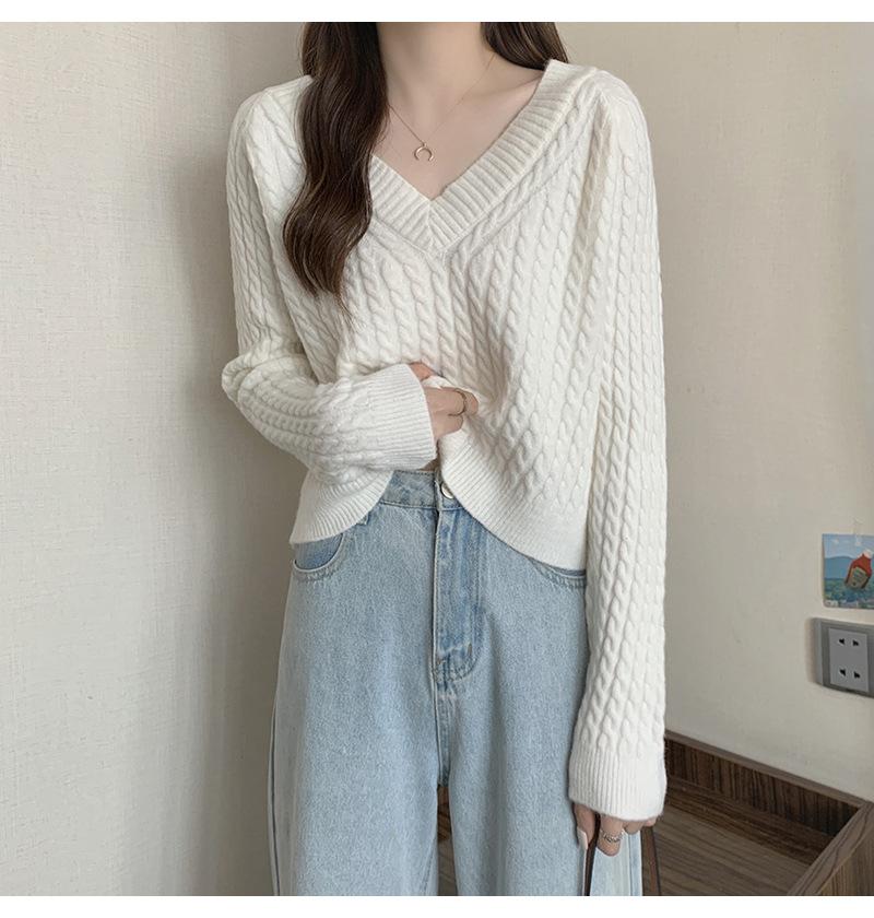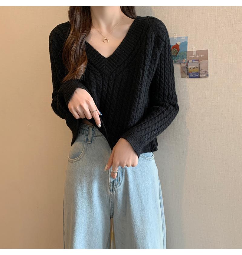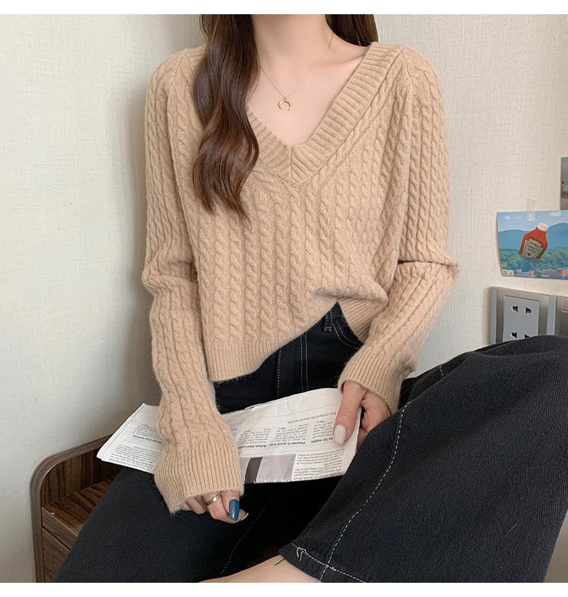 Suéter de cuello en V para mujer sentido del diseño otoño e invierno corto estilo perezoso suéter suelto tejido de punto trenzado ropa exterior