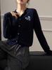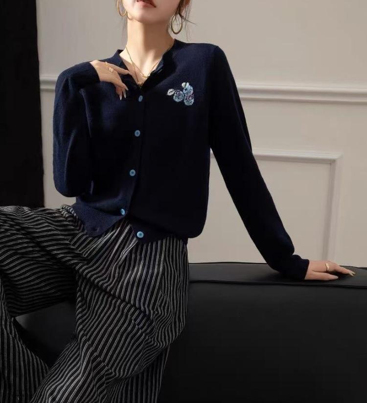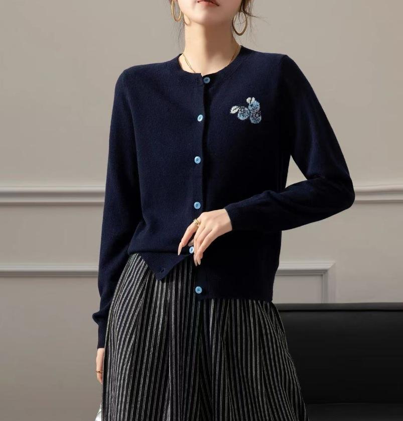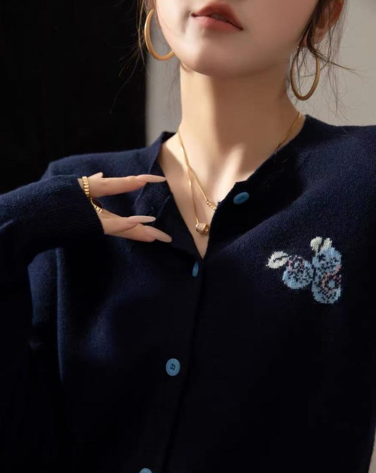 Tejido de punto de alta gama para mujer 2025 otoño/invierno nuevo cárdigan de cuello redondo temperamento jacquard conjunto suéter chaqueta pequeña top