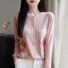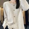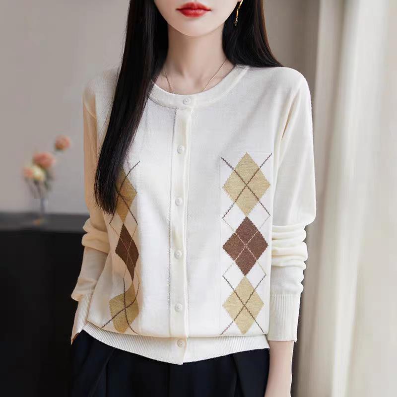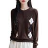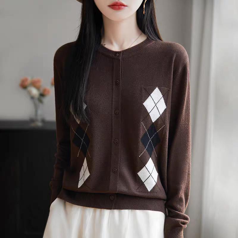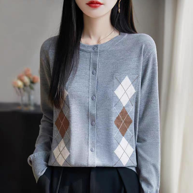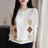 Cárdigan de Punto de Lana Merino Fina de Cuello Redondo Nuevo de Primavera 2025 para Mujer Patrón de Diamantes Holgado Manga Larga Suéter Tejido Ropa Exterior Top