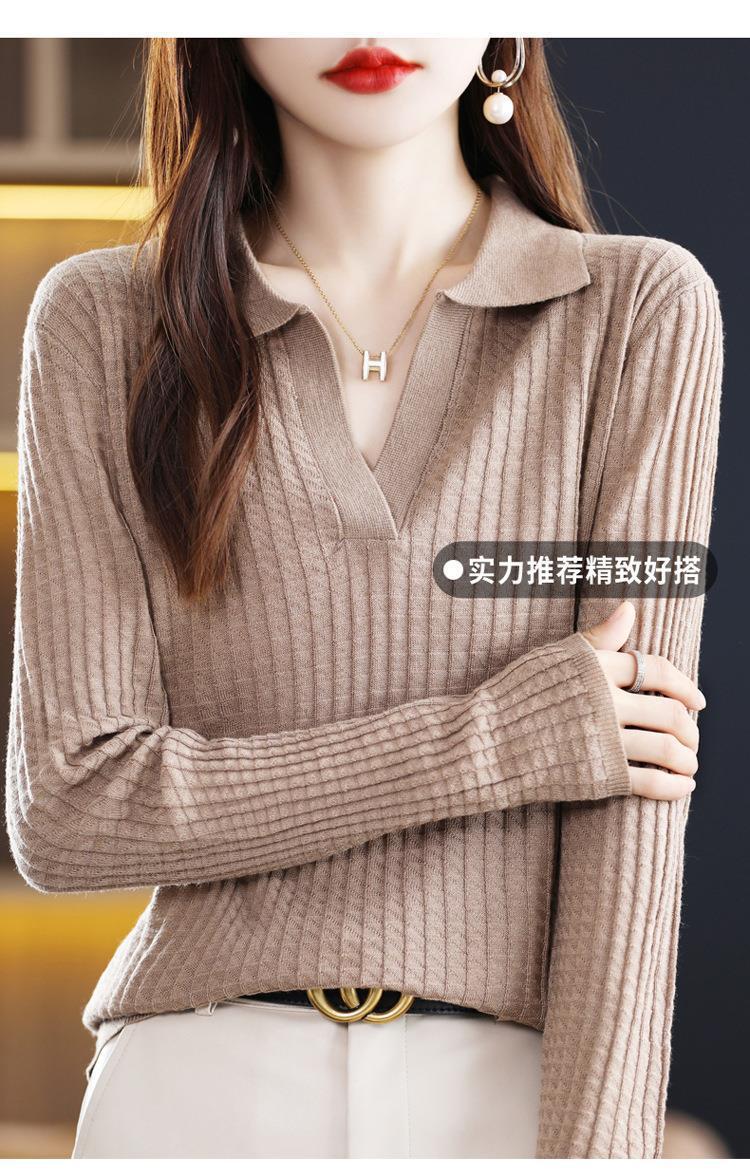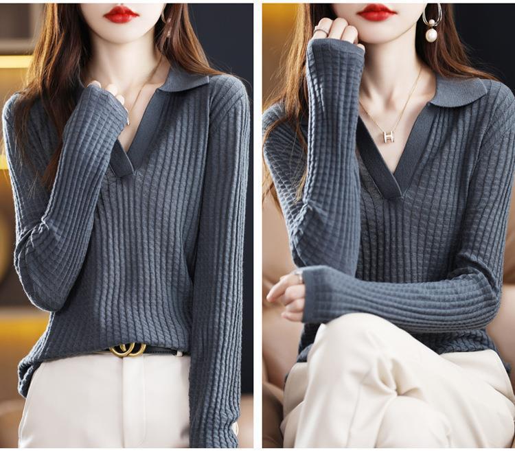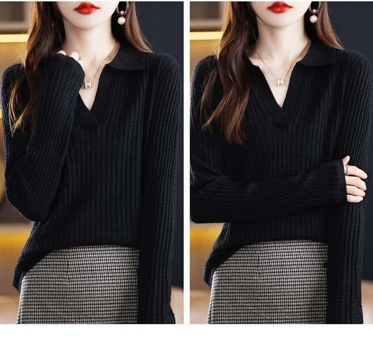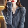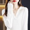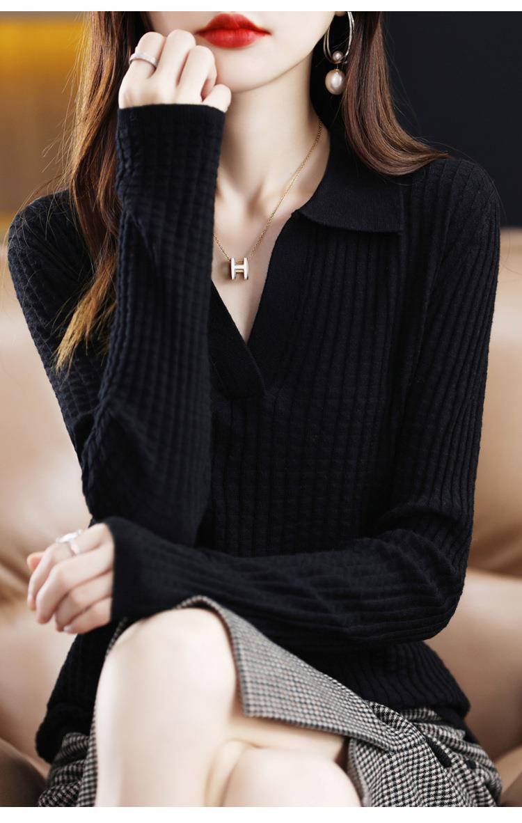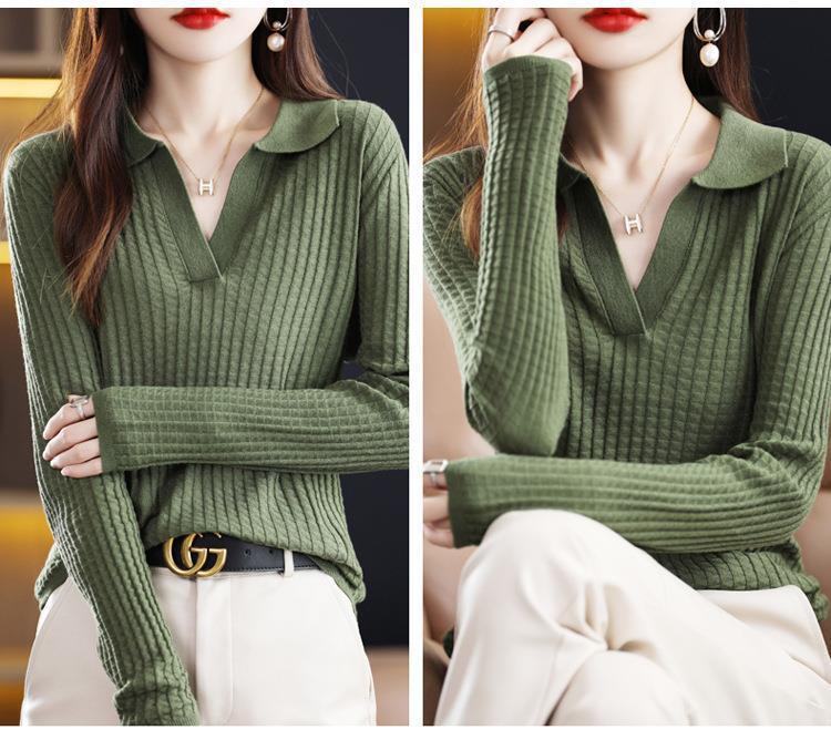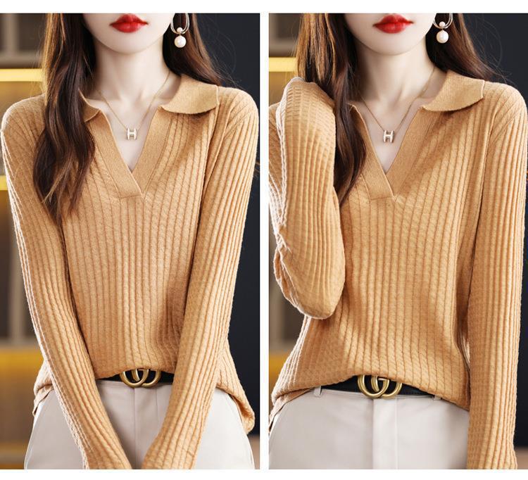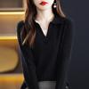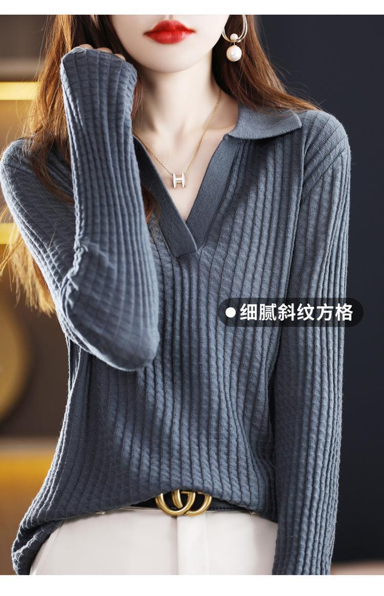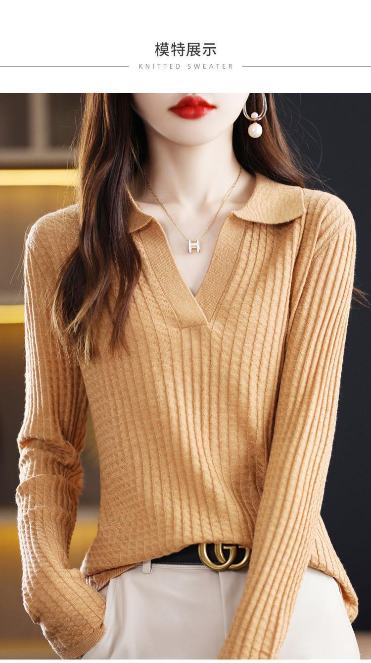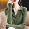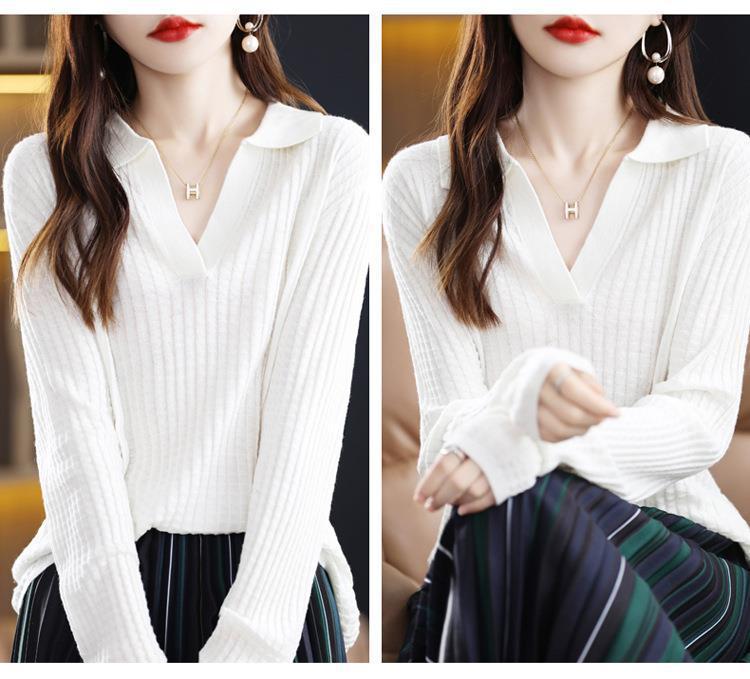 Suéter Camiseta Interior Jersey de Punto de Manga Larga con Solapa Suelta Ropa de Mujer Nueva Moda Polo para Mujer 2025