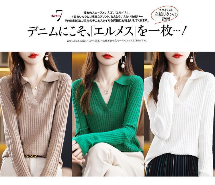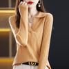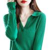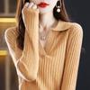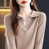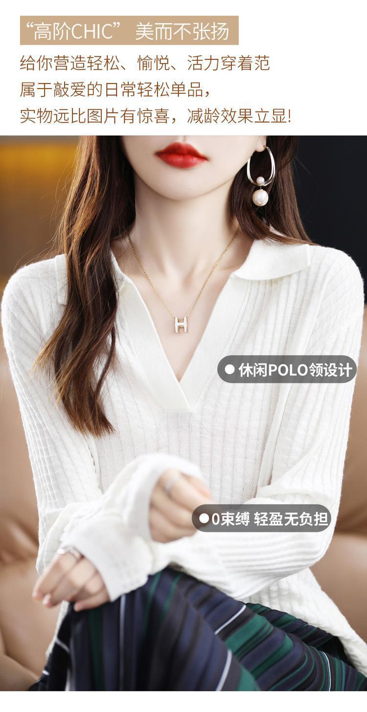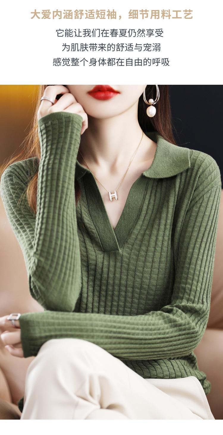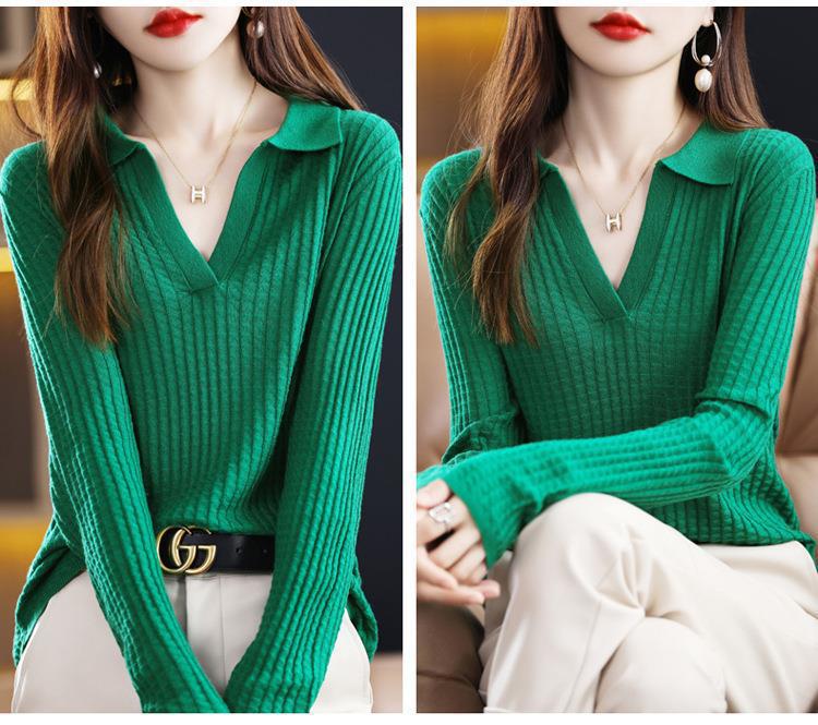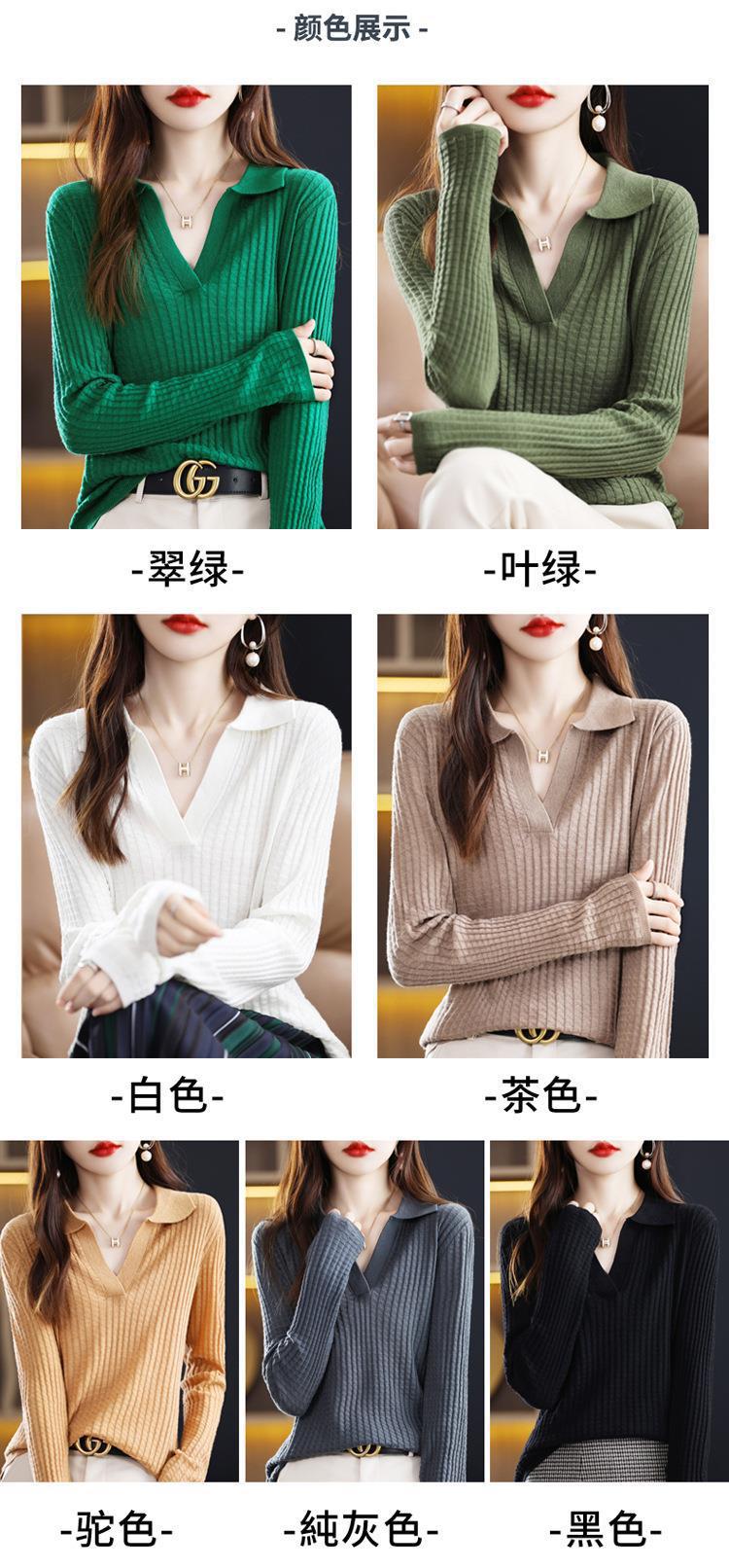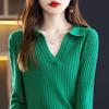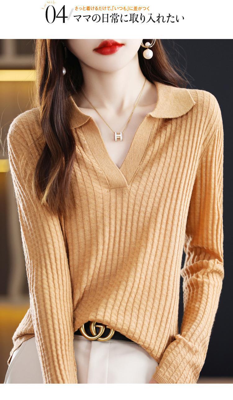 Suéter Camiseta Interior Jersey de Punto de Manga Larga con Solapa Suelta Ropa de Mujer Nueva Moda Polo para Mujer 2025
