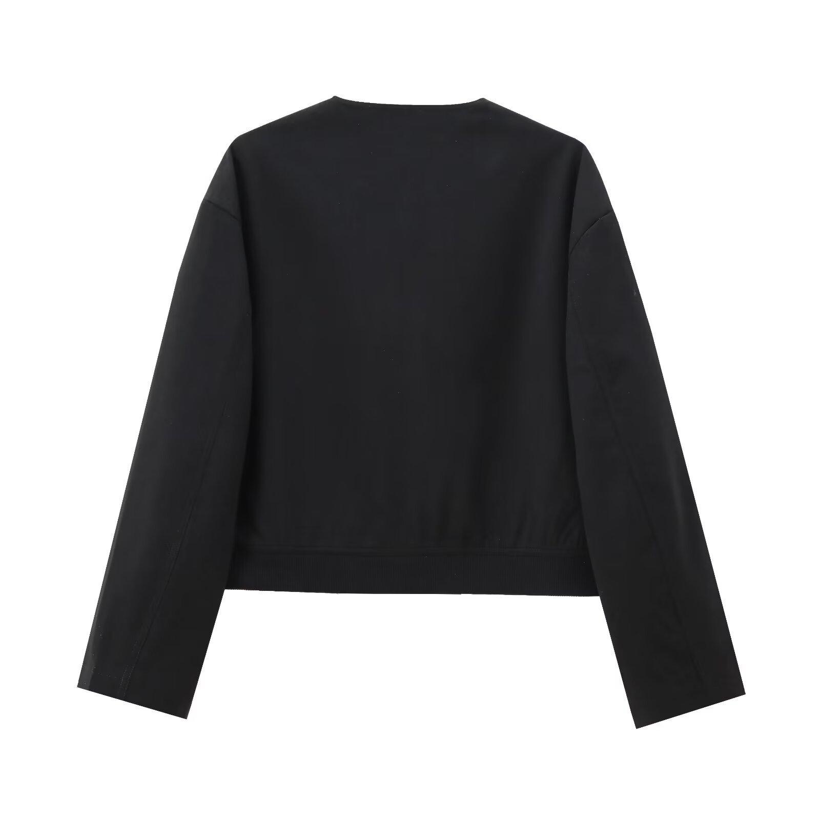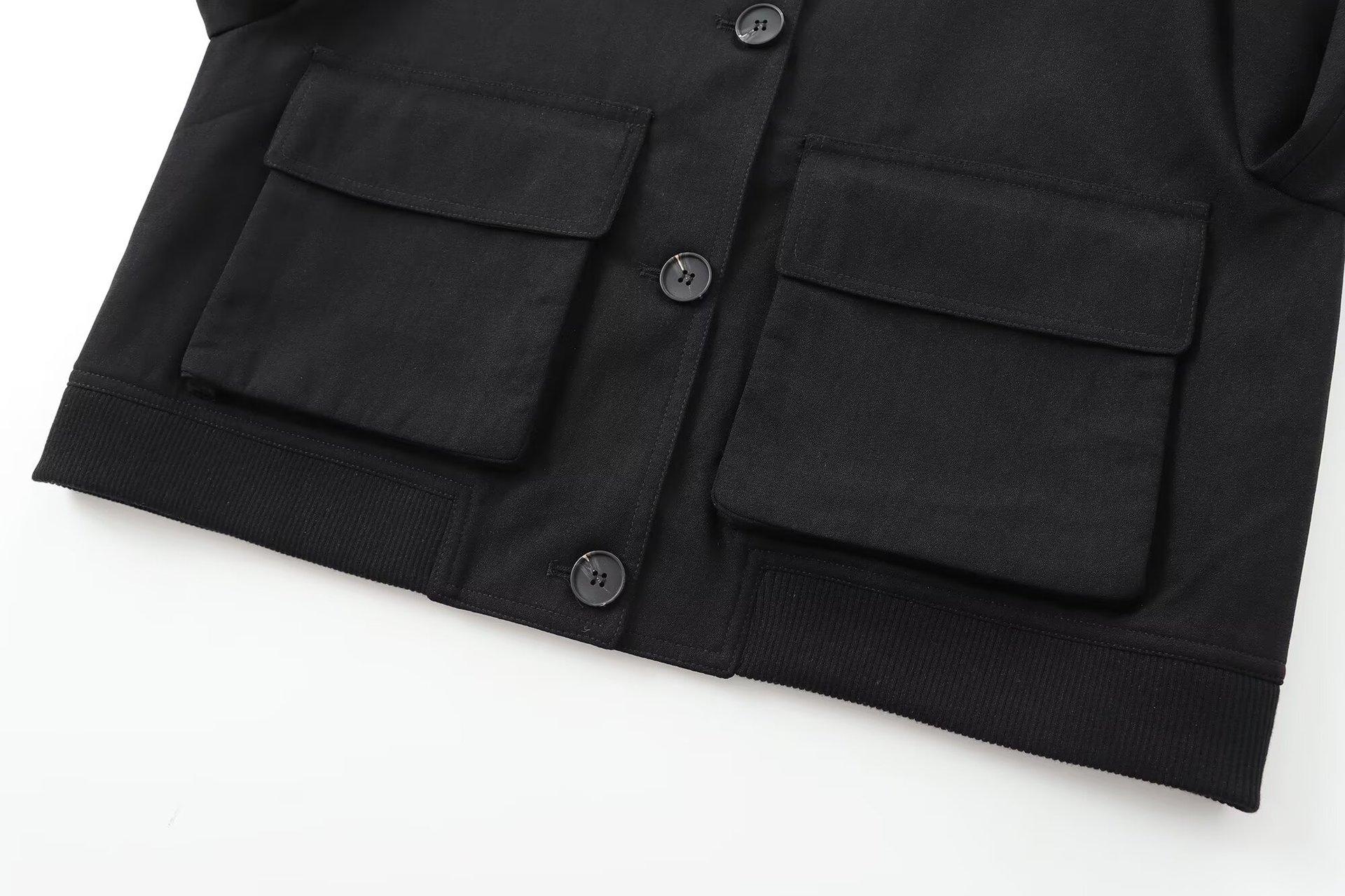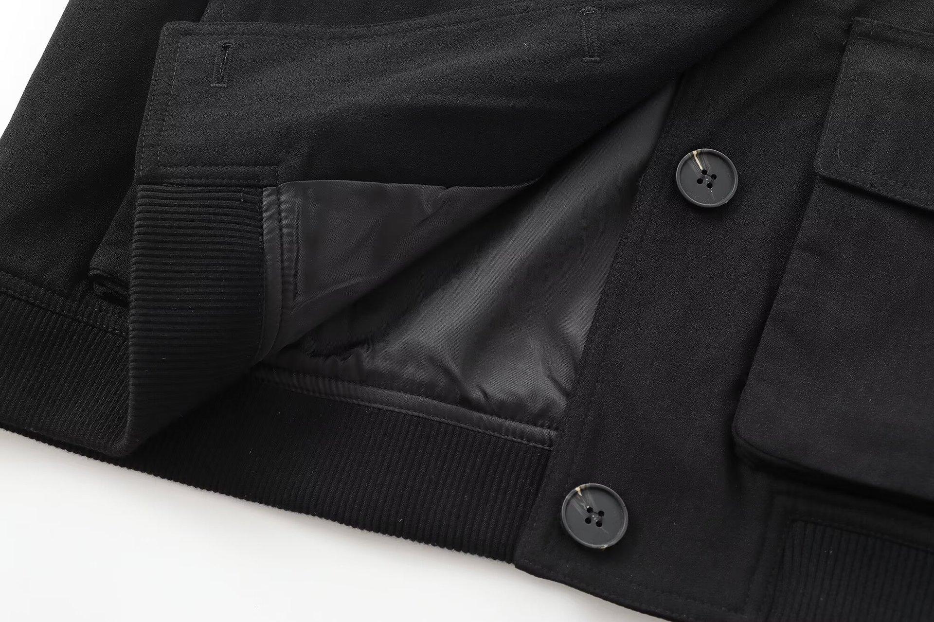 Ropa de Mujer de Comercio Exterior Transfronterizo 2025 Otoño Estilo Europeo y Americano Decoración de Bolsillos Chaqueta Bomber Corta Abrigo Mujer K41594