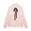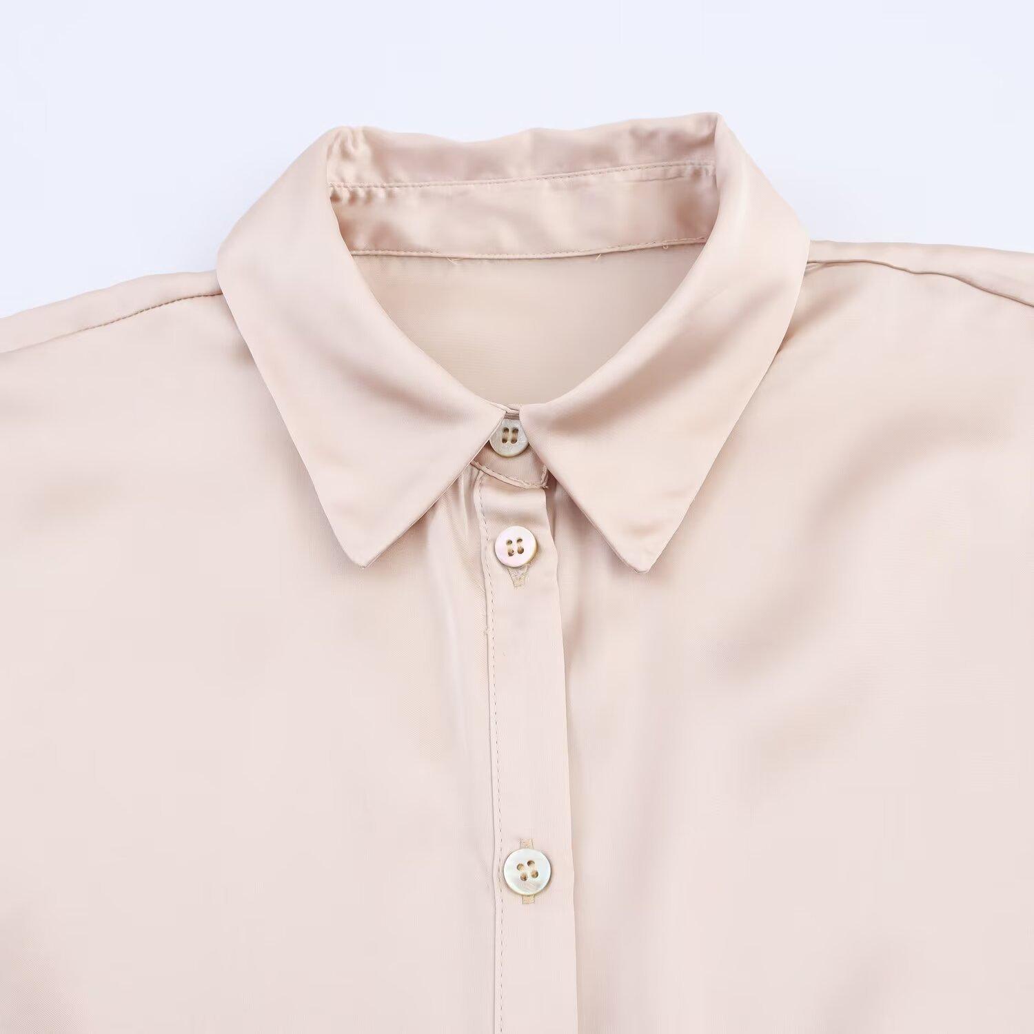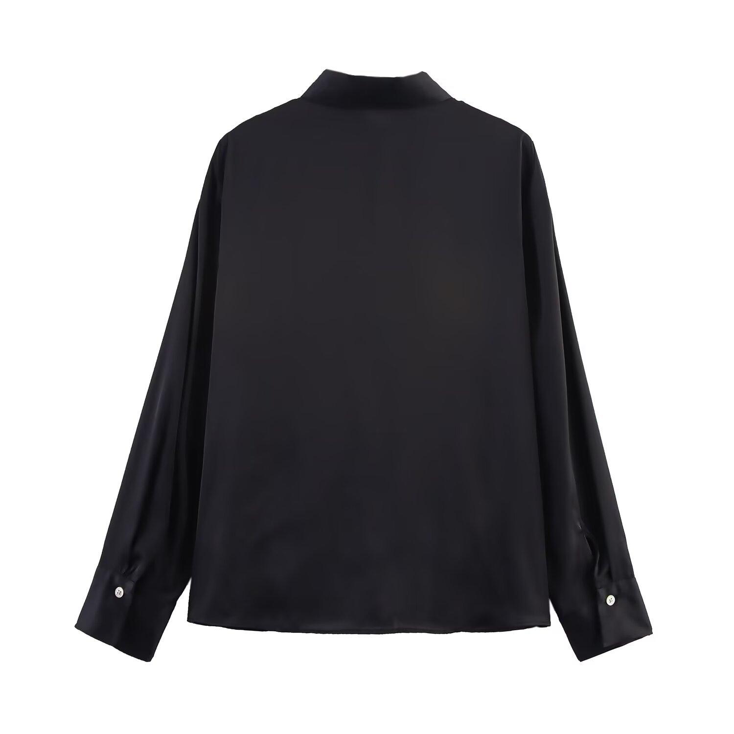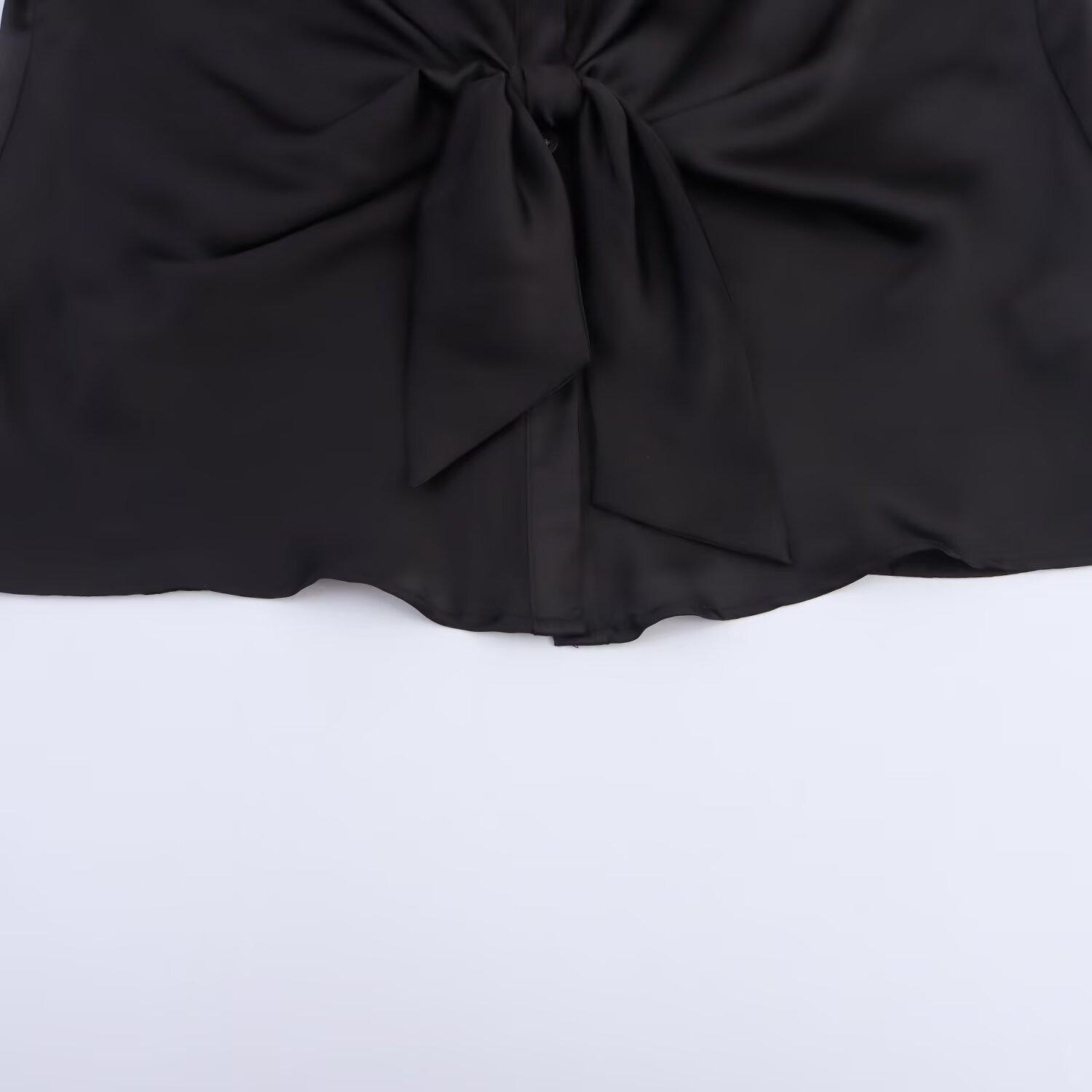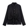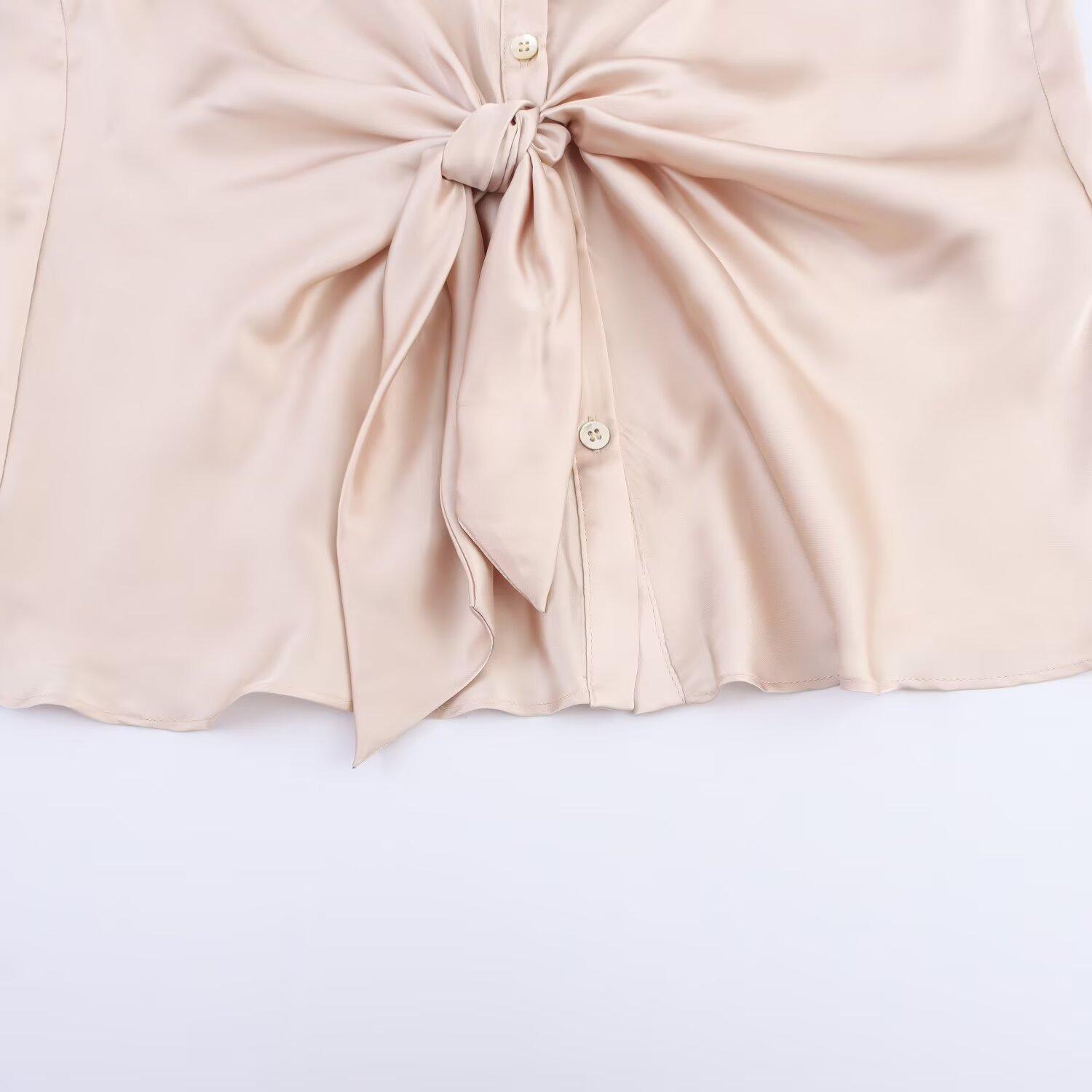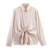 Transfronterizo Nuevo 2025 Estilo Europeo y Americano Ropa de Mujer Comercio Exterior Venta al por Mayor ZR En Stock Detalle de Nudo Camisa Textura Satén de Seda
