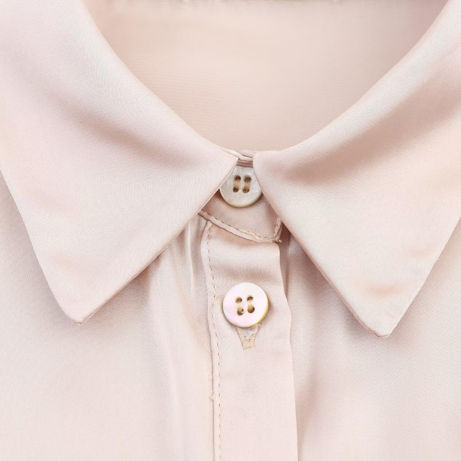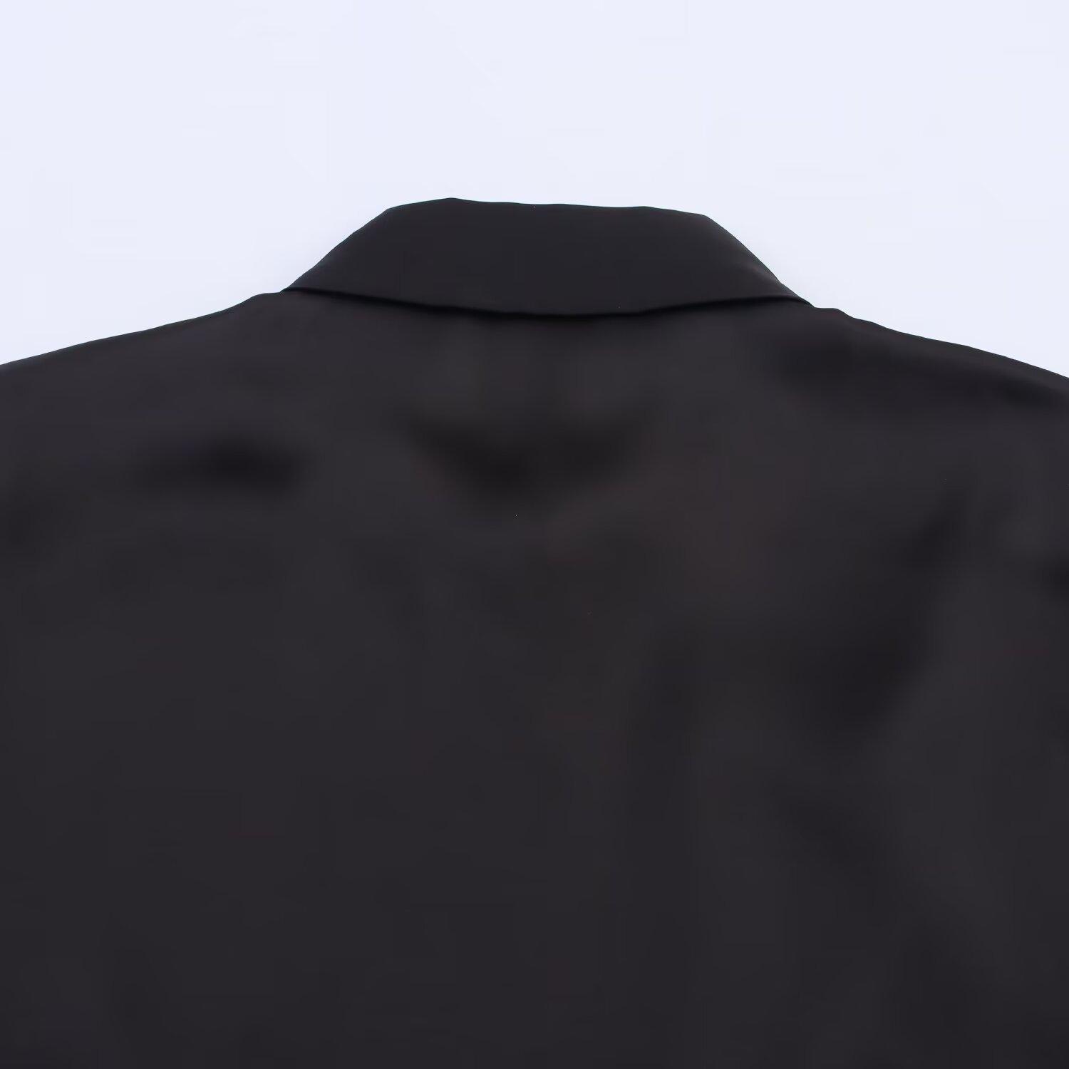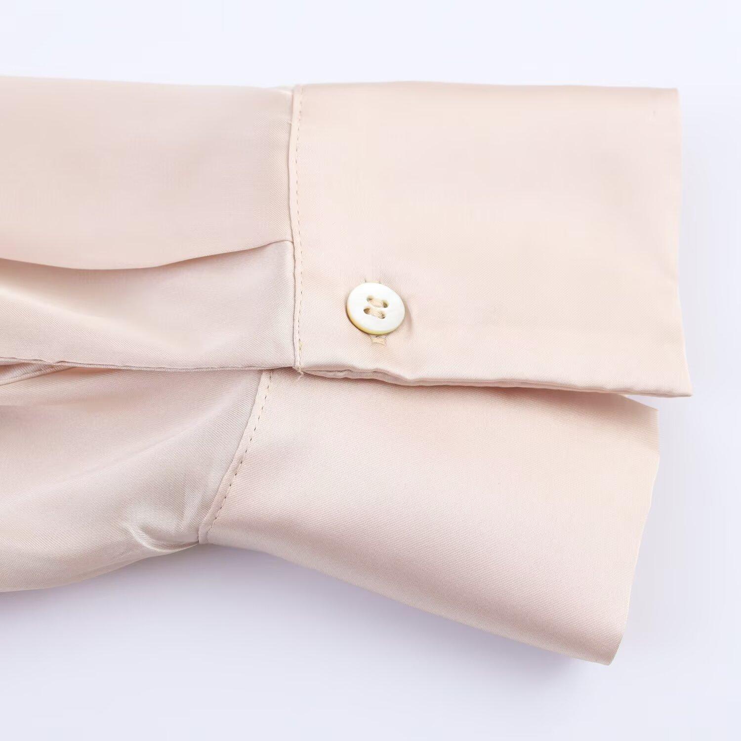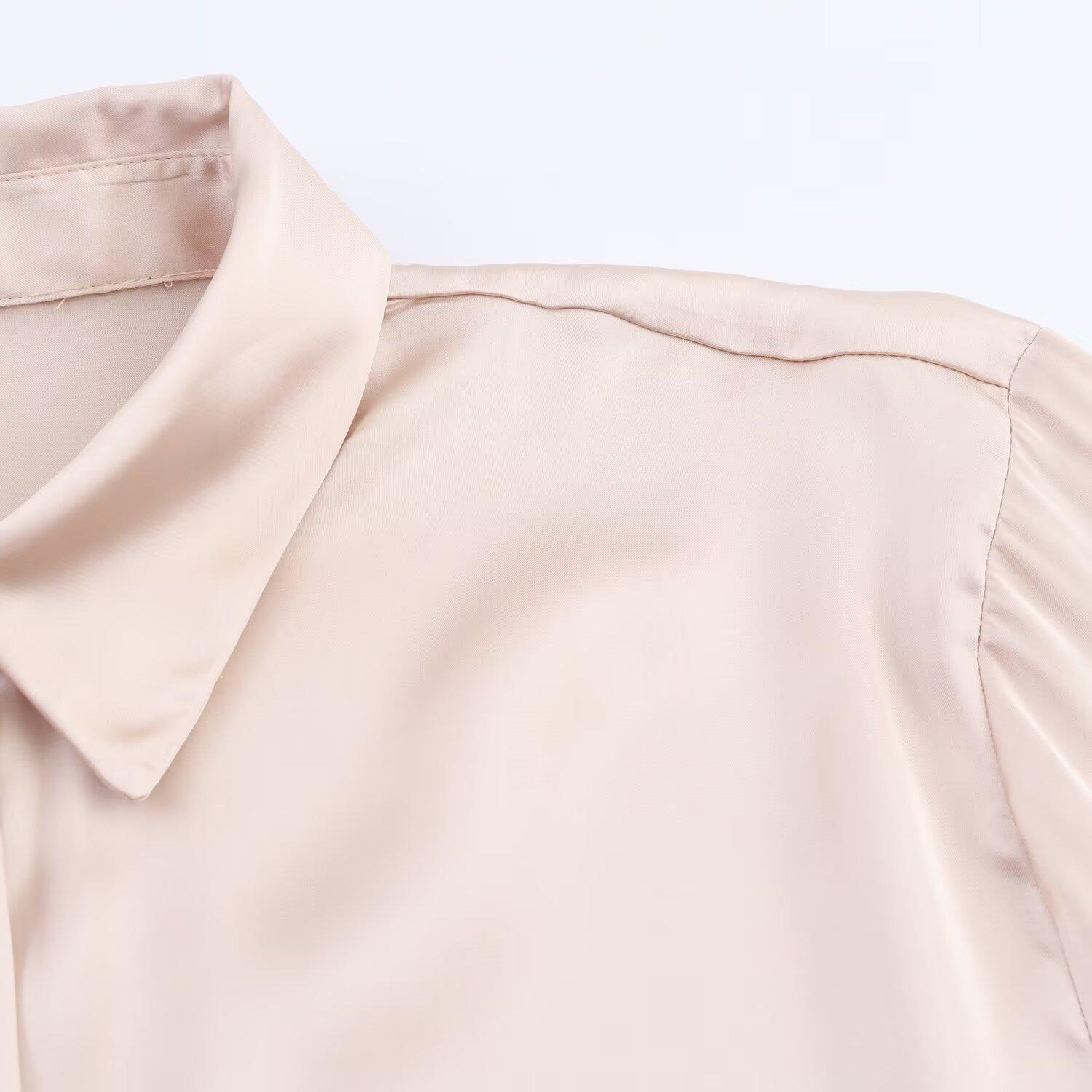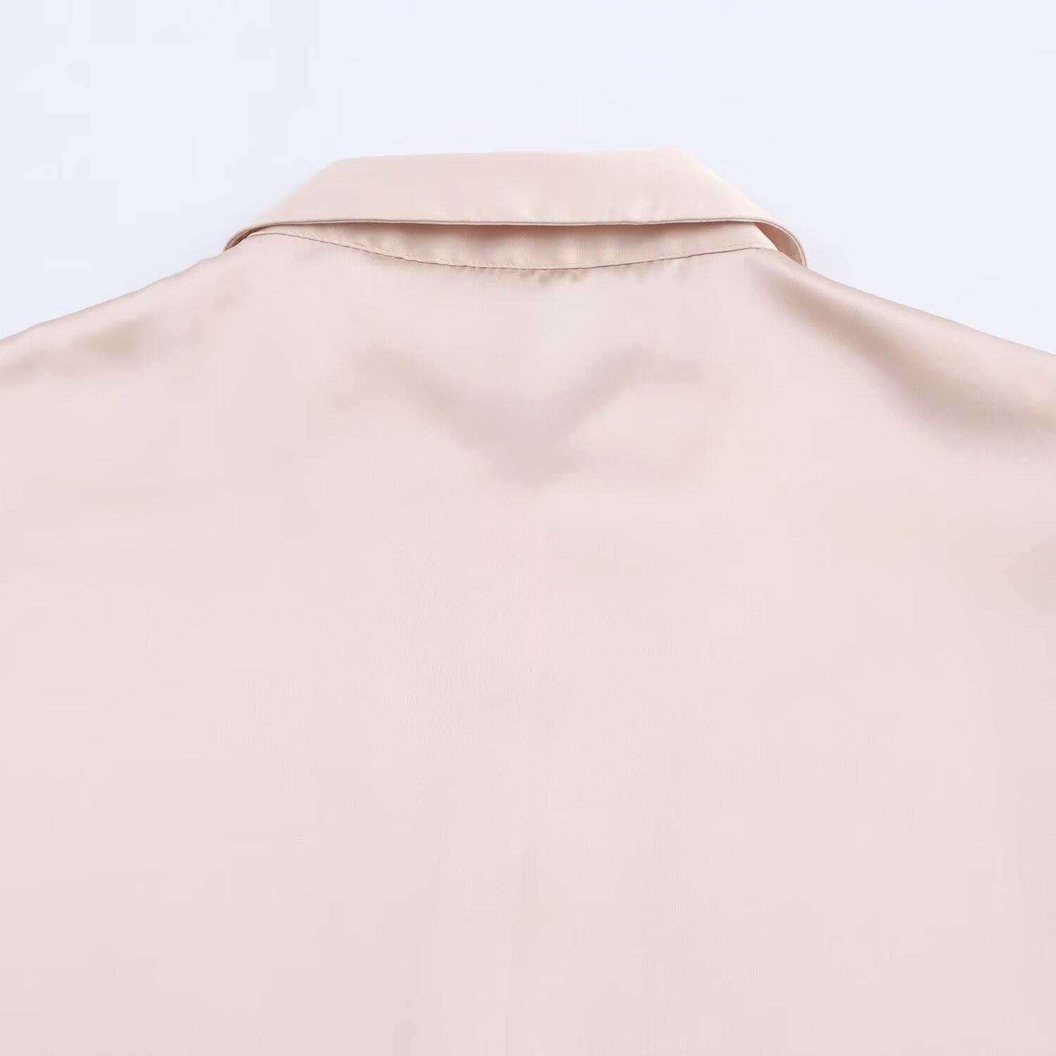 Transfronterizo Nuevo 2025 Estilo Europeo y Americano Ropa de Mujer Comercio Exterior Venta al por Mayor ZR En Stock Detalle de Nudo Camisa Textura Satén de Seda