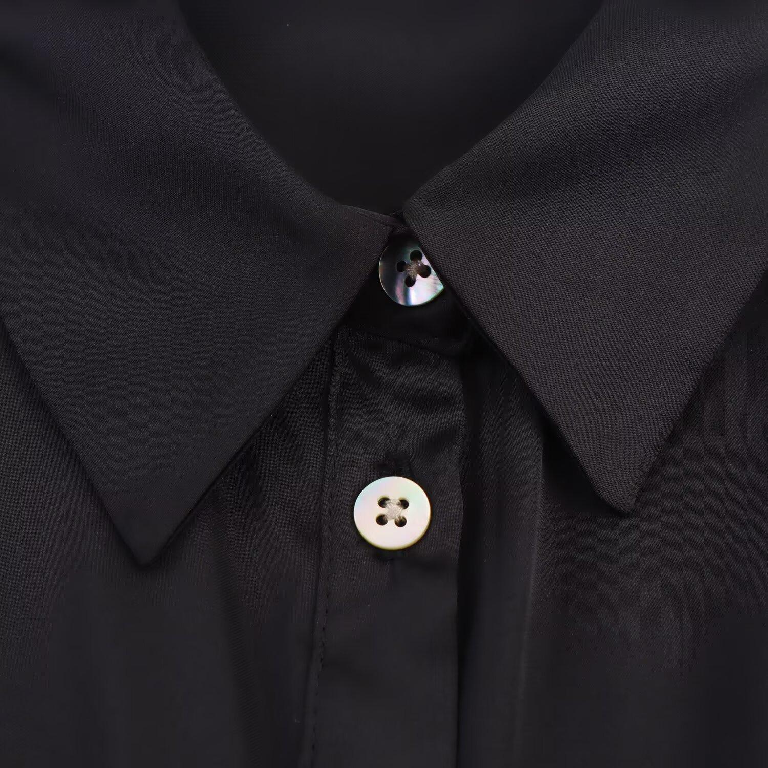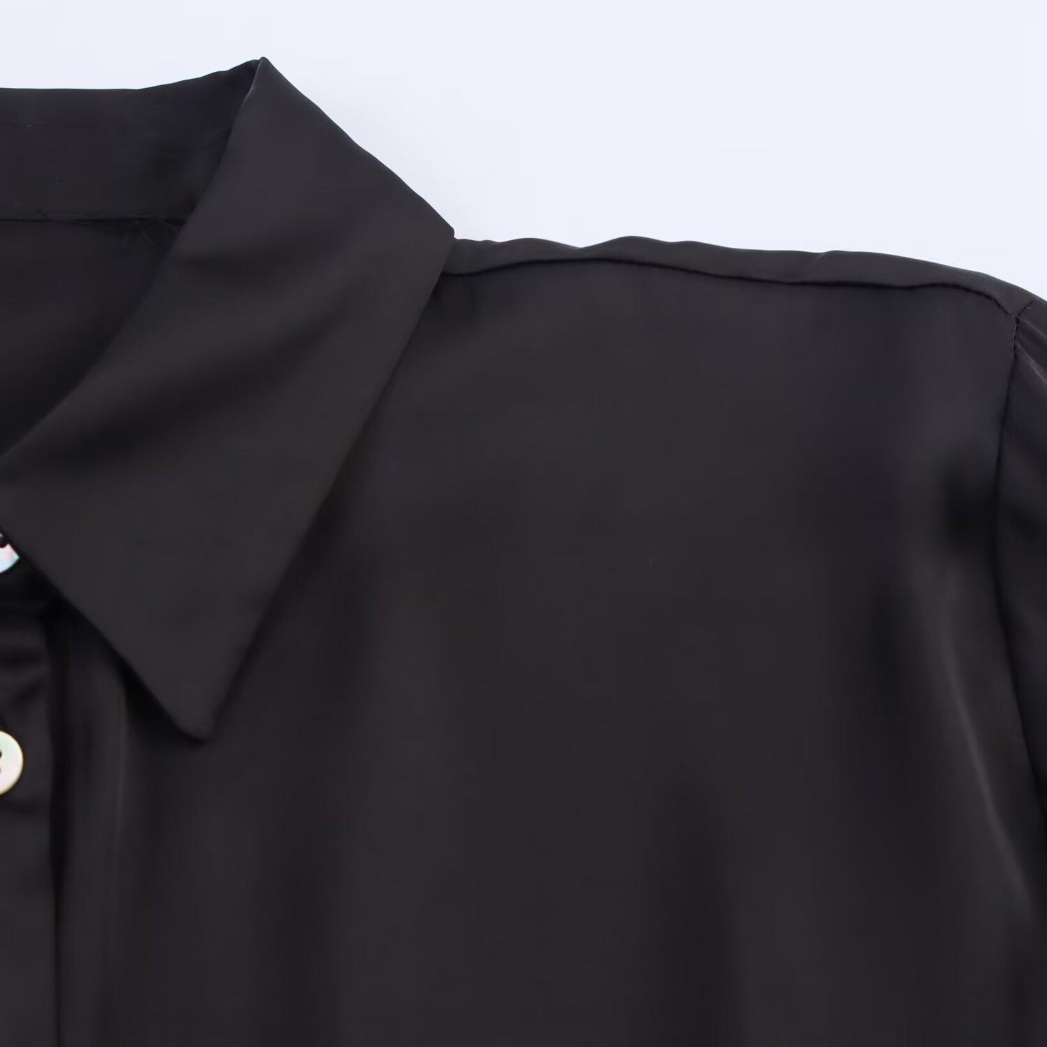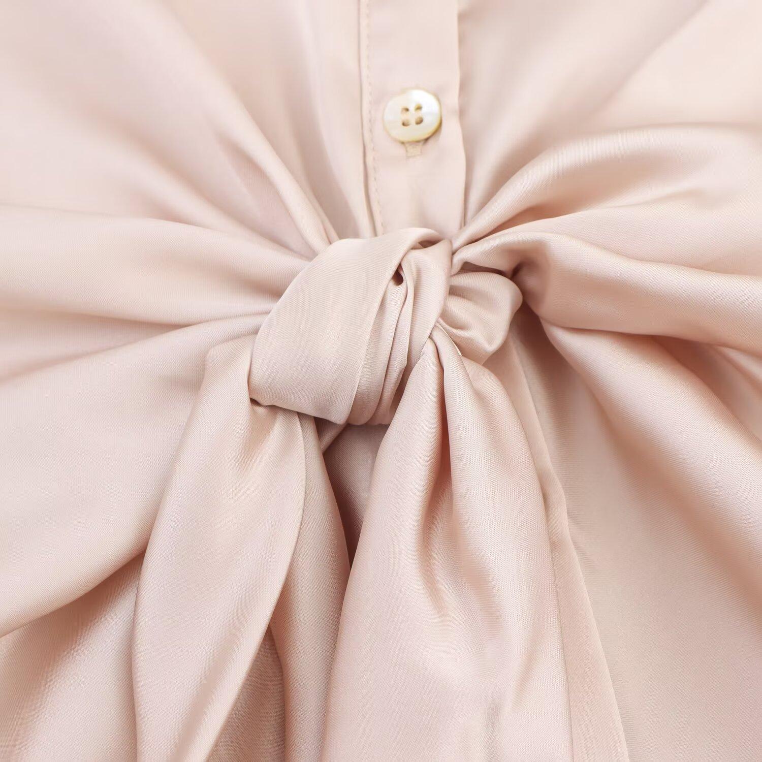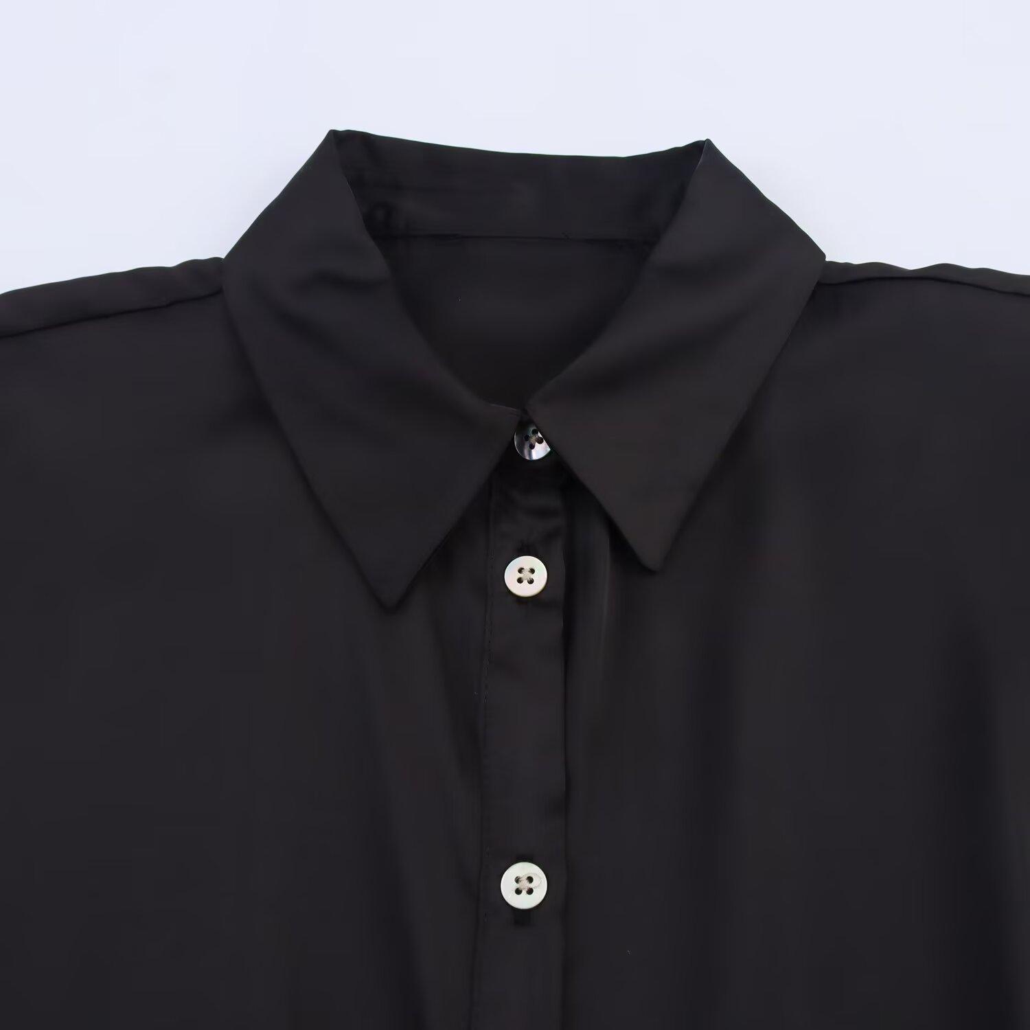 Transfronterizo Nuevo 2025 Estilo Europeo y Americano Ropa de Mujer Comercio Exterior Venta al por Mayor ZR En Stock Detalle de Nudo Camisa Textura Satén de Seda