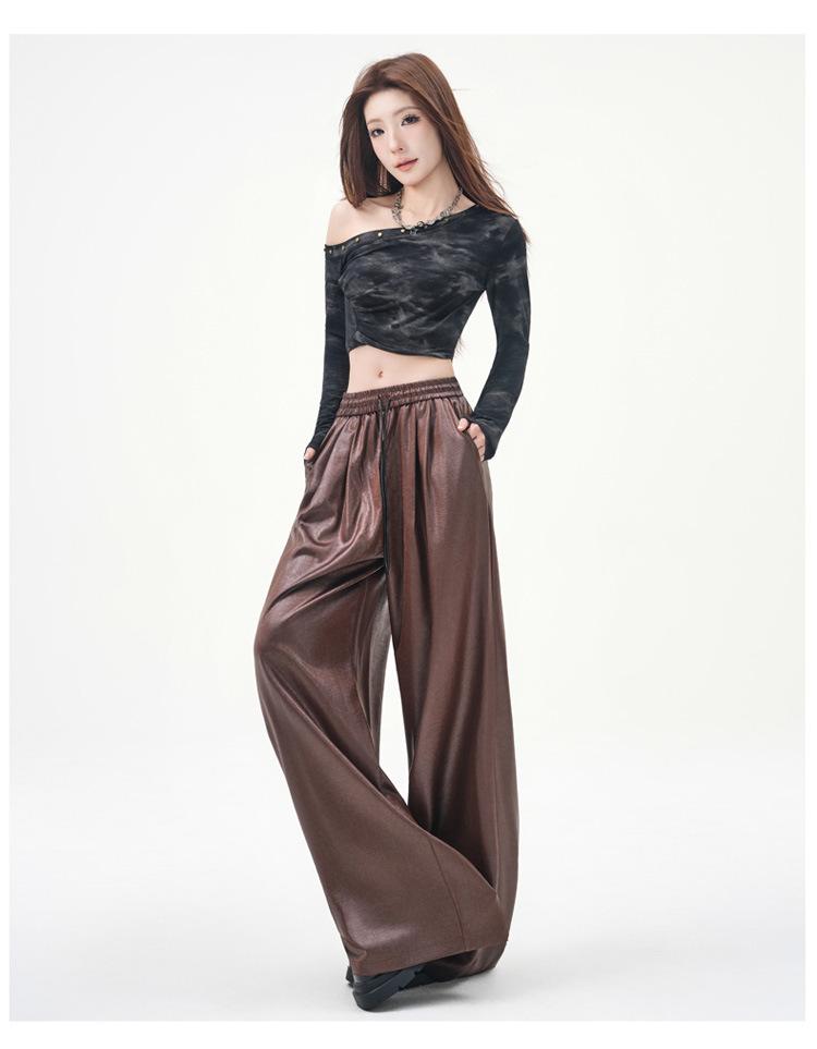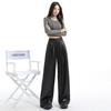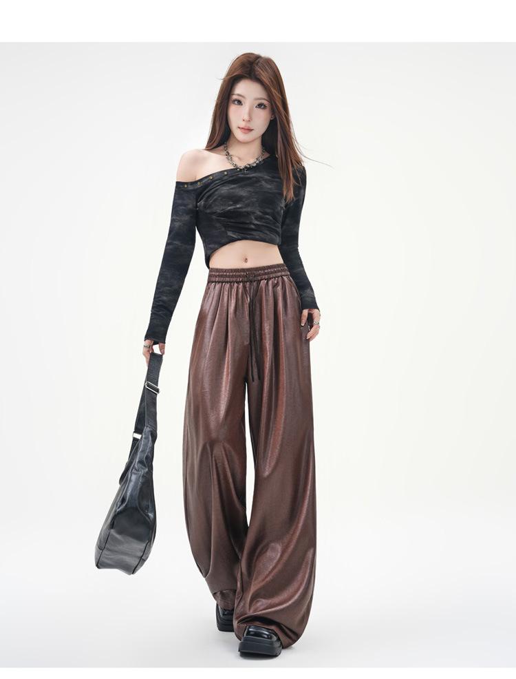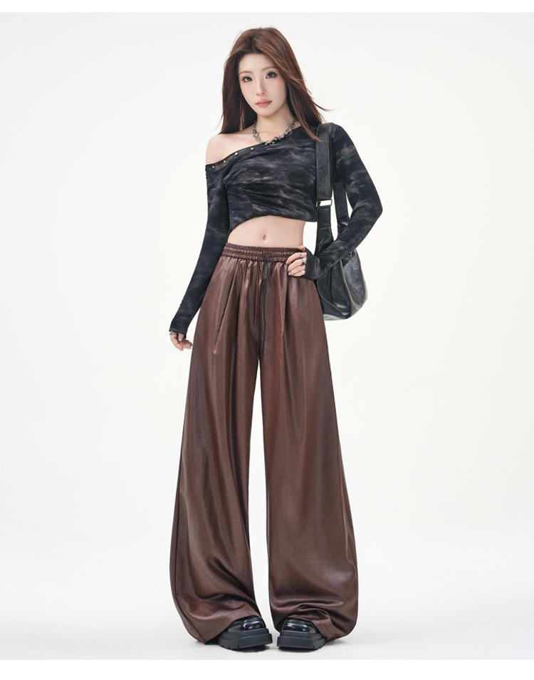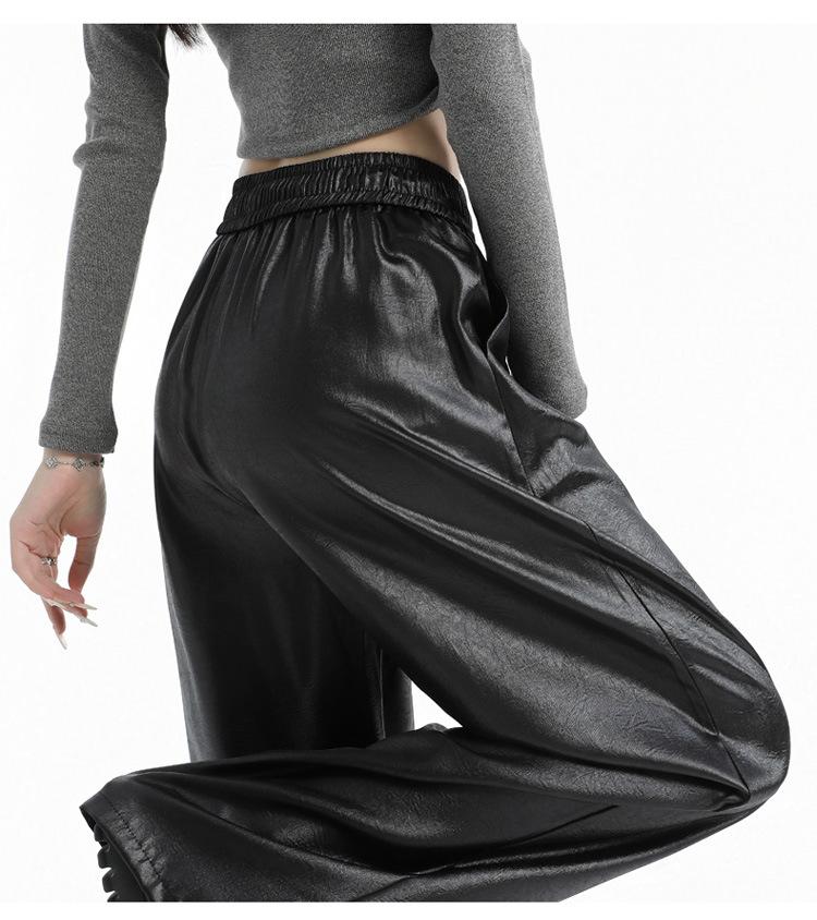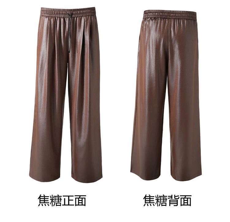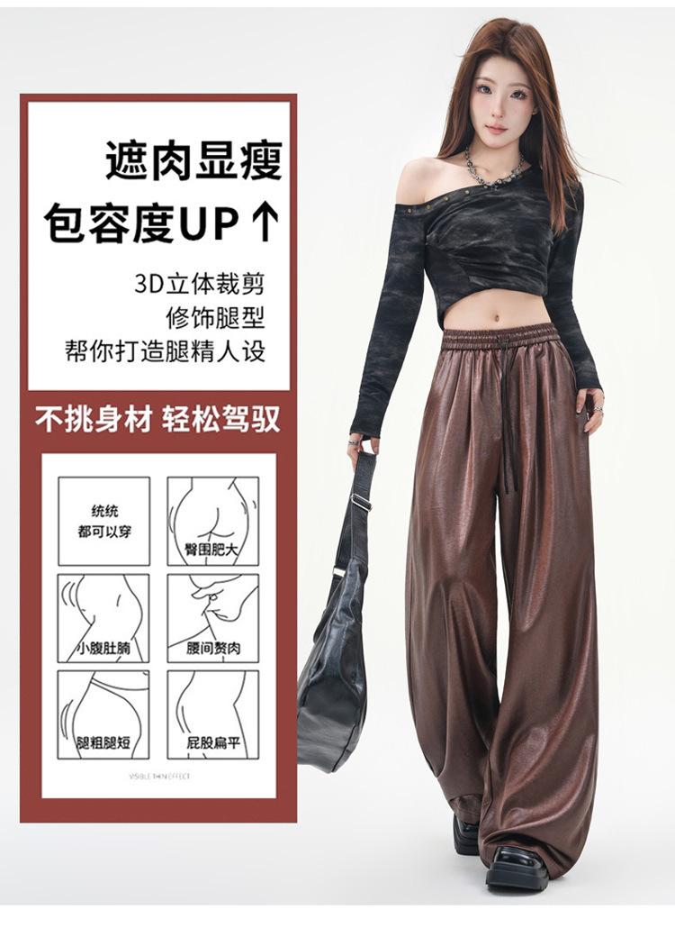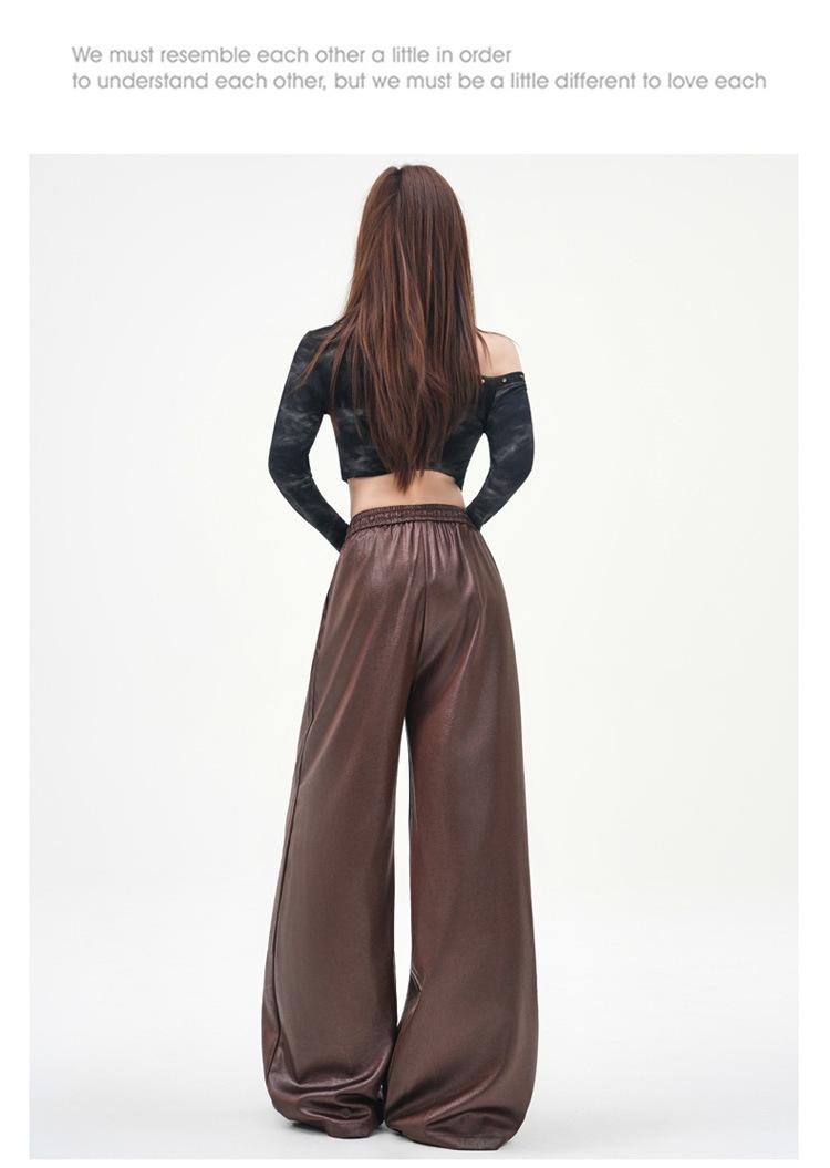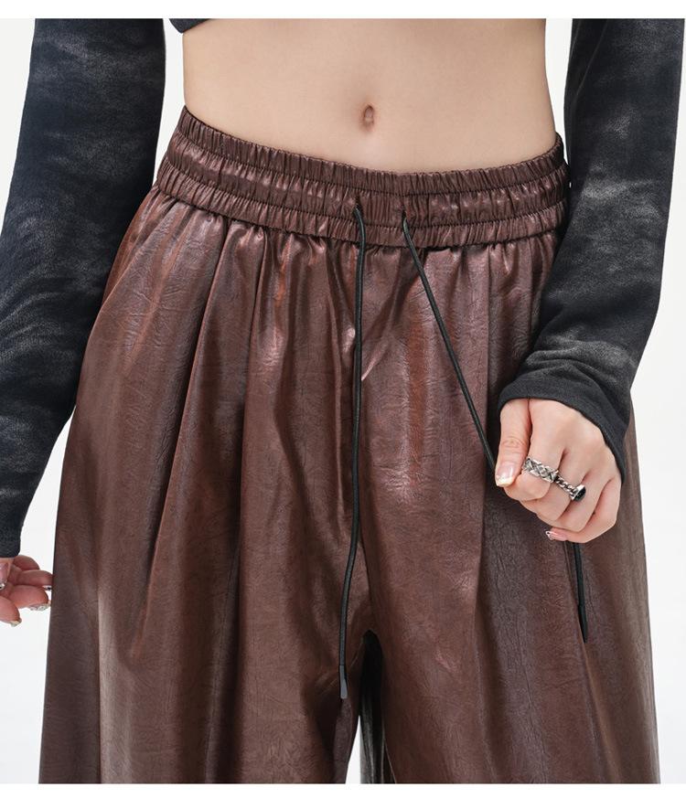 Otoño/Invierno 2025 Nuevo Pantalón de Pierna Recta Ancha con Cintura Elástica Pantalón Casual para Mujer Tejido de Imitación de Cuero Rojo Ancola