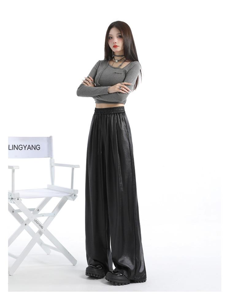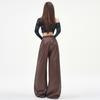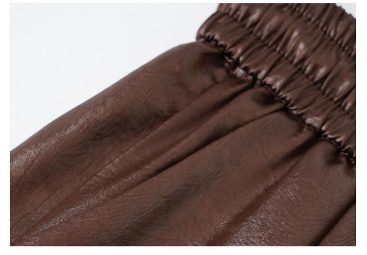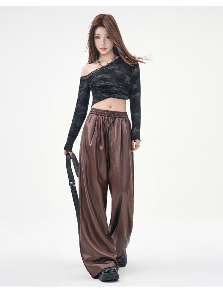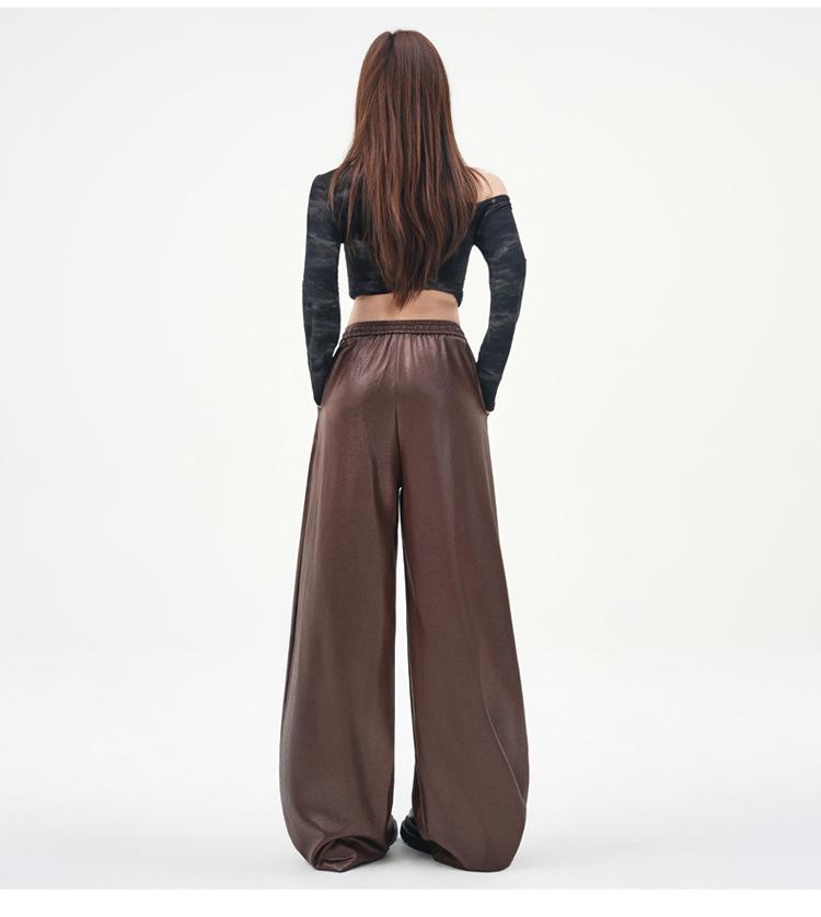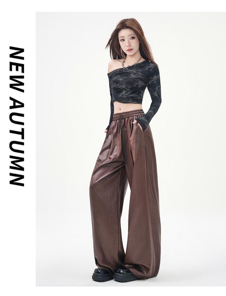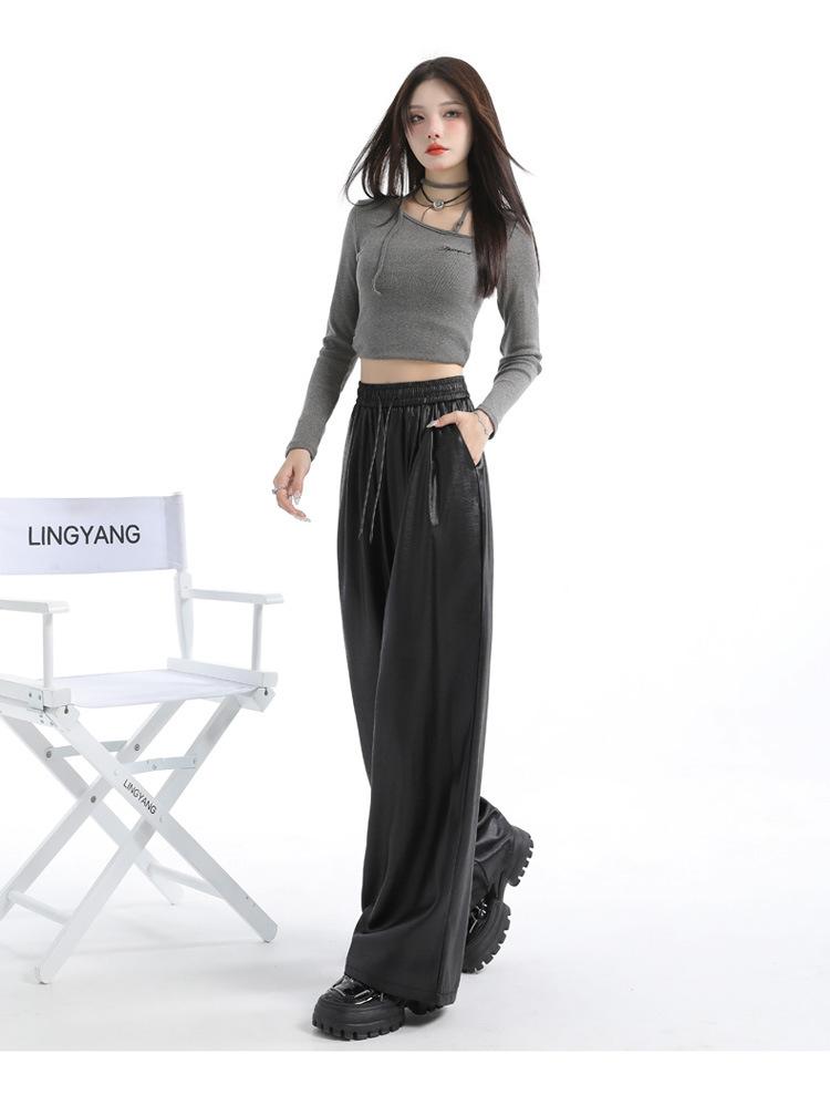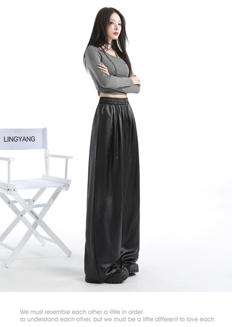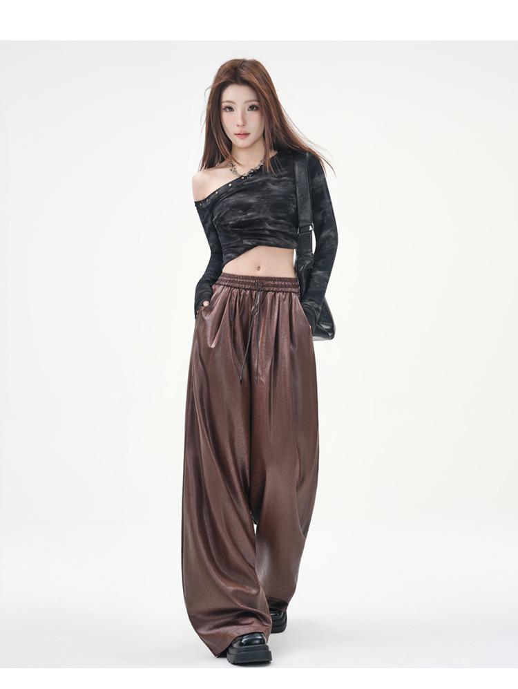 Otoño/Invierno 2025 Nuevo Pantalón de Pierna Recta Ancha con Cintura Elástica Pantalón Casual para Mujer Tejido de Imitación de Cuero Rojo Ancola