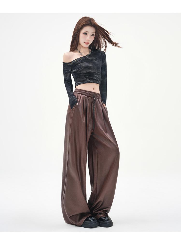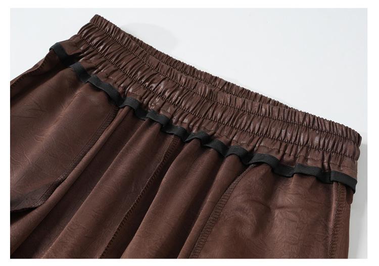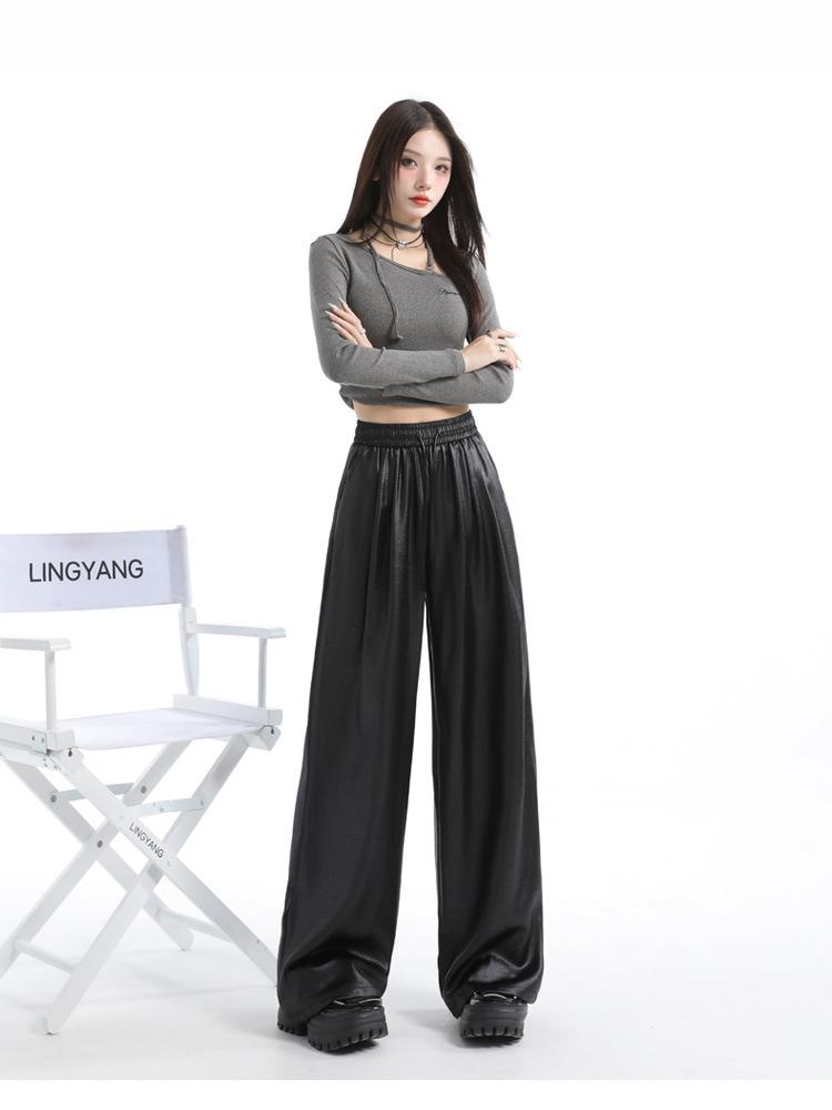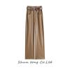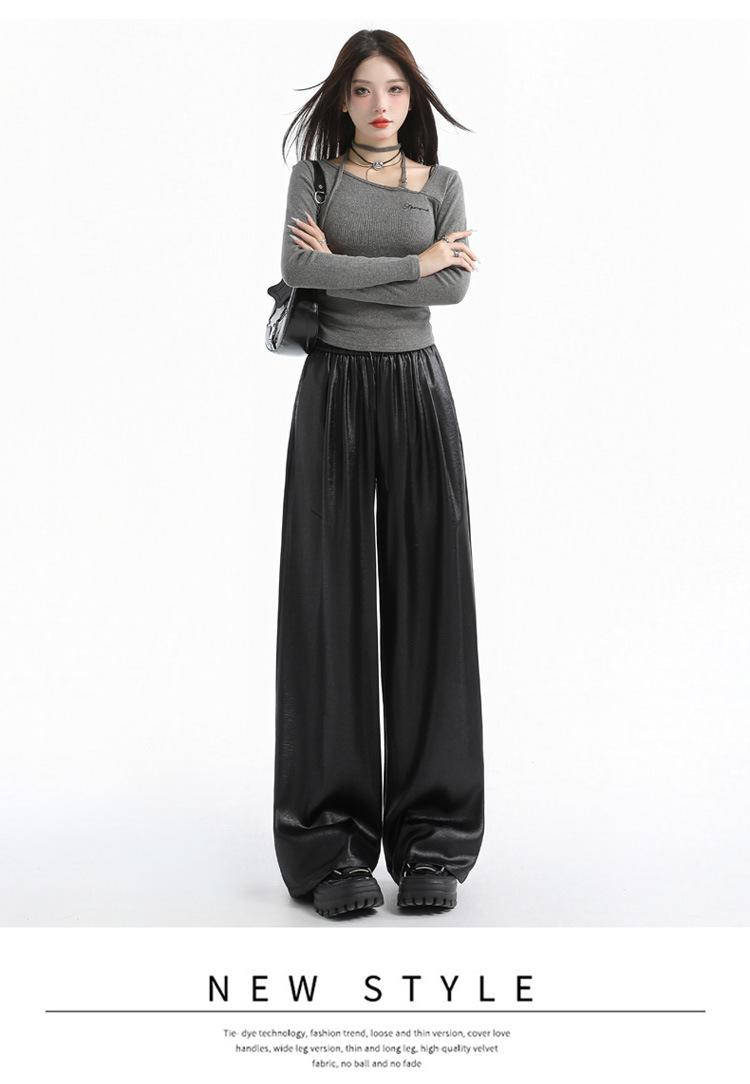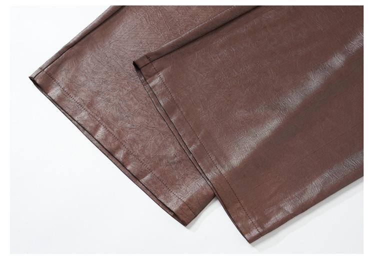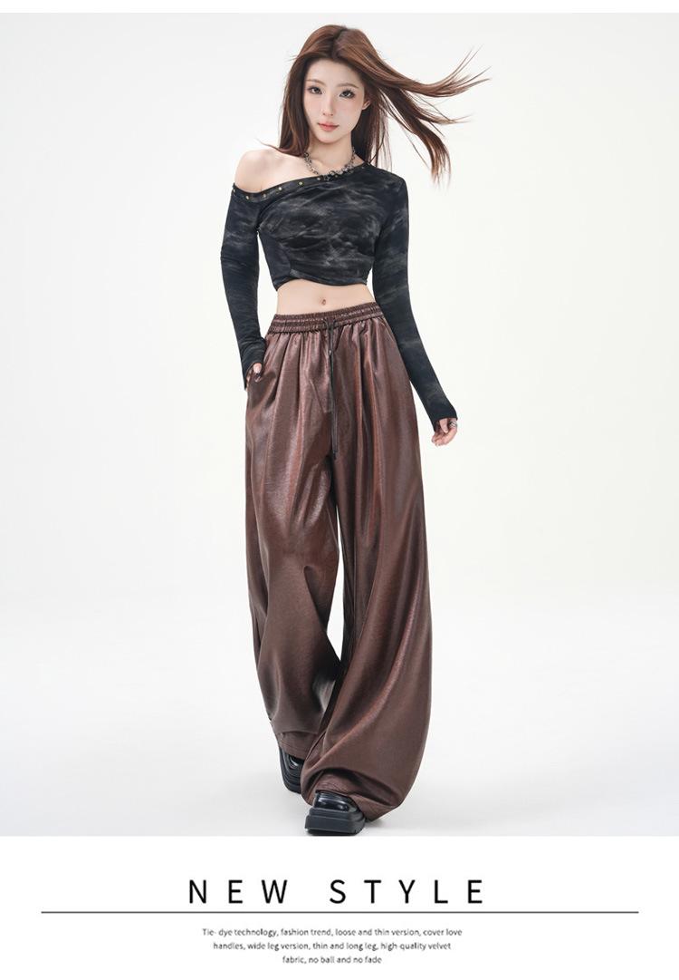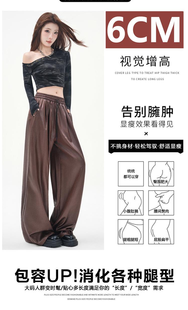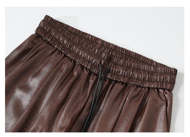 Otoño/Invierno 2025 Nuevo Pantalón de Pierna Recta Ancha con Cintura Elástica Pantalón Casual para Mujer Tejido de Imitación de Cuero Rojo Ancola