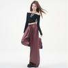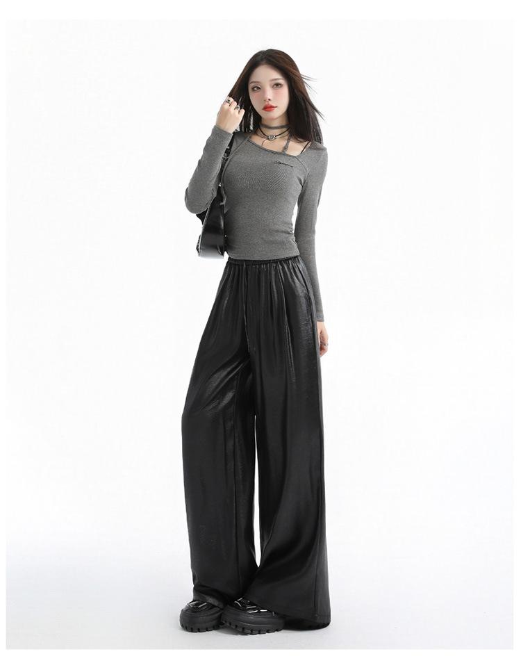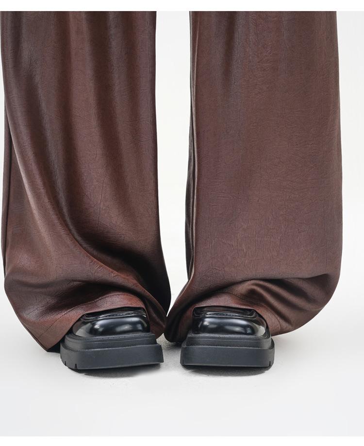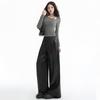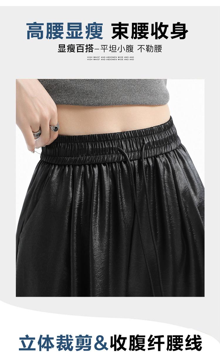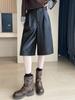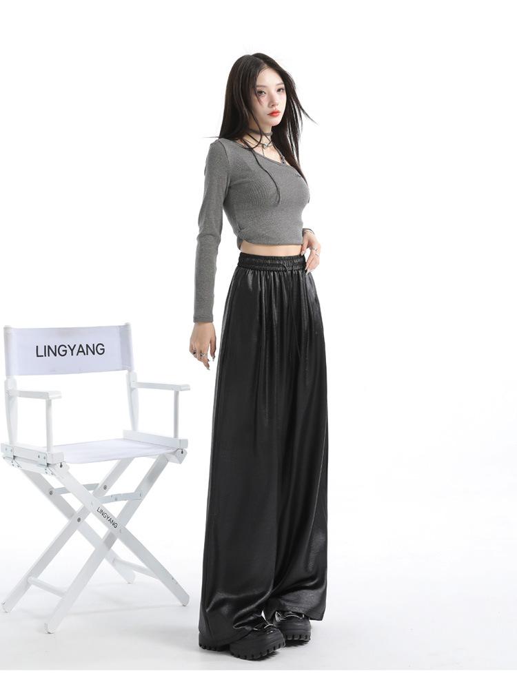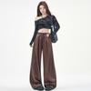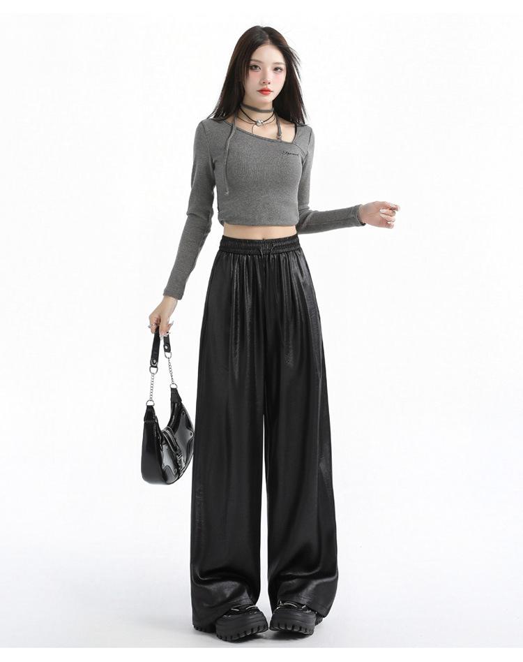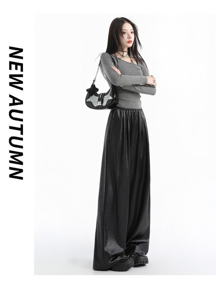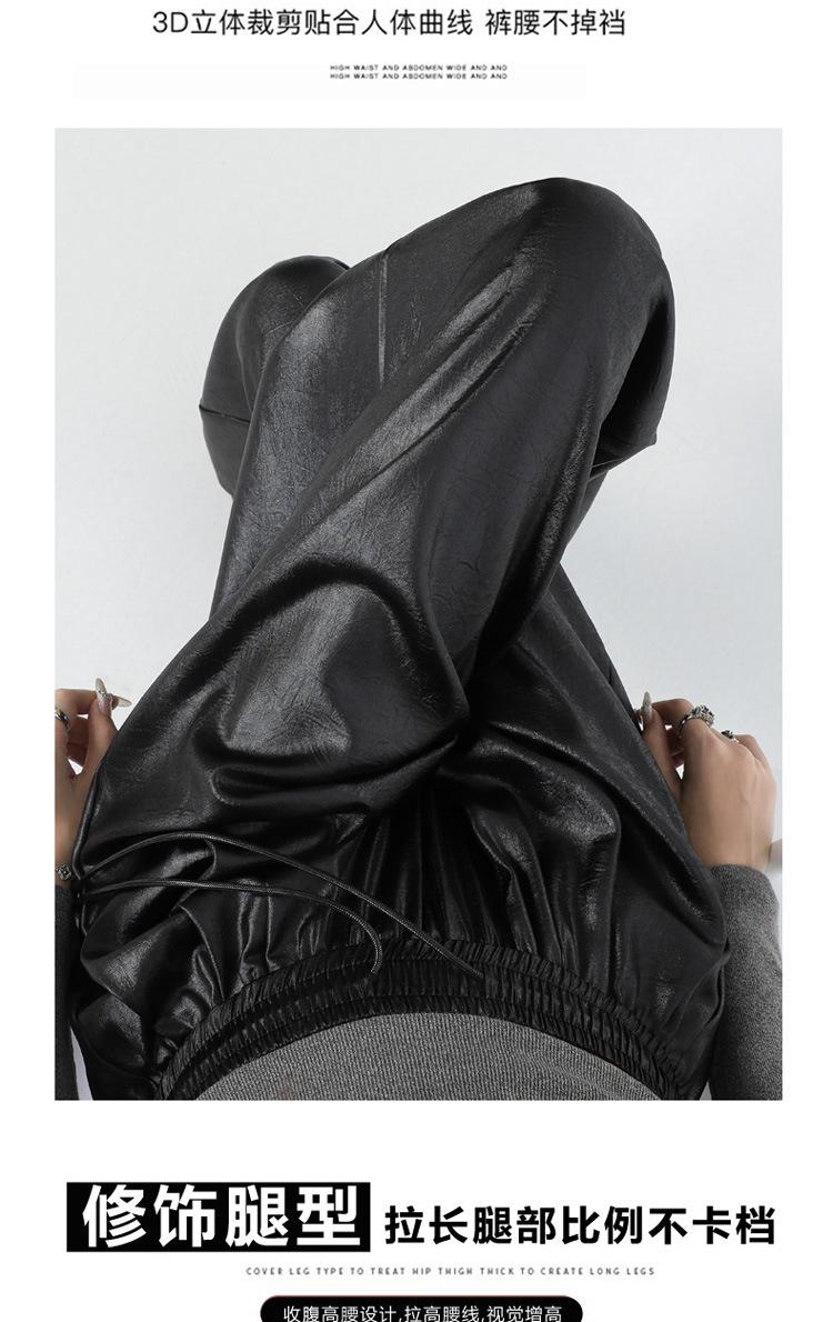 Otoño/Invierno 2025 Nuevo Pantalón de Pierna Recta Ancha con Cintura Elástica Pantalón Casual para Mujer Tejido de Imitación de Cuero Rojo Ancola