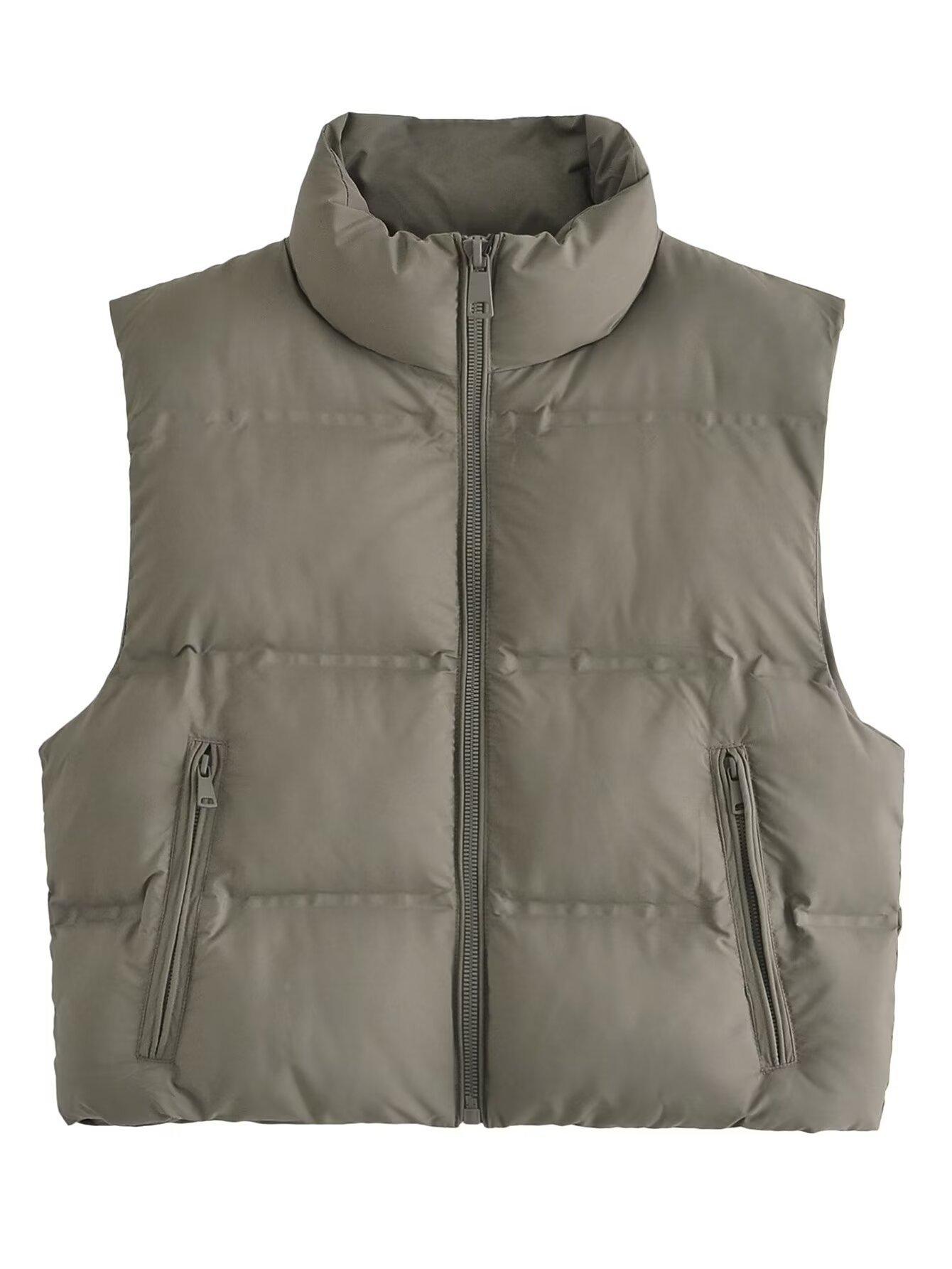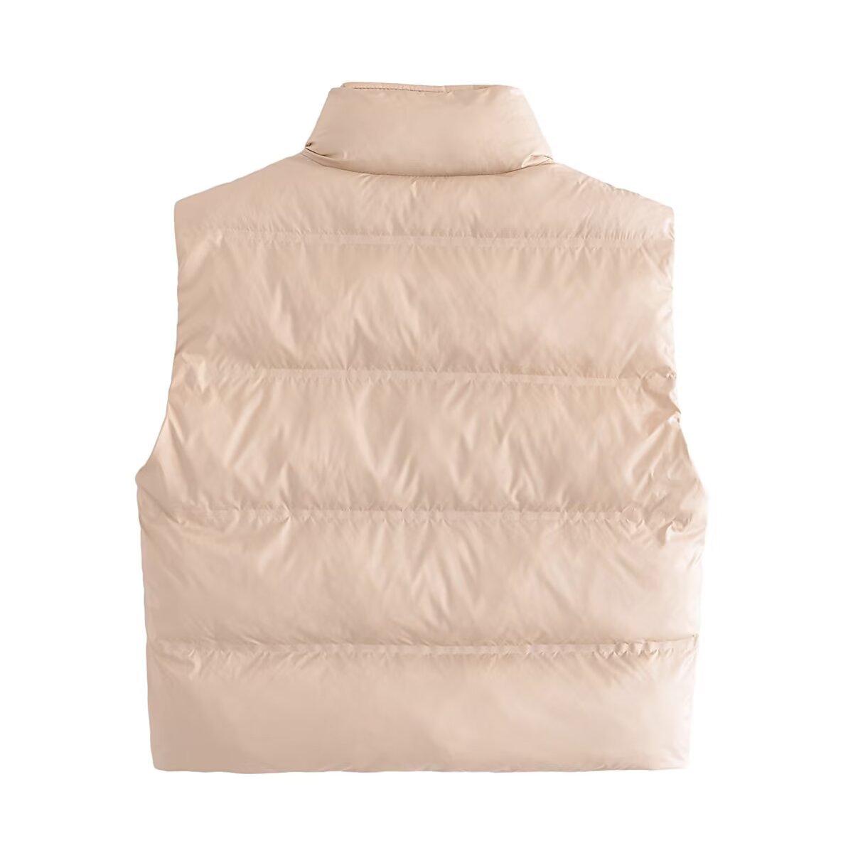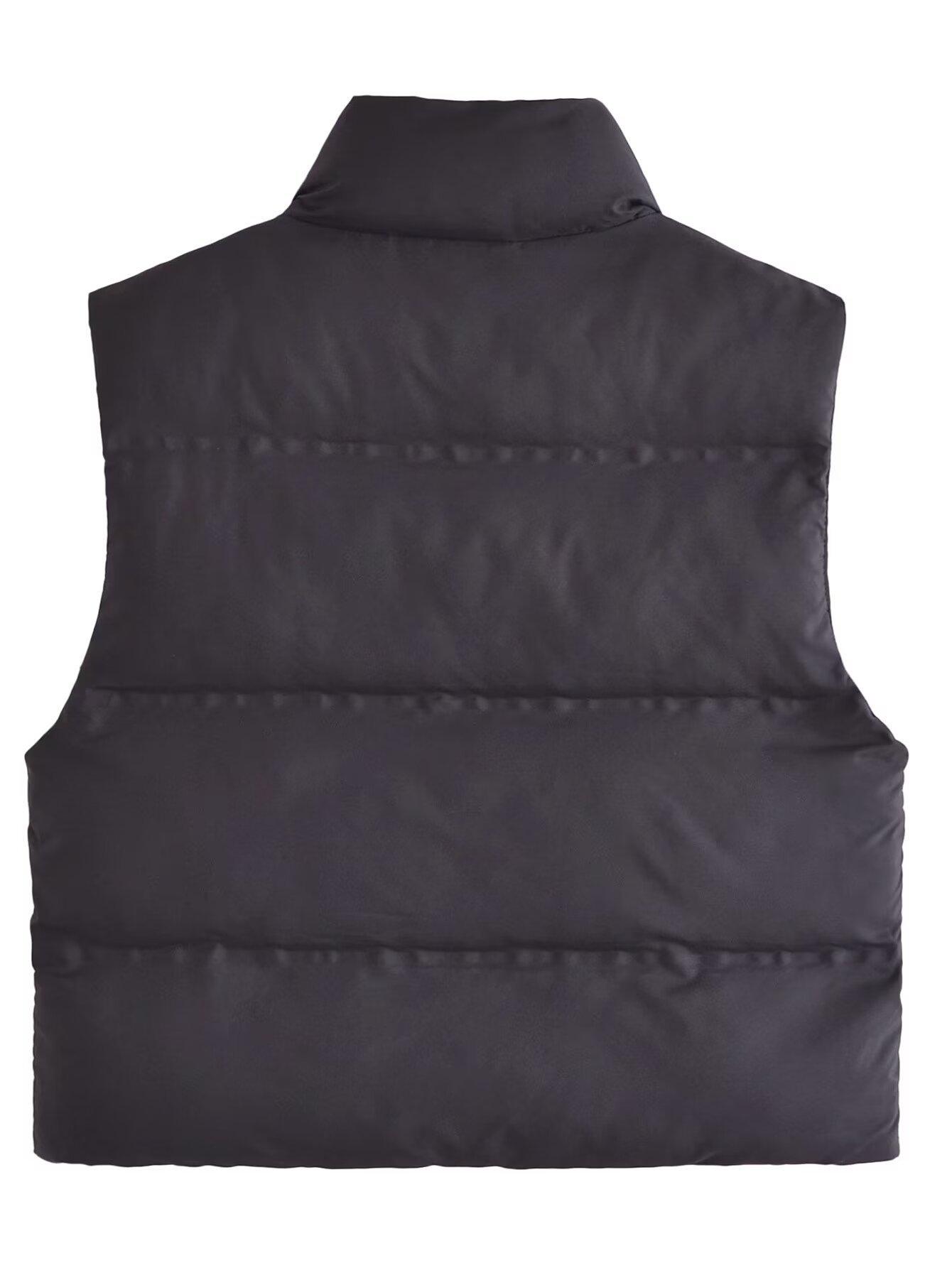Chaleco casual de moda de estilo caliente de otoño e invierno transfronterizo europeo y americano, top sin mangas para mujer de ajuste ceñido, chaleco artesanal tricolor termosellado